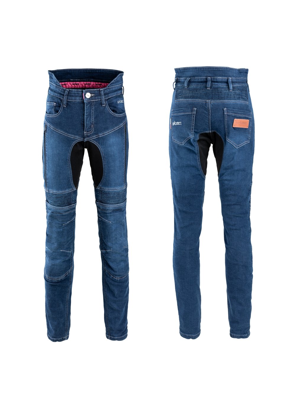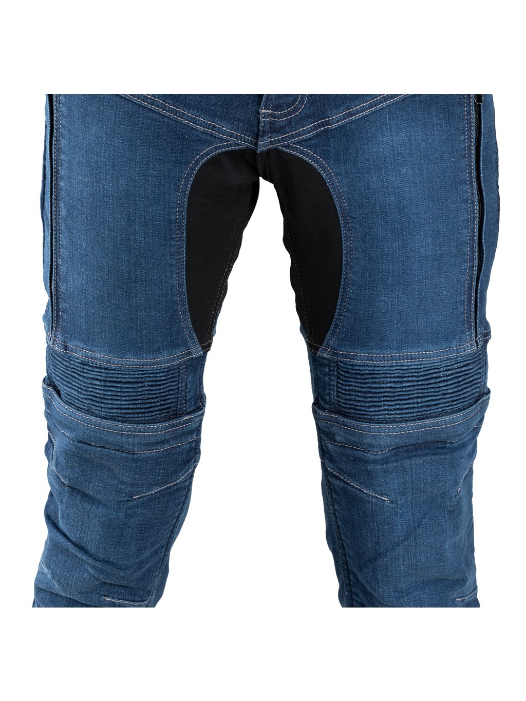 Dámské moto jeansy W-TEC Biterillo Lady jsou komfortní denimové kalhoty na motorku s mnoha funkčními vlastnostmi. Díky anatomickému tvaru a příměsi elastického vlákna se dokonale snoubí s proporcemi dámského těla a budou tak lichotit Vaší postavě. Praktický střih džín je prezentován pomocí vyššího pasu, především pak v oblasti beder. Vysokou míru pohodlí si můžete užít díky mnoha strečovým panelům. Pro vyšší bezpečnost a ochranu jezdce disponují vyztužením z aramidového vlákna na strategických místech. Tento materiál je velmi tuhý a chrání látku proti nárazům a oděrům.