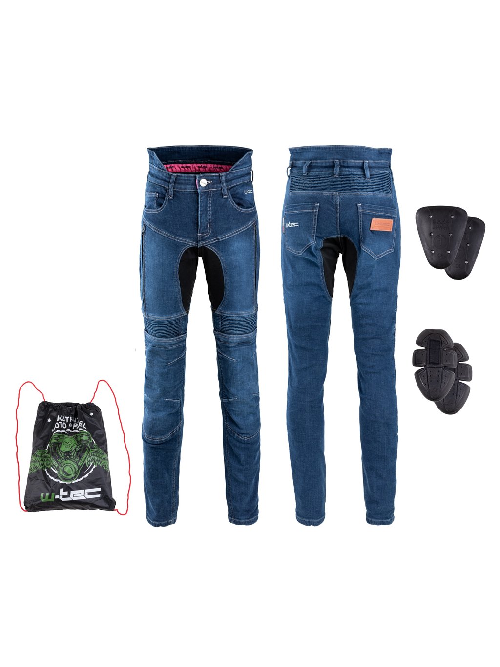 Velké množství kapes je možno využít jako praktický úložný prostor pro drobnosti. Design kalhot pak doplňuje vnitřní dekorativní lem W-TEC. Dámské moto jeansy W-TEC Biterillo Lady jsou ideální kombinací bezpečnosti, pohodlí a stylu. Díky jejich vlastnostem je lze nosit jak na jaře a na podzim, tak díky nastavitelné ventilaci i během horkých letních dnů.