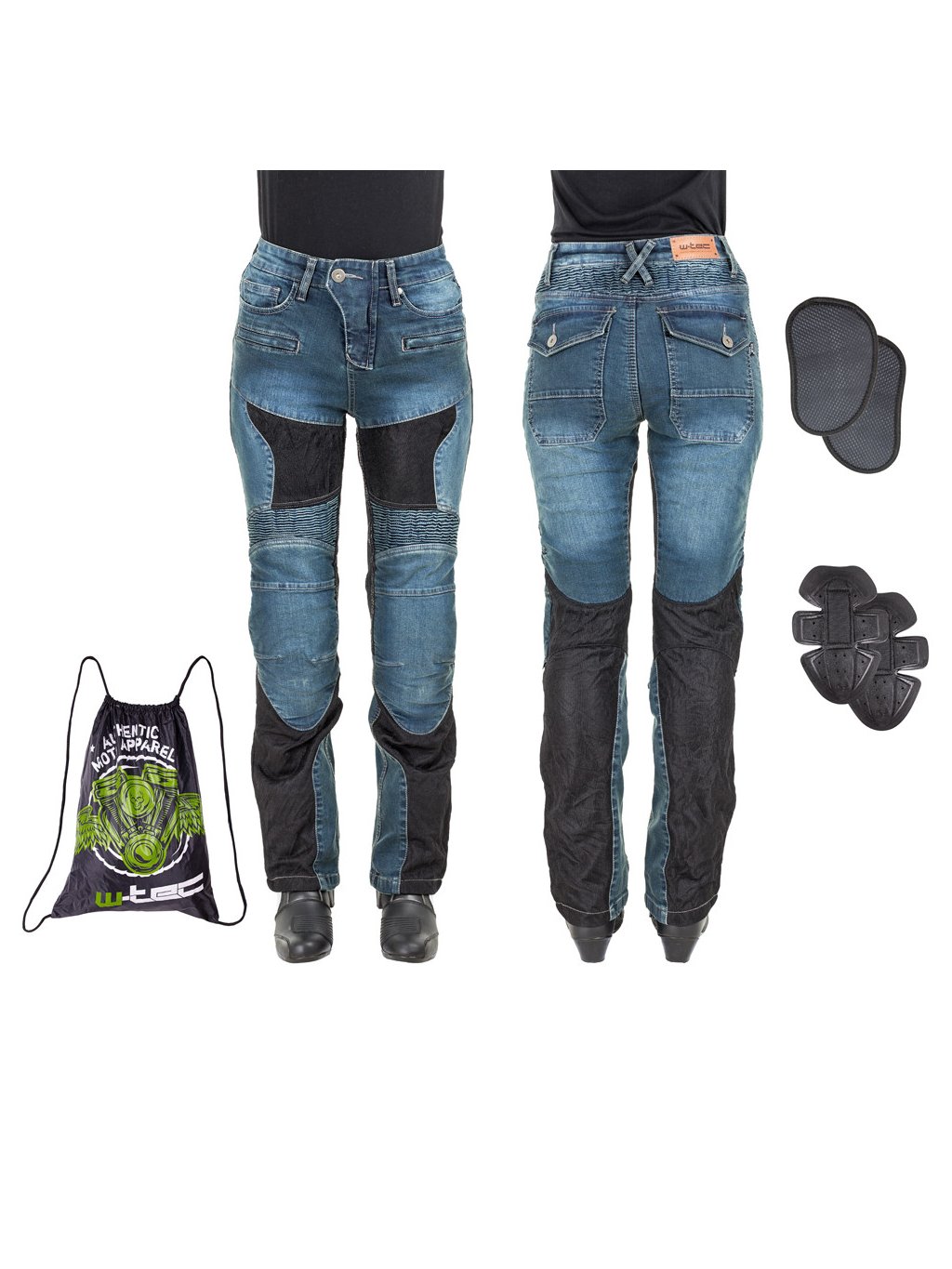 Dámské moto jeansy W-TEC Bolftyna jsou komfortní a slušivé denimové kalhoty na motorku. Díky anatomickému tvaru a příměsi elastického vlákna Lycra se dokonale snoubí s proporcemi dámského těla a budou tak lichotit Vaší postavě. Praktický střih džín je dále prezentován pomocí vyššího pasu. Vysokou míru pohodlí si můžete užít především díky mnoha strečovým prvkům a rozsáhlým ventilačním panelům, které přijdou vhod za vysokých teplot.