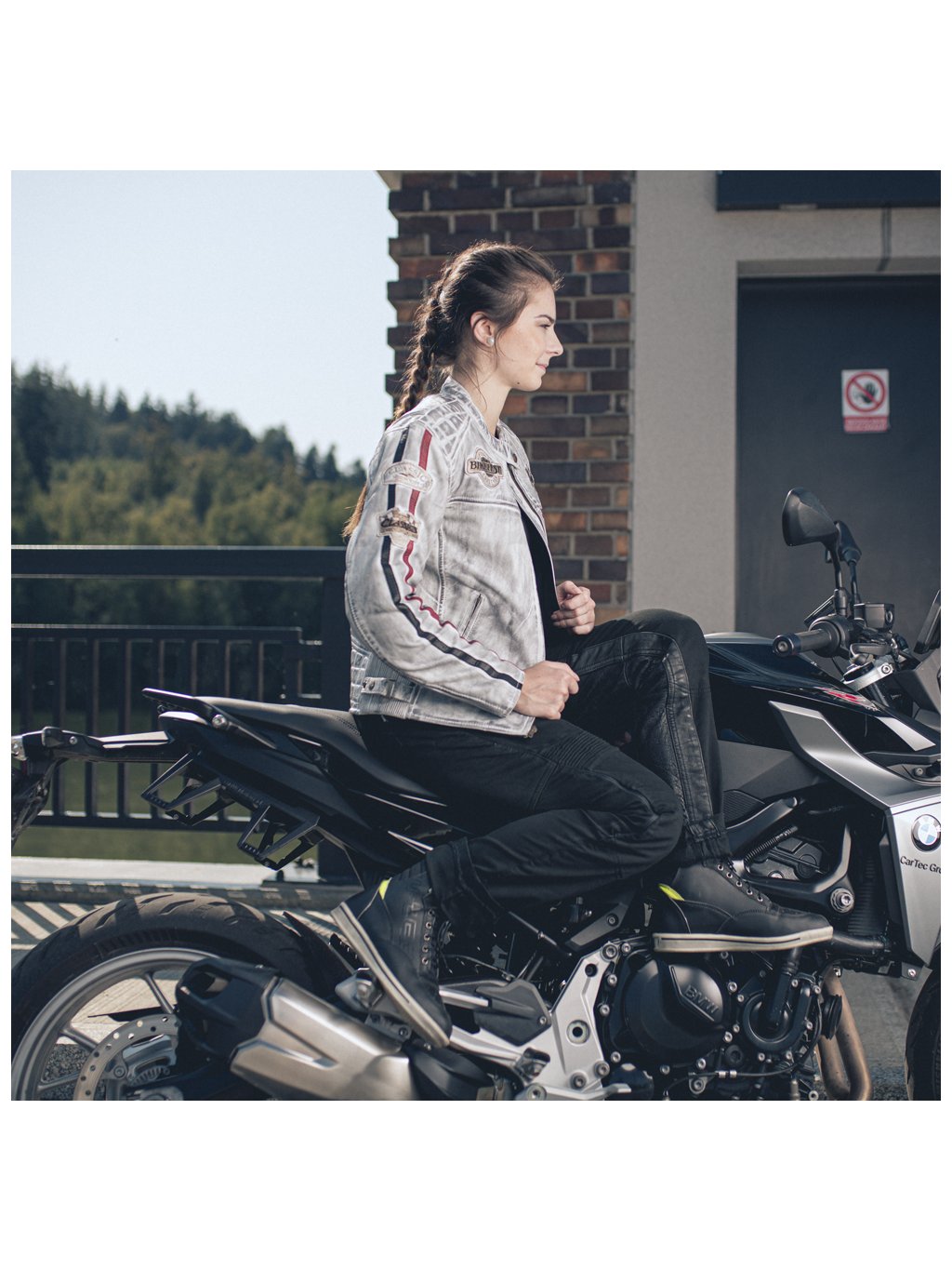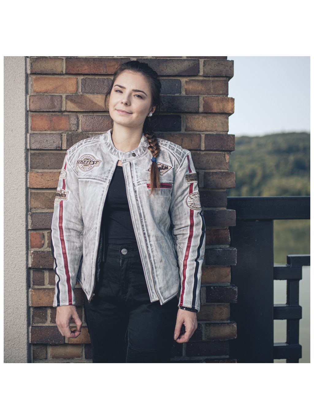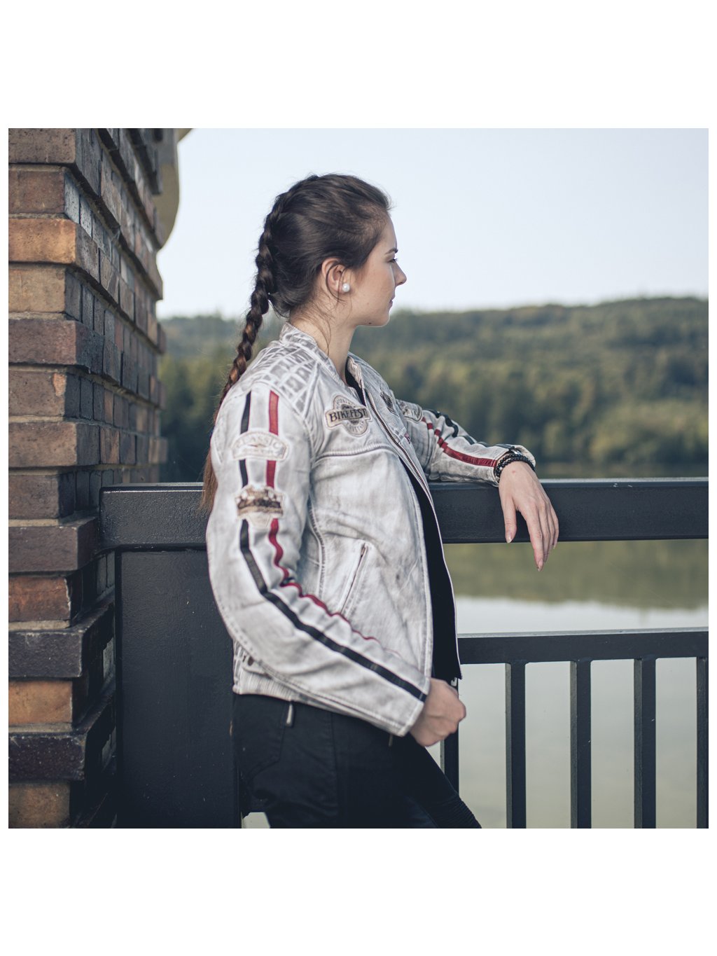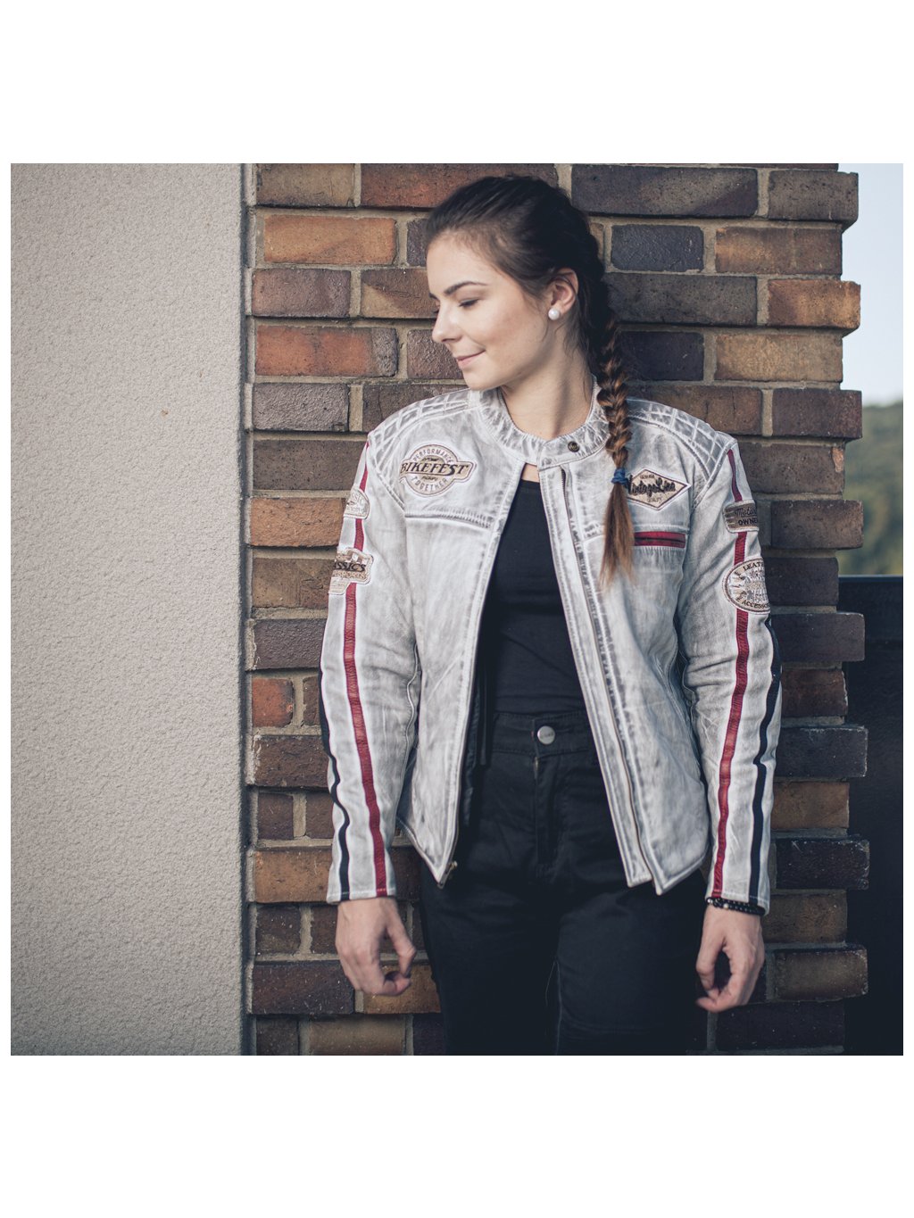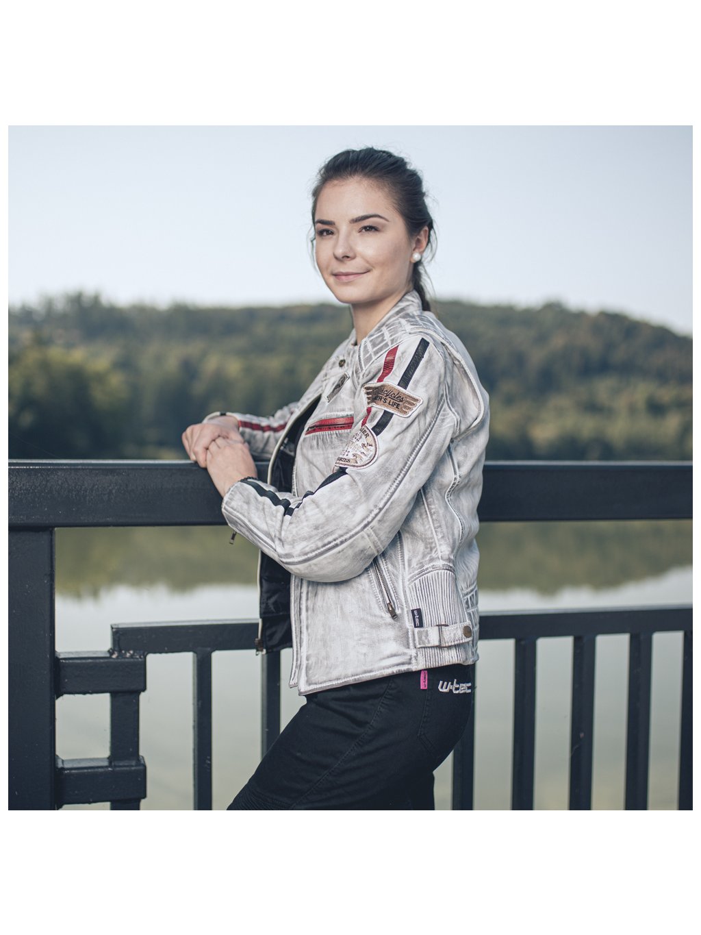 Ergonomický střih bundy zaručuje komfort v jakékoliv jízdní pozici a zároveň nechá vyniknout křivky ženského těla. Navíc díky nastavitelným popruhům v pase a zipům na koncích rukávů ji lze vhodně přizpůsobit a tak bunda dokonale sedne. Je vyrobena z krásně měkké a poddajné kůže. Spolu s odnímatelnou vnitřní polyesterovou podšívkou nabízí příjemný pocit a vysokou míru pohodlí i zateplení. Praktičnost bundy doplňují 4 přední a 4 vnitřní kapsy (z toho 2 na odnímatelné vložce) na doklady, drobnosti a další náležitosti.
