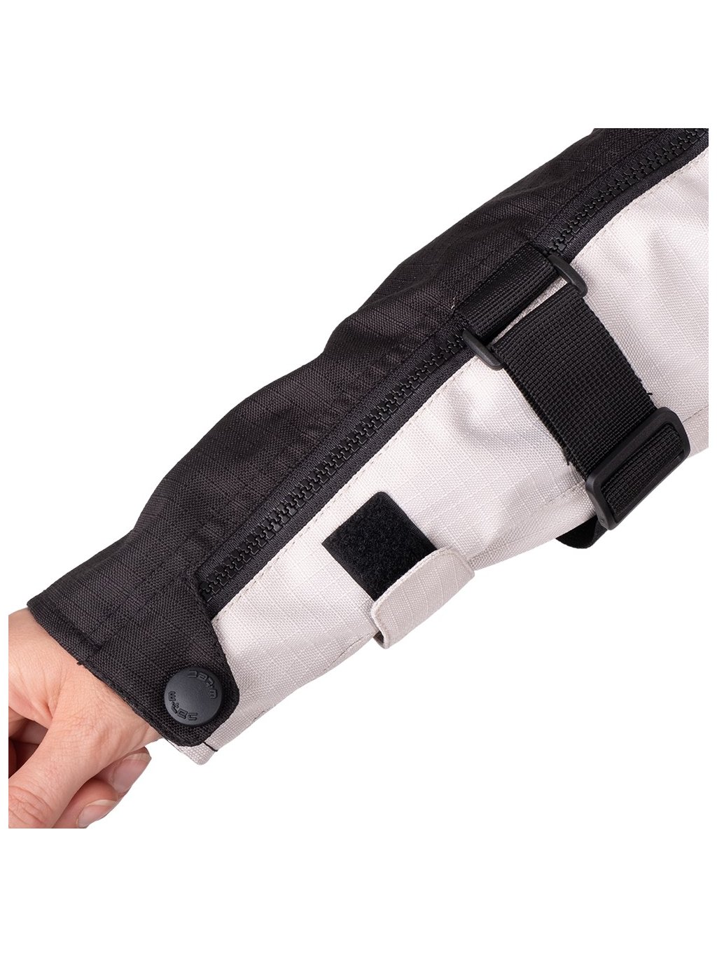 - regulační pásky se suchými zipy v oblasti boků a zápěstí k upravení velikosti