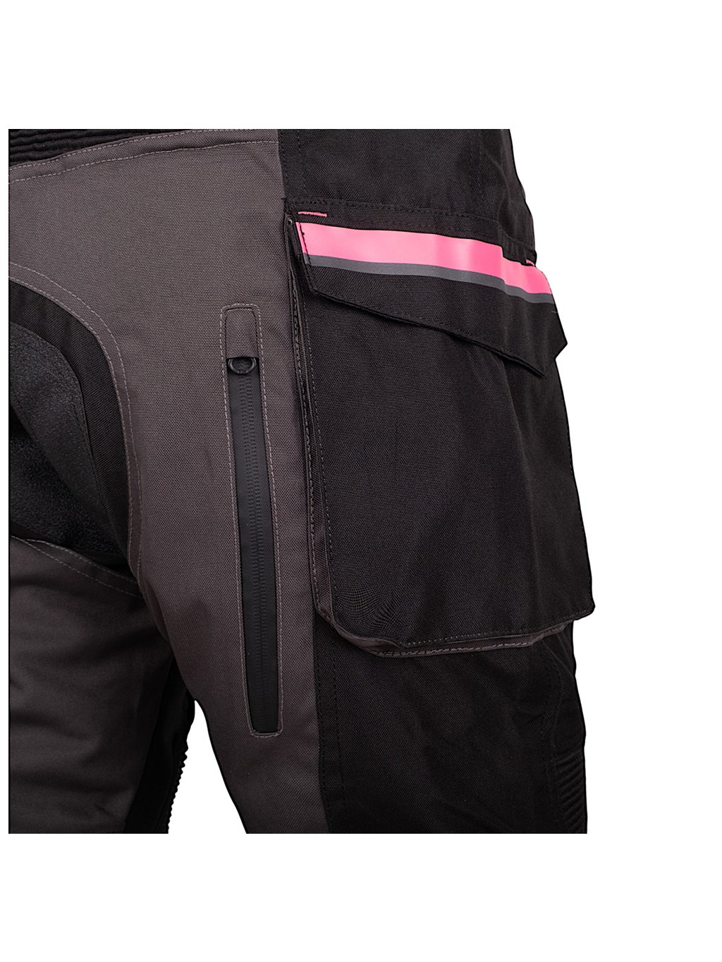 Dámské moto kalhoty W-TEC Barbata sedí jako ulité. Kombinují technickou výbavu s důrazem na ženské křivky a pohodlí. CE chrániče kolen (level 1, E+K type B) a výztuhy boků ti zajistí klid na duši, i když jízda přitvrdí. Ať už vyrážíte na víkendový výlet nebo denní dojíždění, vysoce odolný a lehký materiál Maxdura® 600-D vás udrží v pohodlí. Navíc s nepromokavou membránou vás nepřekvapí ani náhlý déšť. Když se počasí rozhodne přitopit, stačí rozepnout ventilační panely a kapsy – vpředu i vzadu – a vzduch proudí jako po dálnici.