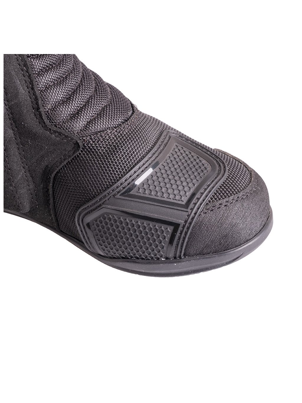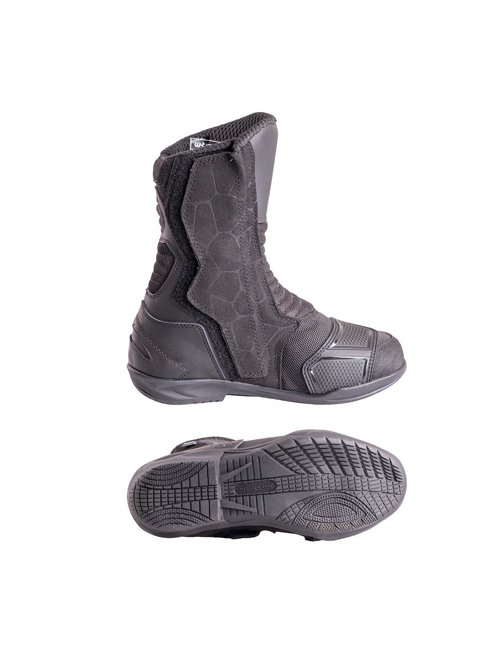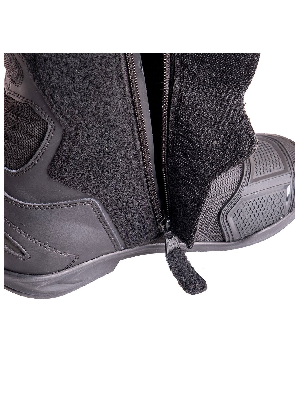 Boční panel nad zapínáním je zpracován s luxusně vypadajícím finišem z koženého semiše. To dodává botám exkluzivní a originální styl. Díky těmto skvělým vlastnostem a atraktivnímu designu jsou moto boty W-TEC Dalmacia oblíbenou volbou mezi motorkářkami, a to především pro silniční a cestovní využití.