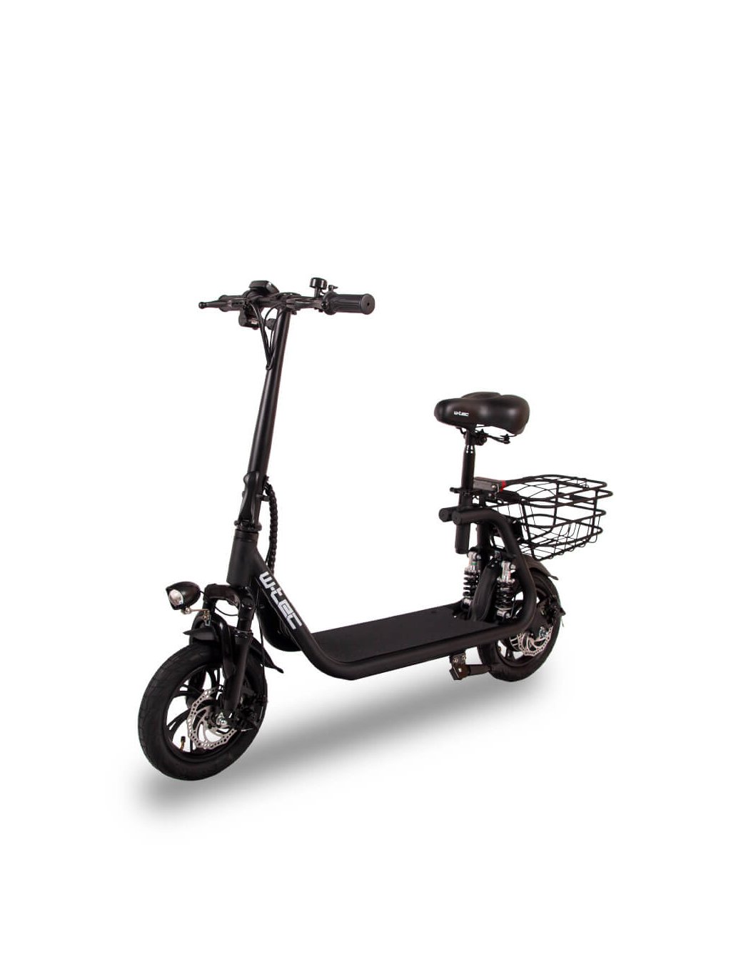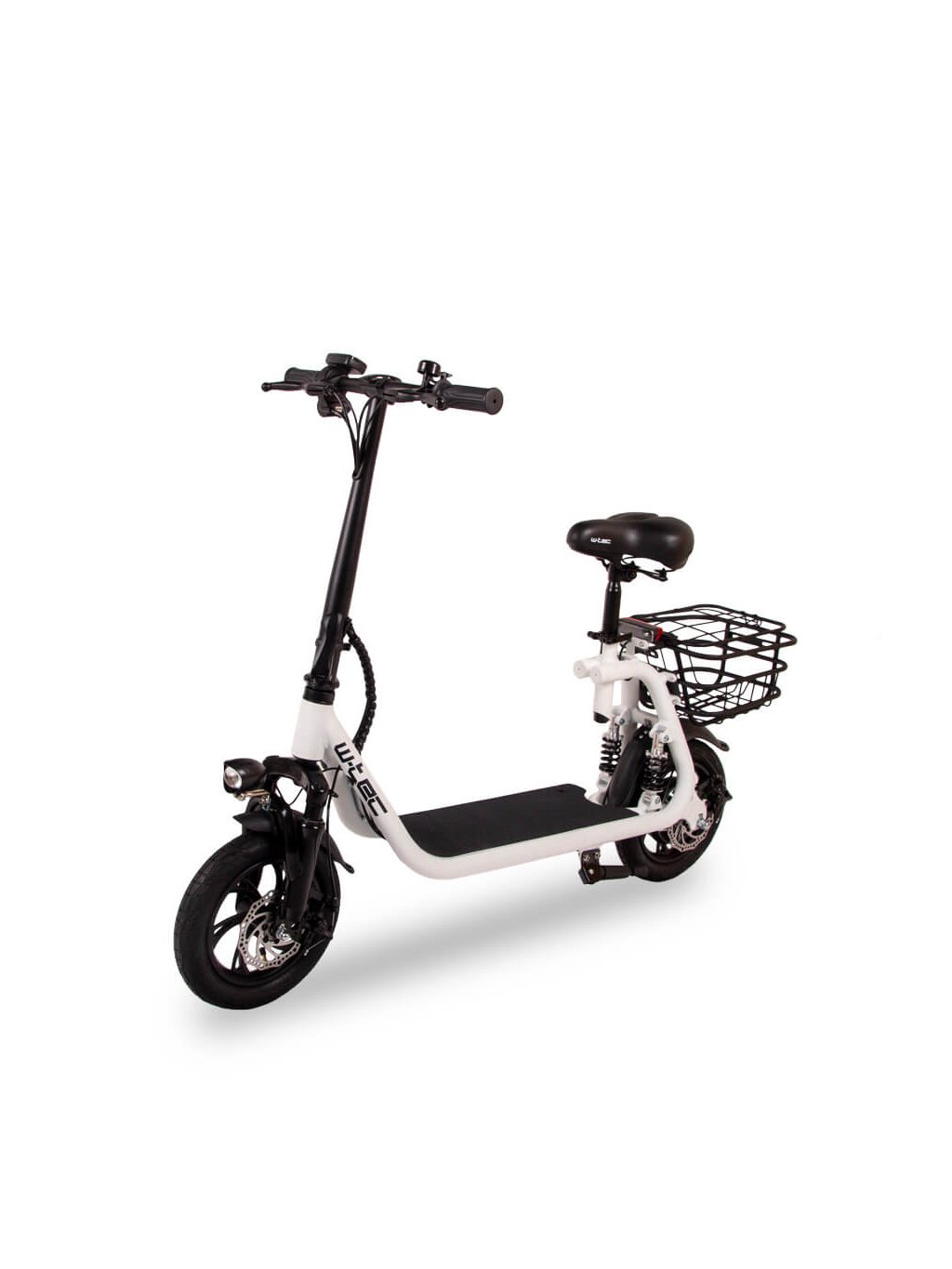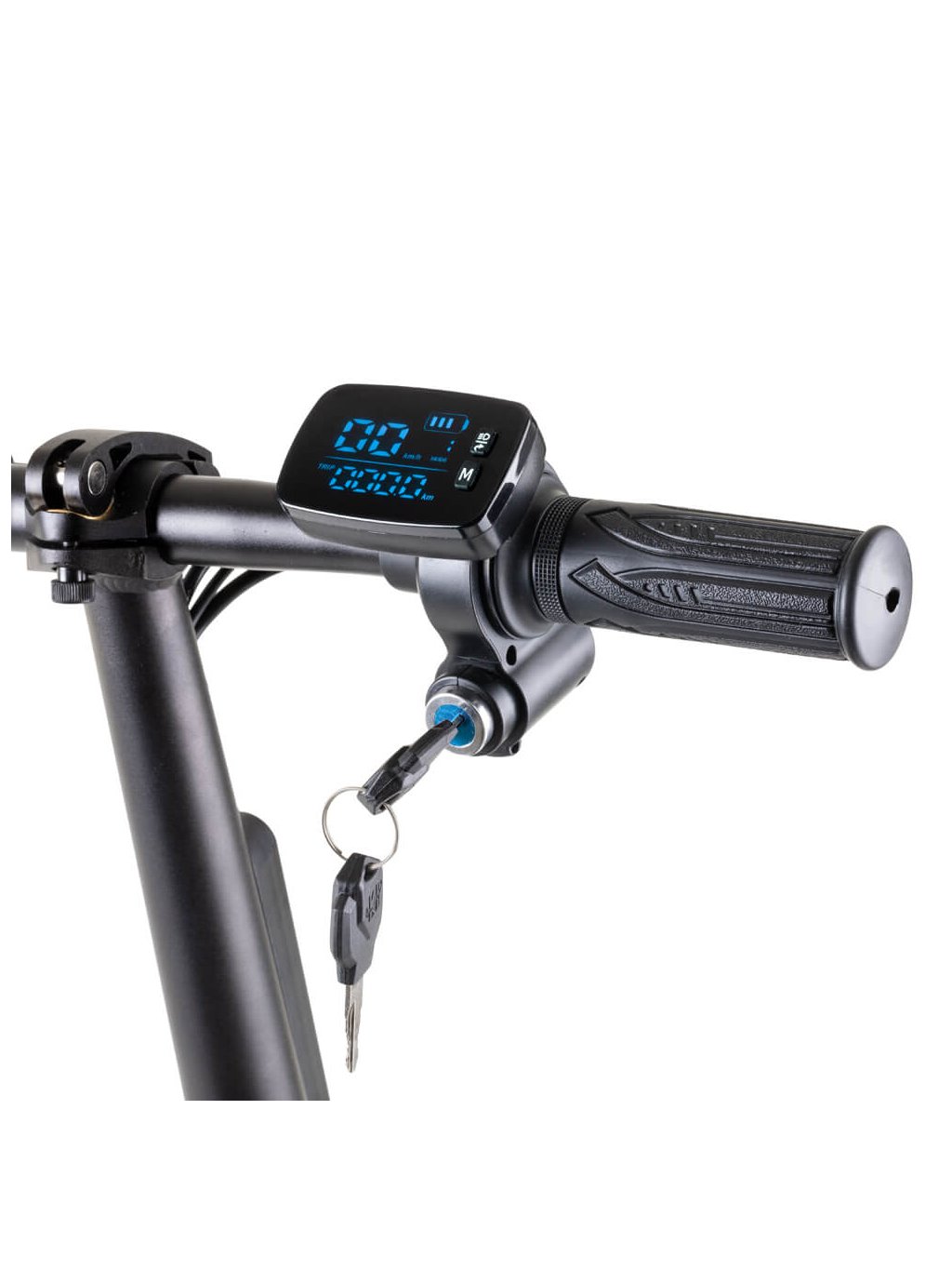 Parádní vychytávkou je také zámek na klíč. Při kratší pauze stačí koloběžku klíčem uzamknout, ta je imobilizována (nelze ji zapnout) a vy tak nemusíte s sebou navíc tahat těžký zámek. Ve výbavě nechybí ani stojánek - pro chvíle, kdy koloběžku zrovna nepoužíváte. Za zhoršených světelných podmínek vaší viditelnost podpoří přední a zadní světlo. Díky přítomnosti košíku v zadní části stroje je ideální také na nákupy a převážení drobnějších věcí (až do hmotnosti 10 kg). V případě, že dojde "šťáva" 10,2 Ah baterii, kterou je koloběžka vybavena a která nabízí dojezd až 30 kilometrů, není problém nouzově dojet na místo určení vlastní silou, odstrkáváním, případně koloběžku vést. Motor je v tu chvíli odpojen a neklade žádný odpor.