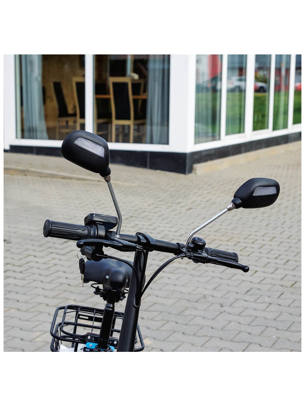 další vybavení | přední i zadní odpružení, plynová rukojeť, zamknutí na klíč, skládací mechanismus řídítek, podsvícený multifunkční displej (napájený centrální baterií), stojánek, blatníky, zvonek, příprava pro montáž zpětných zrcátek |