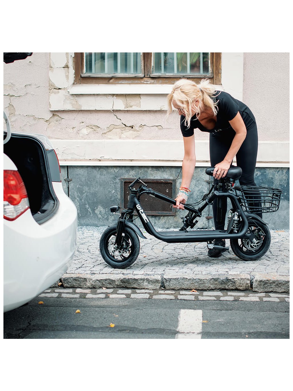 Pokud budete potřebovat převést samotnou koloběžku, je možné sklopit její řídítka, sedlo nastavit do nejnižší polohy, a posléze uložit do zavazadlového prostoru automobilu. Můžete se efektivně dostat do školy, práce, snadno objíždět dopravní zácpy. Ve volném čase si naopak můžete vychutnat kouzlo cyklostezek, silnic i lesních cest