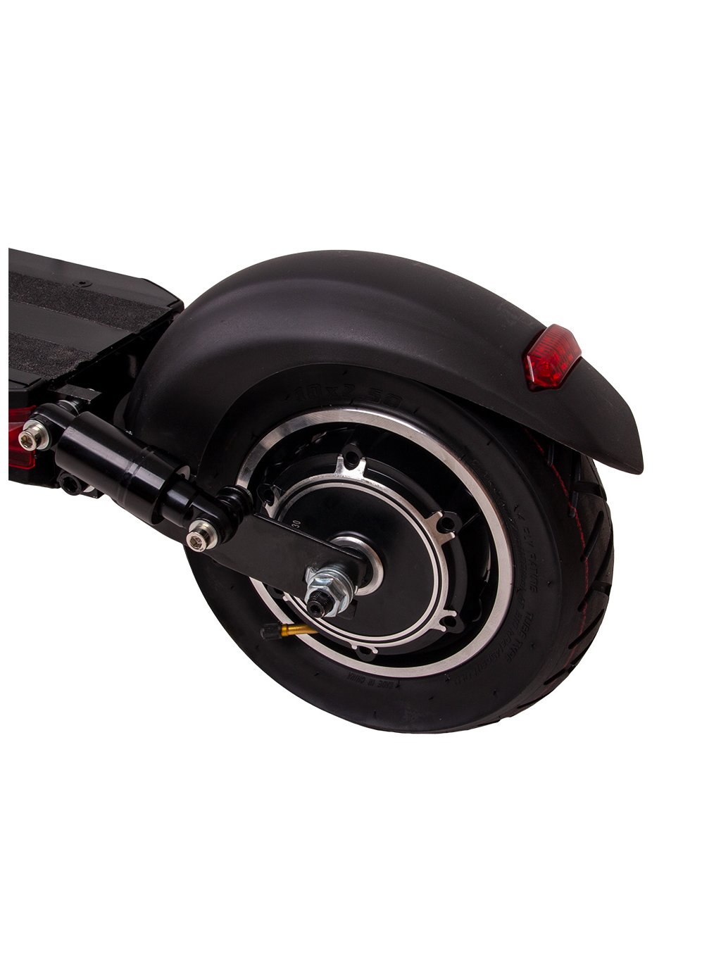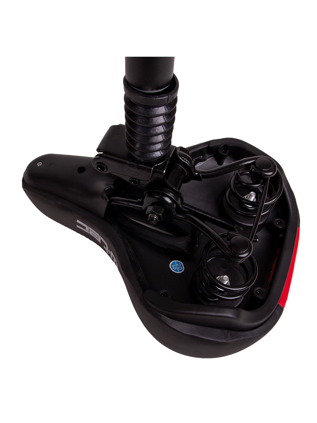 Na pečlivém zpracování, které bylo vyšperkováno do detailu, se podílí také pevné pneumatiky s průměrem 10" (25,4 cm), jež mají skvělou přilnavost a výborně tlumí nepříjemné vibrace při jízdě. Koloběžka navíc disponuje kvalitním předním a zadním odpružením, které zaručuje pohodlnou a hladkou jízdu. Kromě toho jsou kola chráněna blatníky, což přispívá k ochraně před nečistotami z důvodu nepříznivého počasí. Odolnosti napomáhá i samotná hliníková konstrukce s výškově nastavitelnými řídítky. Koloběžka bude vhodná pro jezdce s postavou od 150 do 210 cm. Na 53 cm dlouhém nášlapu se můžete pohodlně svést s chodidly za sebou či vedle sebe.