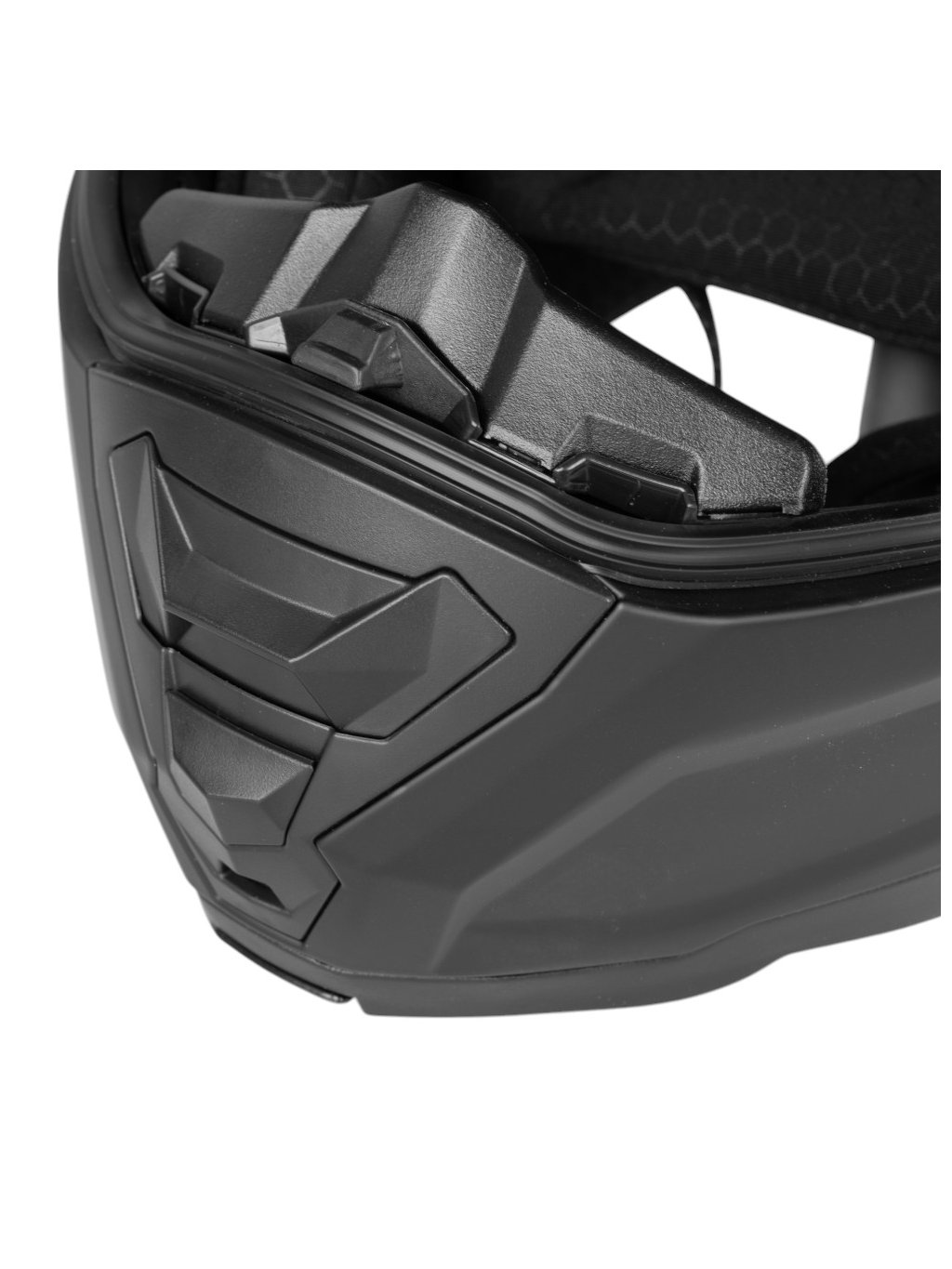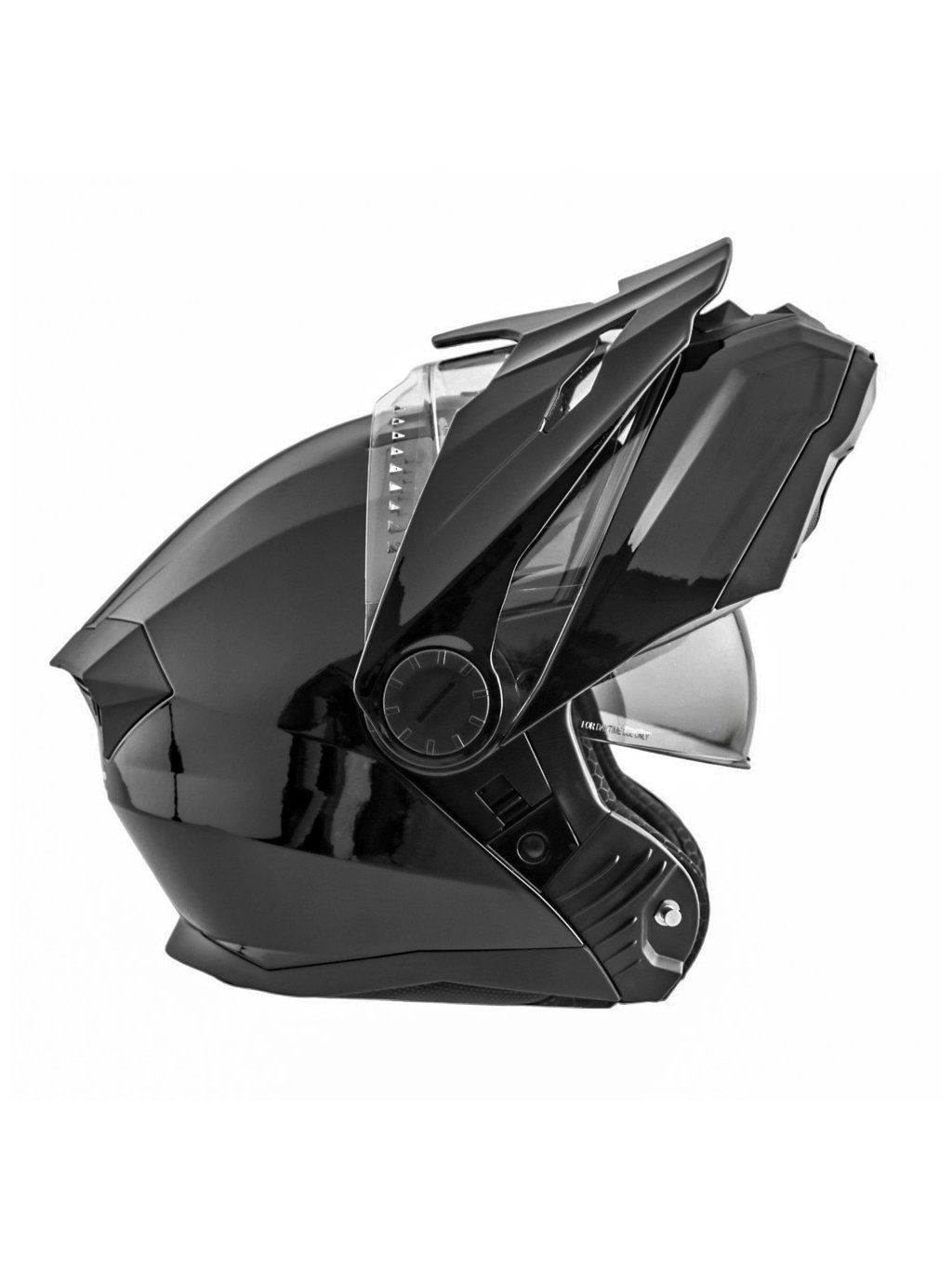 Má také odklopné hledí i celou bradovou část, která je zajištěna na kovové zámky. Plexi je vybavené přípravou pro Pinlock® folii. To je doplněné o samostatně výsuvnou sluneční clonu, která chrání proti ostrému slunci v průběhu jízdy. Lze ji pohodlně a intuitivně ovládat z vnějšku pomocí mechanismu na boku helmy.