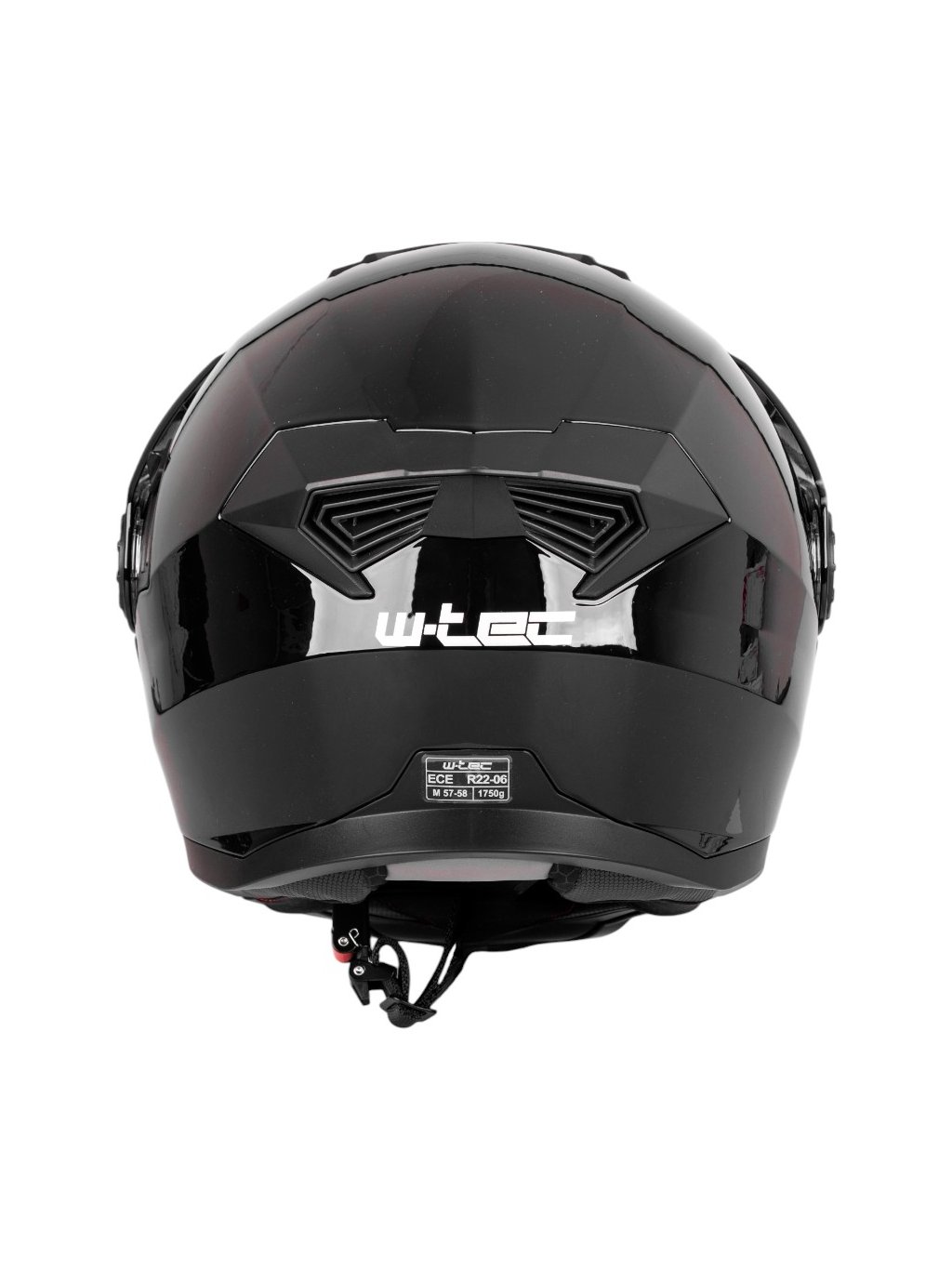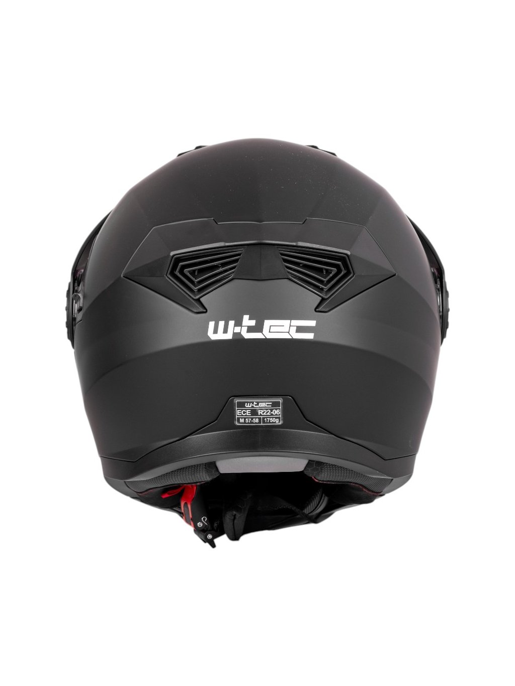 Vysoký bezpečnostní standard výklopné přilby W-TEC Biscaia je zaručen evropskou homologací ECE 22.06 P/J, kdy je možné jezdit i s odklopenou bradovou částí.