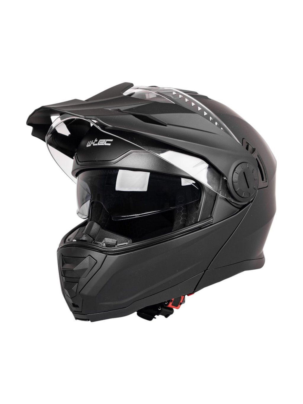 Výklopná přilba W-TEC Biscaia je univerzální 3v1 moto helma, kterou využijete jak pro jízdu na silničních motocyklech, tak si jí můžete vzít i na výlety a dobrodružství v terénu. Pro tento účel je vybavena snadno odnímatelným kšiltem.