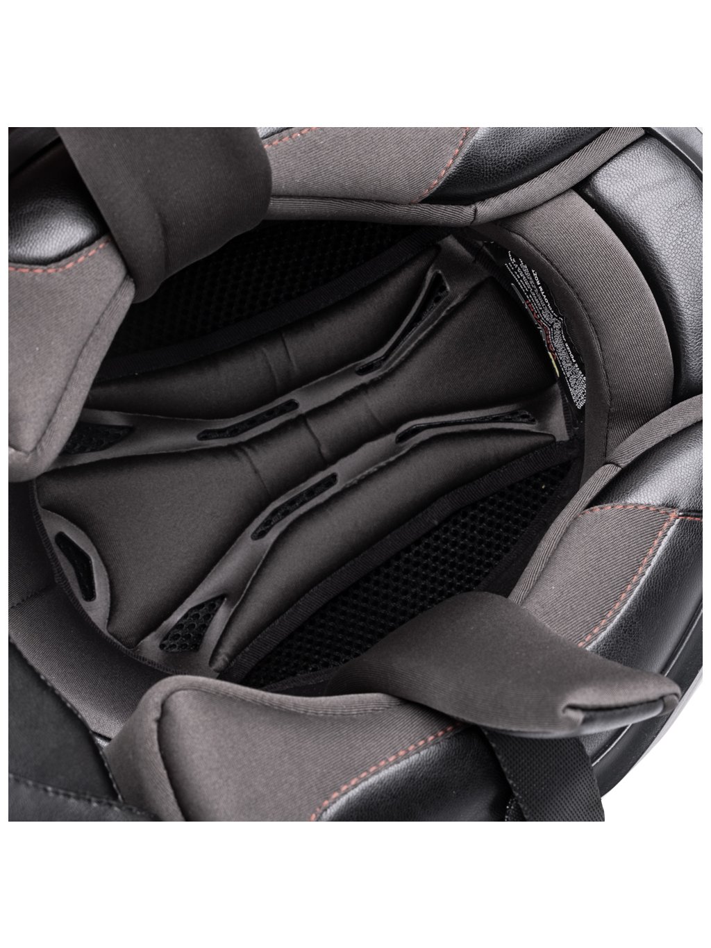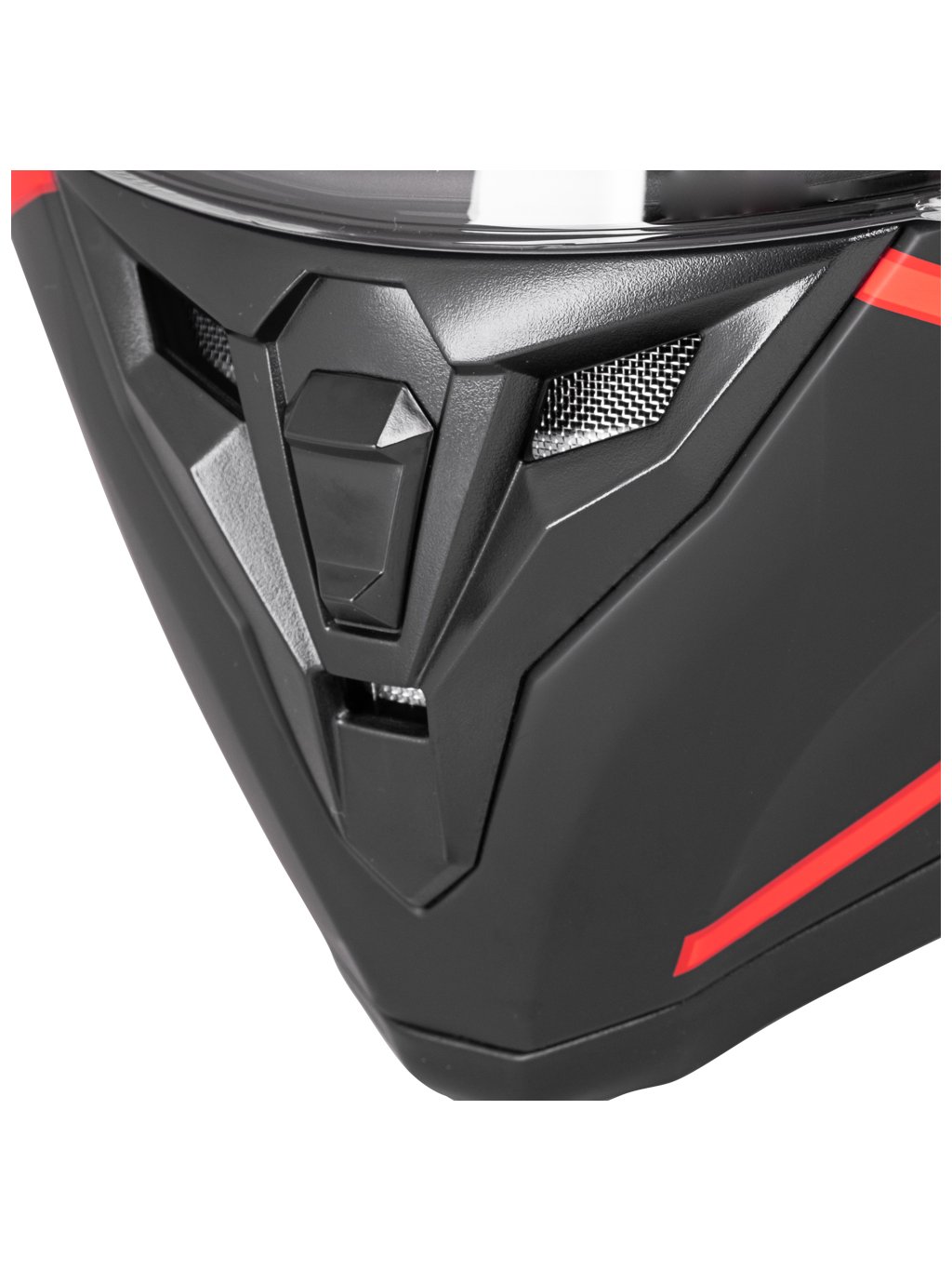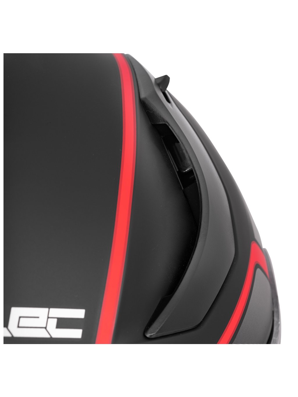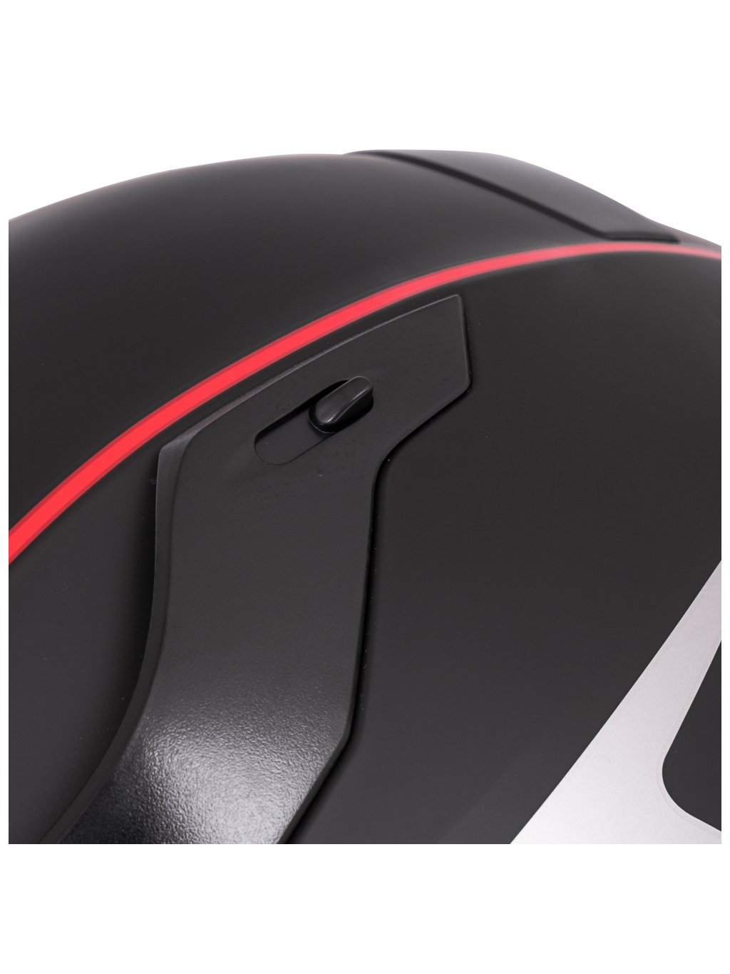S vynikající aerodynamickou konstrukcí a stylovým designovým finišem je vybavena mnoha funkcemi, které zpříjemní Váš zážitek z jízdy i v náročných podmínkách. Ihned si lze povšimnout výrazného spoileru a chytře tvarově vyvedených prvků ventilace na horní části přilby. Nechybí ani větrání bradové části a robustní, příjemně měkké polstrování, které lze vyjmout.
