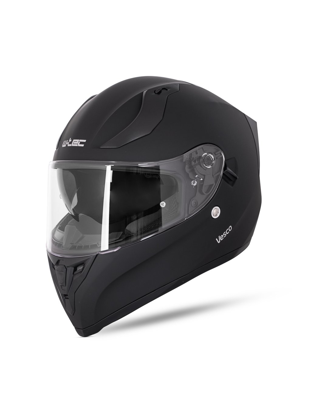V neposlední řadě potěší i jednoduché a rychlé zapínání se snadnou možností jeho dotažení. Bezpečnostní standard je zaručen evropskou homologací ECE 22.06. Díky kvalitnímu zpracování, skvělé výbavě a bezpečnostnímu standardu je integrální přilba W-TEC Vesco ideální pro každou jízdu s komfortem a hlavně v bezpečí!