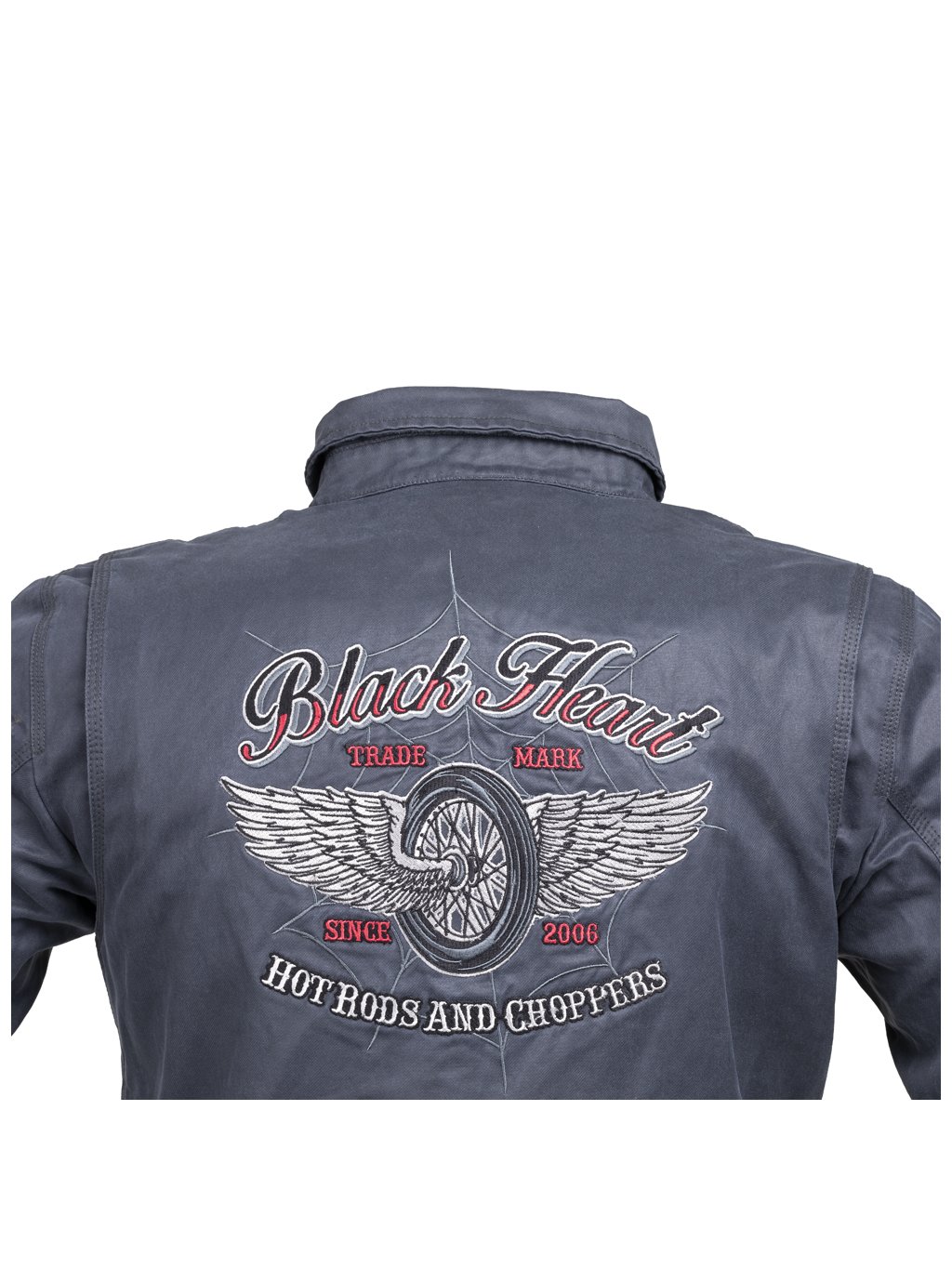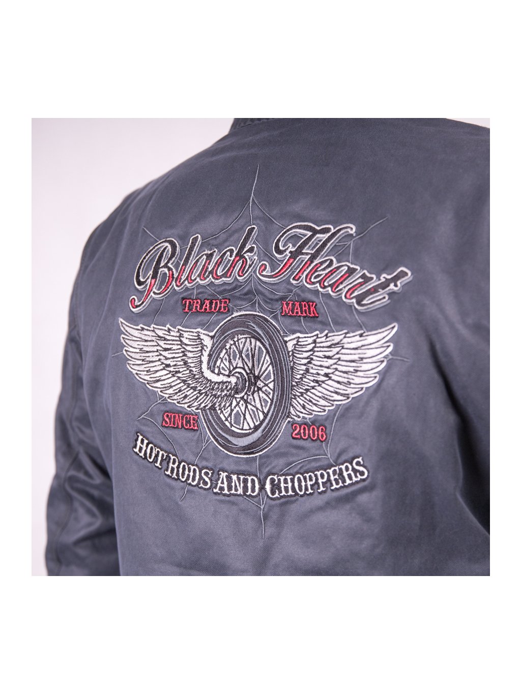 • logo BLACK HEART na hrudi NA ZÁDECH výšivky