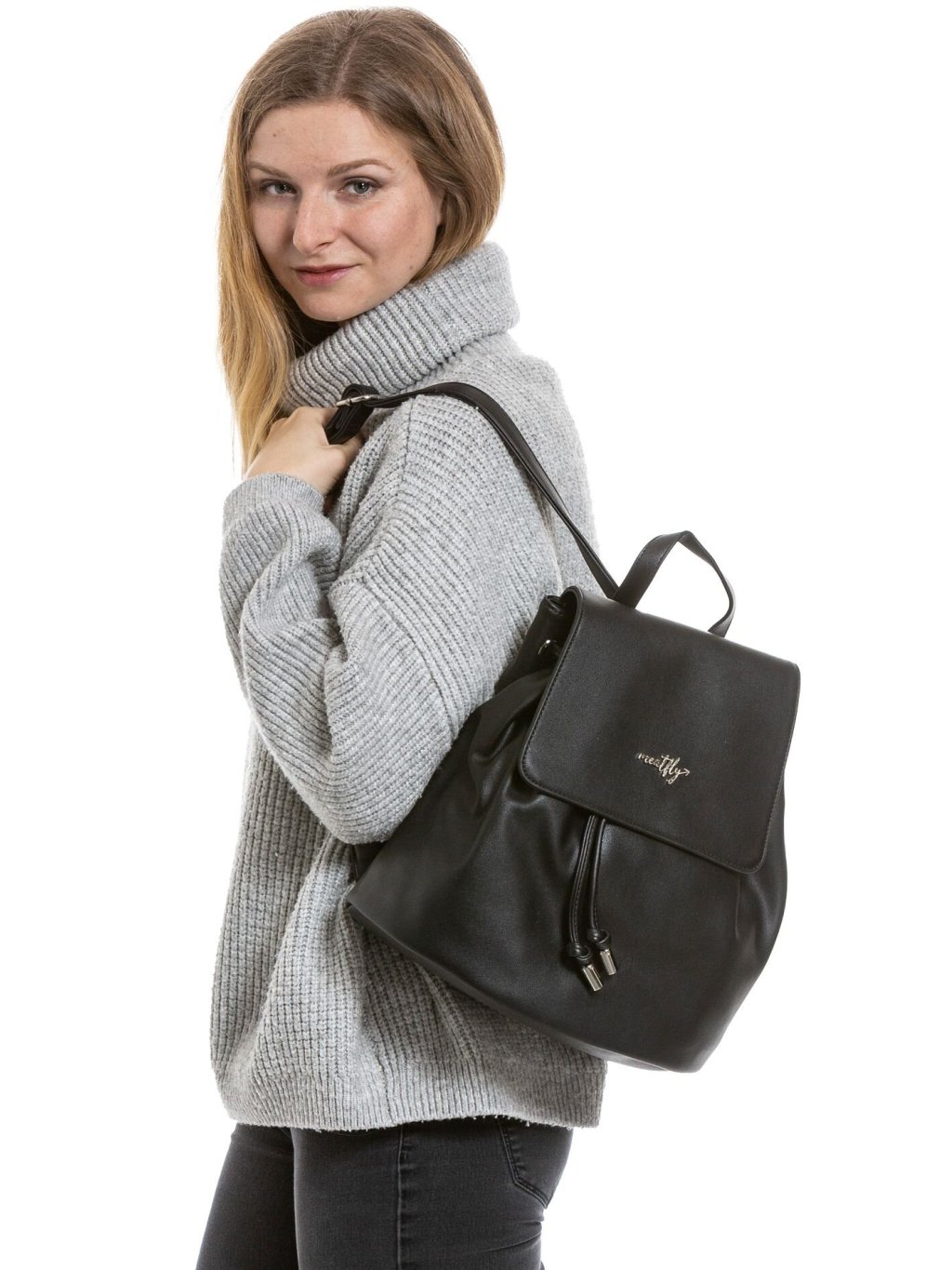 Úložný prostor hlavní prostorná přihrádka se zapínáním na druk a stahováním pomocí šňůrek uvnitř hlavní kapsy přezka pro bezpečnější uzavření batohu dvě vnitřní otevřené kapsičky a jedna na zip Funkční detaily podélně nastavitelné ramenní popruhy poutko na zadní straně Materiál syntetická kůže podšívka - směs bavlny a polyesteru Rozměry 30 x 28 x 13 cm (V,Š,H)Doplňkové parametry