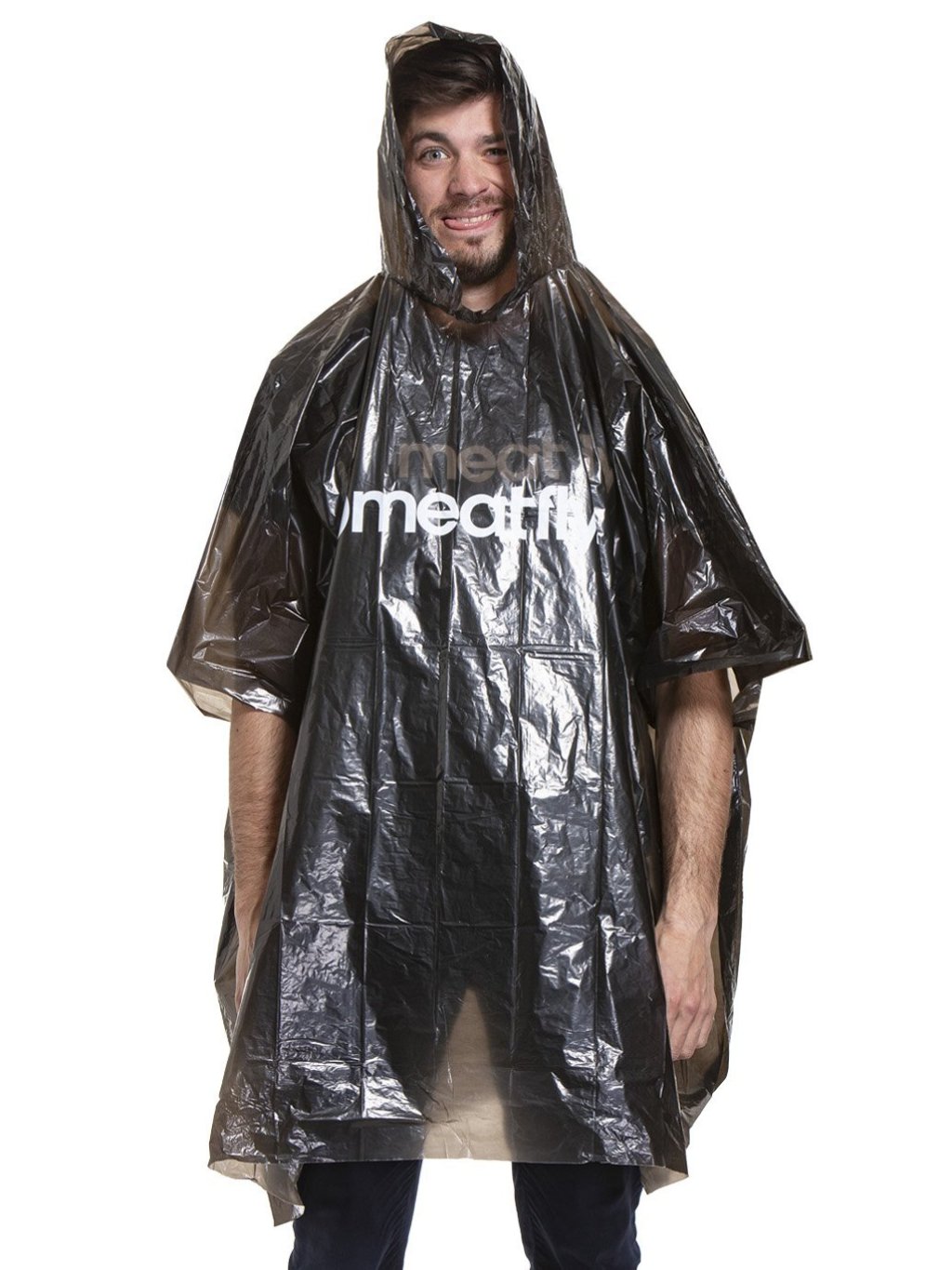 Pláštěnka - poncho Meatfly v černé průsvitné barvě a v univerzální velikosti.Doplňkové parametry