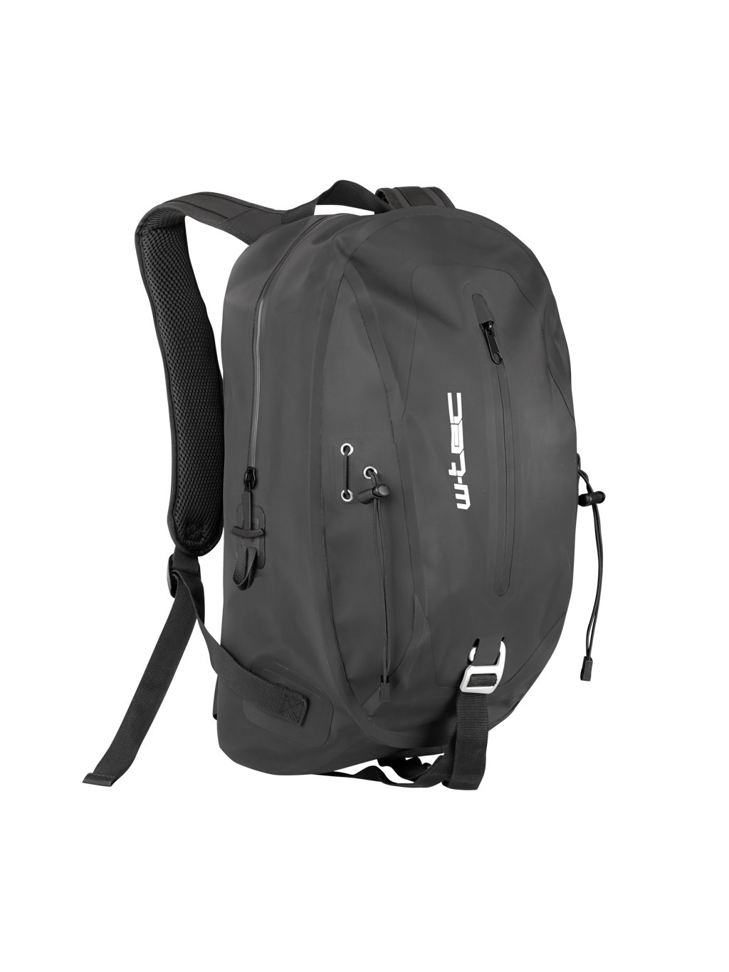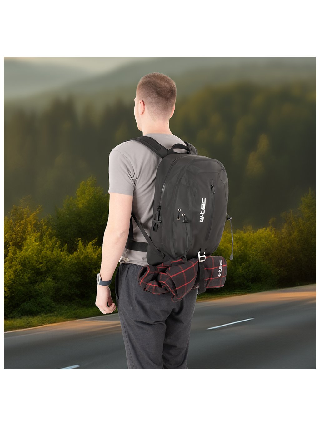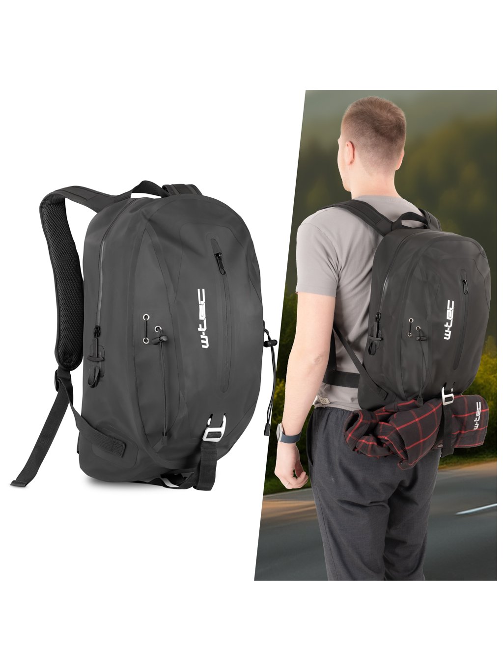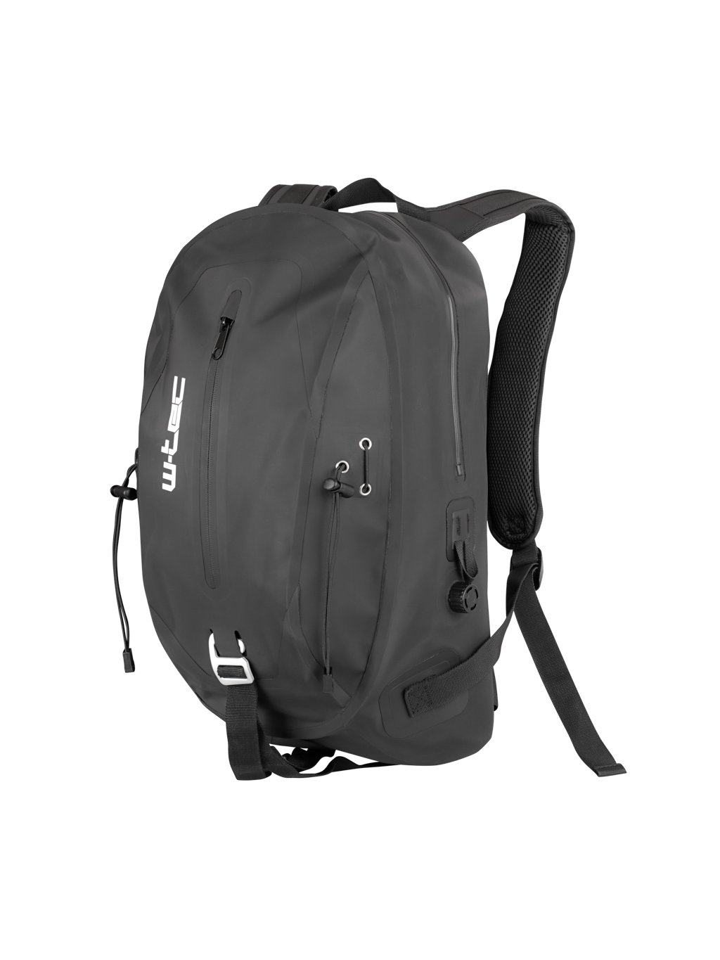 Moto batoh W-TEC Swampz je objemný 25 litrový vak vyrobený z voděodolného a snadno udržovatelného TPU (polyuretan). Jeho nepromokavost je podpořena lepenými švy a nepromokavými zipy všech vnějších zapínání.