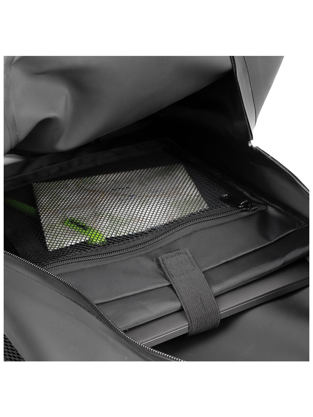 Batoh je právě díky klasické konstrukci se zipem praktičtější než typické nepromokavé vaky s rolovacím uzavíráním - ke svým věcem budete mít rychlejší přístup. Vnitřní prostor nabízí oddíl pro notebook, oddíl pro tablet a také síťovanou kapsu například pro doklady nebo mapu. Vše ještě doplňuje vnější kapsa na čele batohu. Pokud chcete snížit objem sbalených věcí, je možno použít systém stahovacích šňůrek.