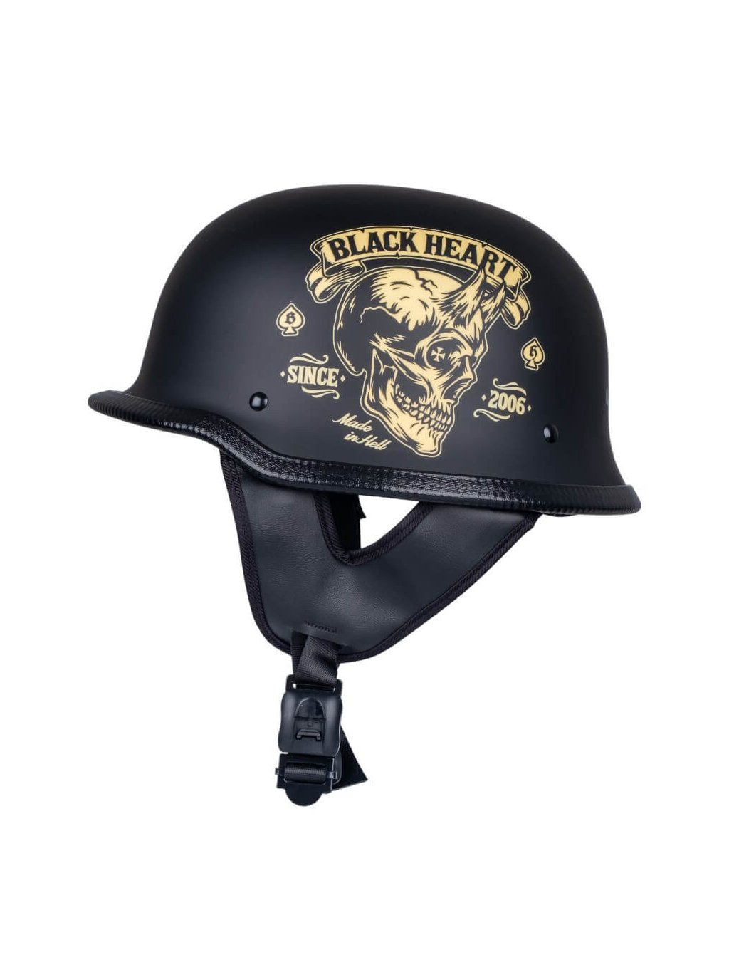 Hodí se hlavně k chopperům, cruiserům, retro skútrům a motocyklům typu "hárlej". Originální a atraktivní grafiku na přilbě má na starost designérská značka Black Heart - a tenhle rebelský motiv tady pěkně tvrdí muziku!