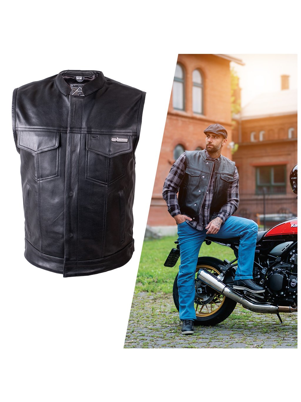Moto vesta W-TEC Delasola je atraktivní moto oblečení vyrobené z prémiové hovězí kůže. Vesta je vhodná pro jízdu především na chopperech, ale bude skvělá také na jiné typy motorek nebo rovnou i na běžné nošení - prostě všude, kde ji necháte vyniknout. Nehraje si však na žádnou extravaganci, oceníte spíše její elegantní minimalističnost. Je tak ponechán i prostor na vlastní klubové nášivky.