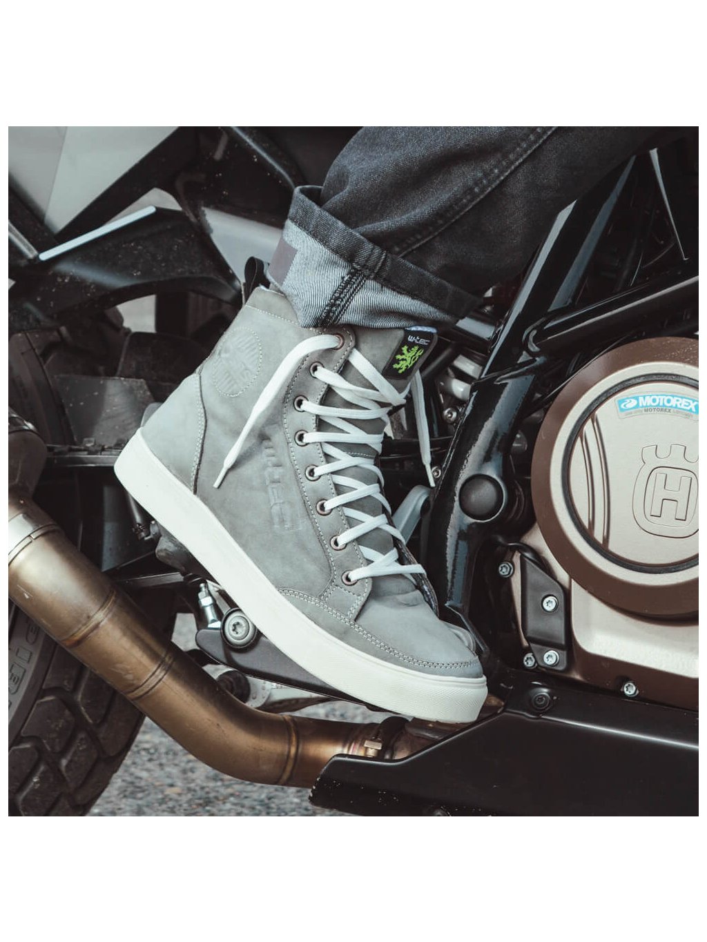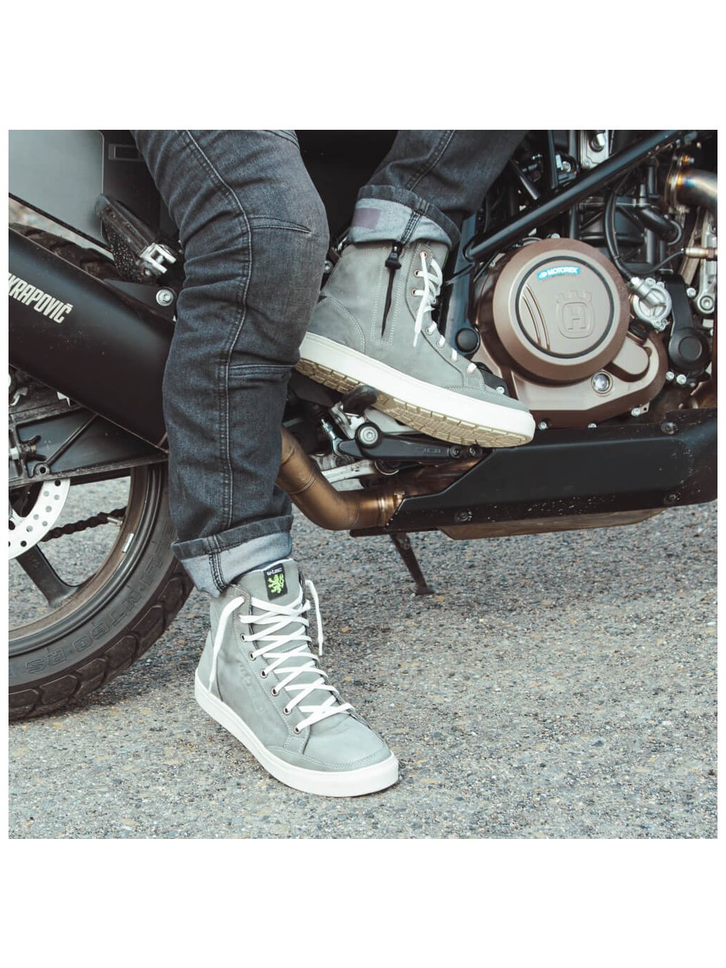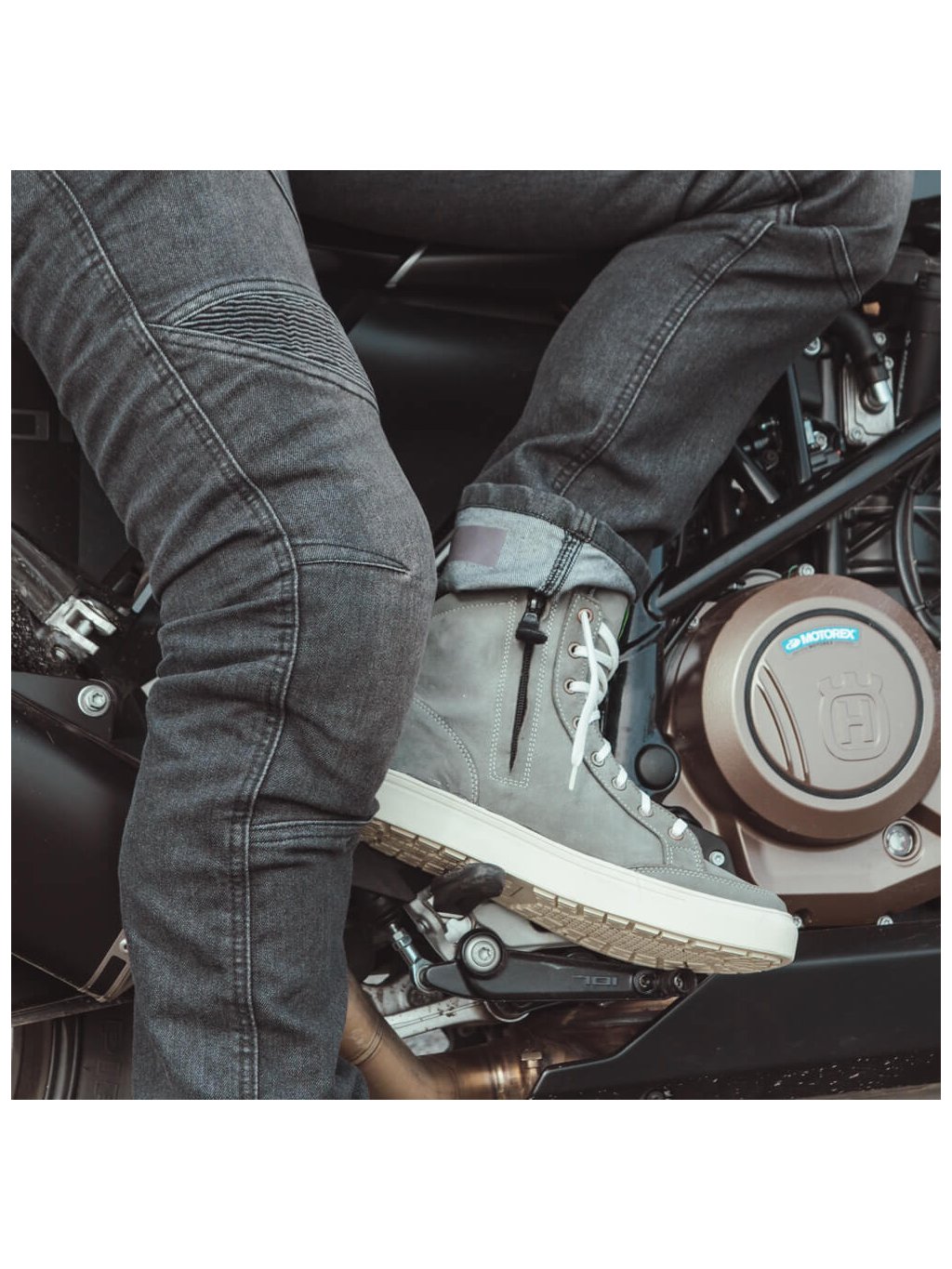 Pro usnadnění obouvání a vyzouvání jsou boty vybaveny nejen praktickým poutkem, ale i bočním zipem. Samozřejmostí pro použití na motorce pak je vyztužená oblast špičky a paty nebo ochrana kotníků.