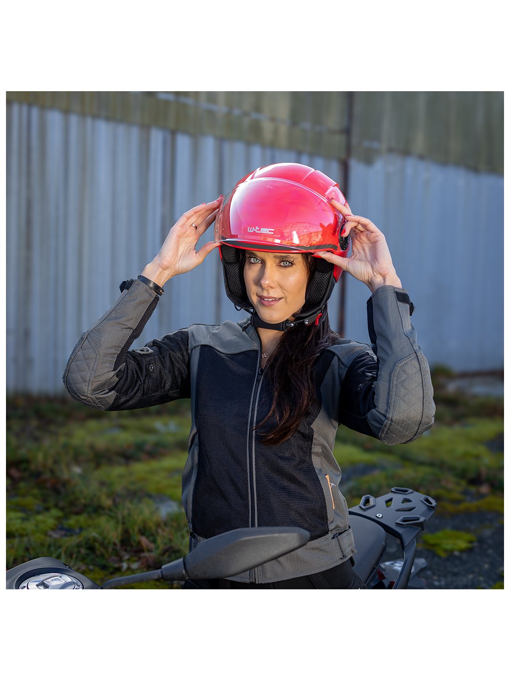 Otevřená přilba W-TEC Bareiro Amaranto zaujme všechny milovnice skútrů a motocyklů s nižšími kubaturami, které hledají jednoduchou přímočarou helmu, se kterou budou křížem krážem brázdit čtvrtě svého města, ať už do práce nebo na kafčo a setkání s přáteli.