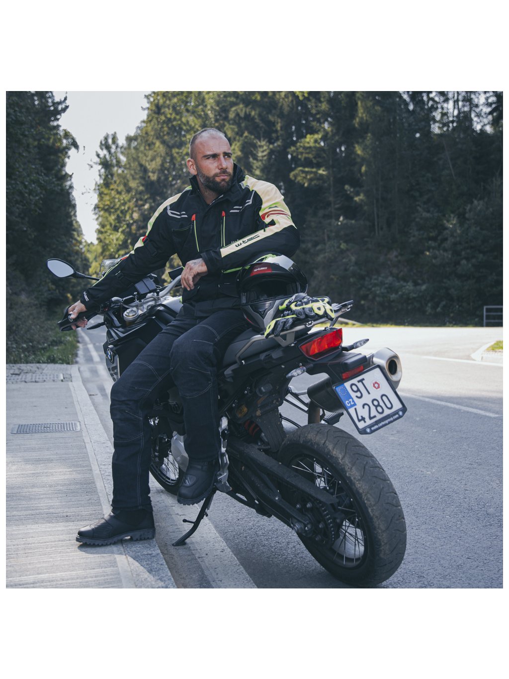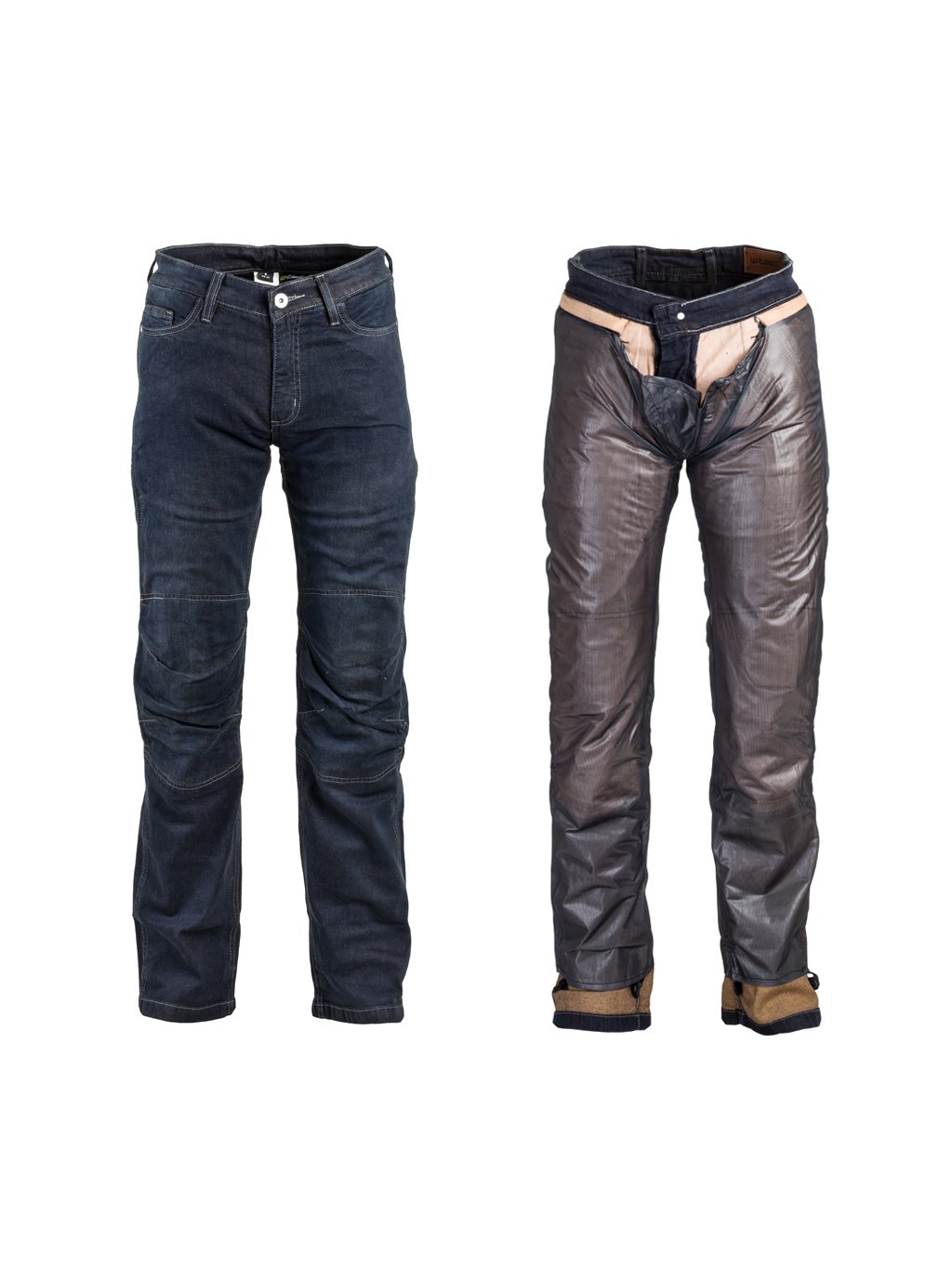 Džíny jsou mimo jiné vybaveny vyjímatelnými chrániči boků a kolen, čímž je ještě zvýšen stupeň bezpečnosti. Další výhodou je přítomnost vyjímatelné Reissa membrány s nepromokavými vlastnostmi, takže se nemusíte bát ani případného deště.