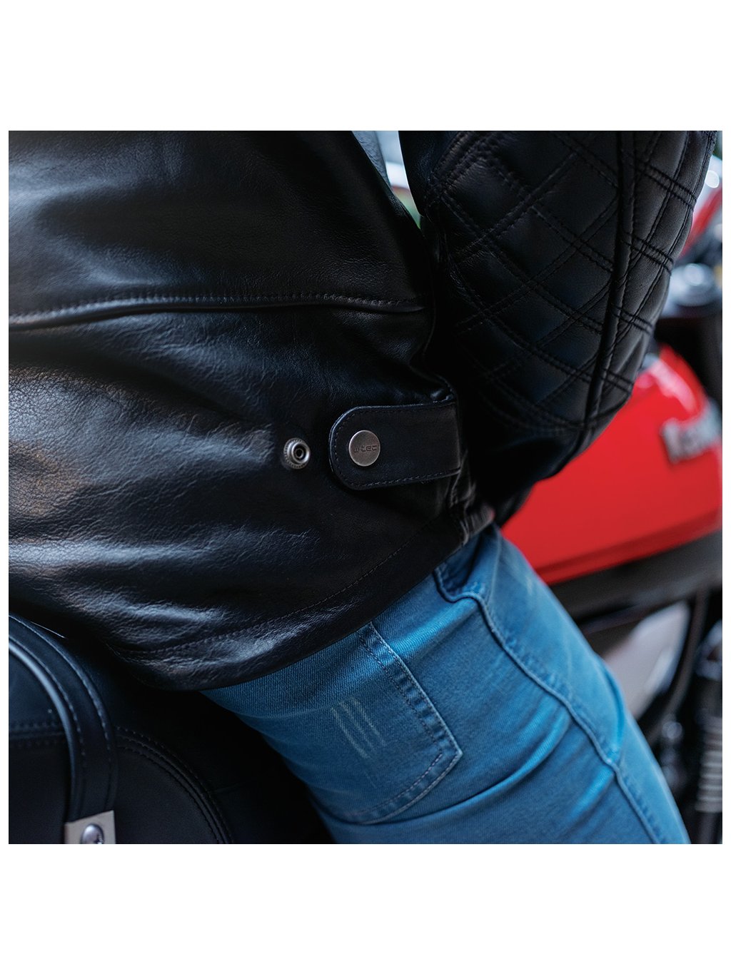 Ergonomický střih bundy zaručuje komfort v jakékoliv jízdní pozici. Navíc díky nastavitelným popruhům v pase jí lze vhodně přizpůsobit a bunda tak skvěle sedne.