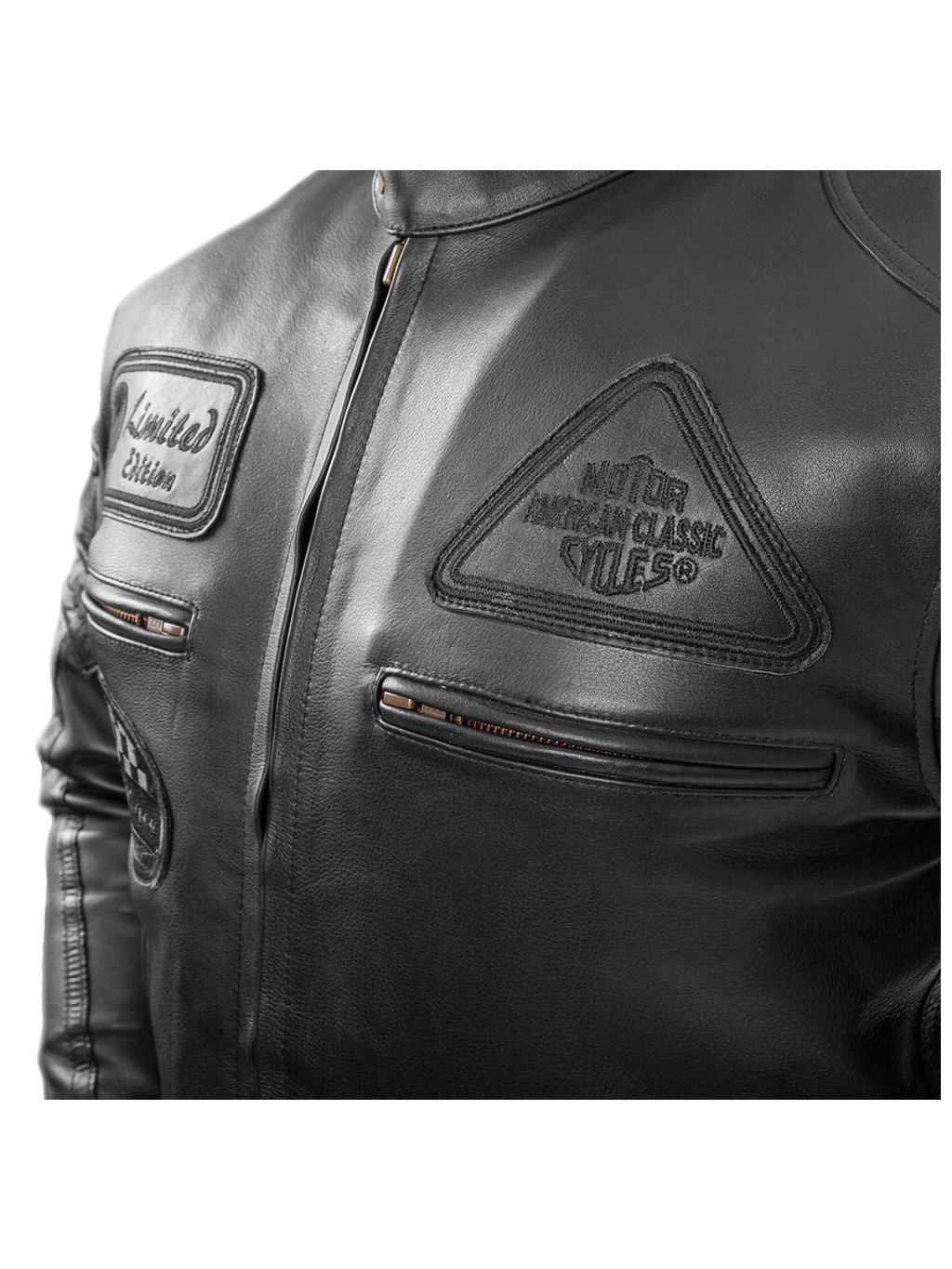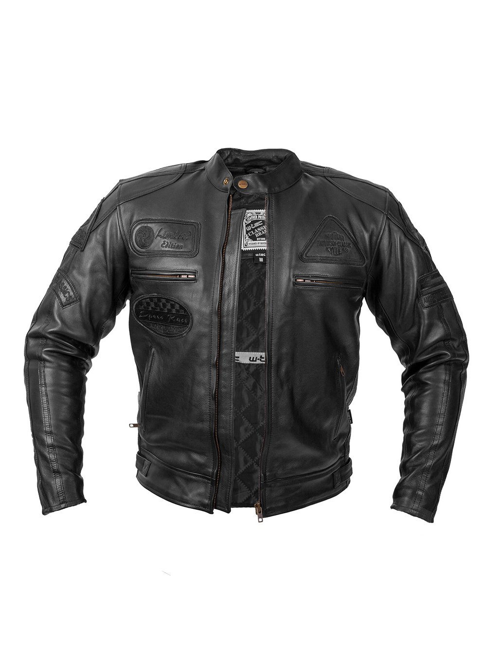 Vkusný styl na motorku, který je v neposlední řadě podpořen barevně sladěnými nášivkami, to je kožená bunda W-TEC Urban Noir.
