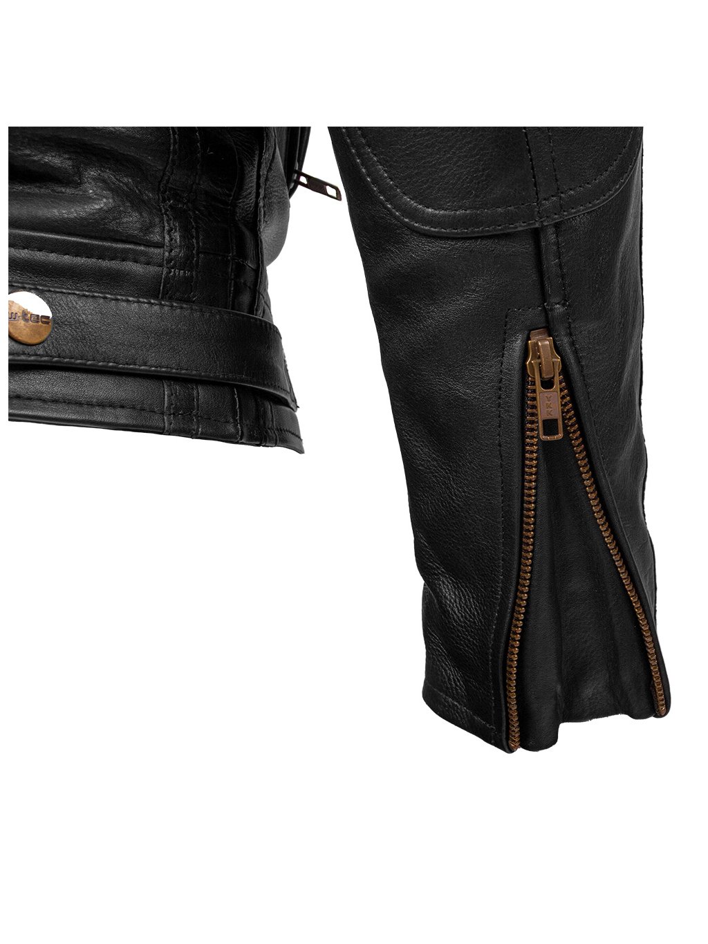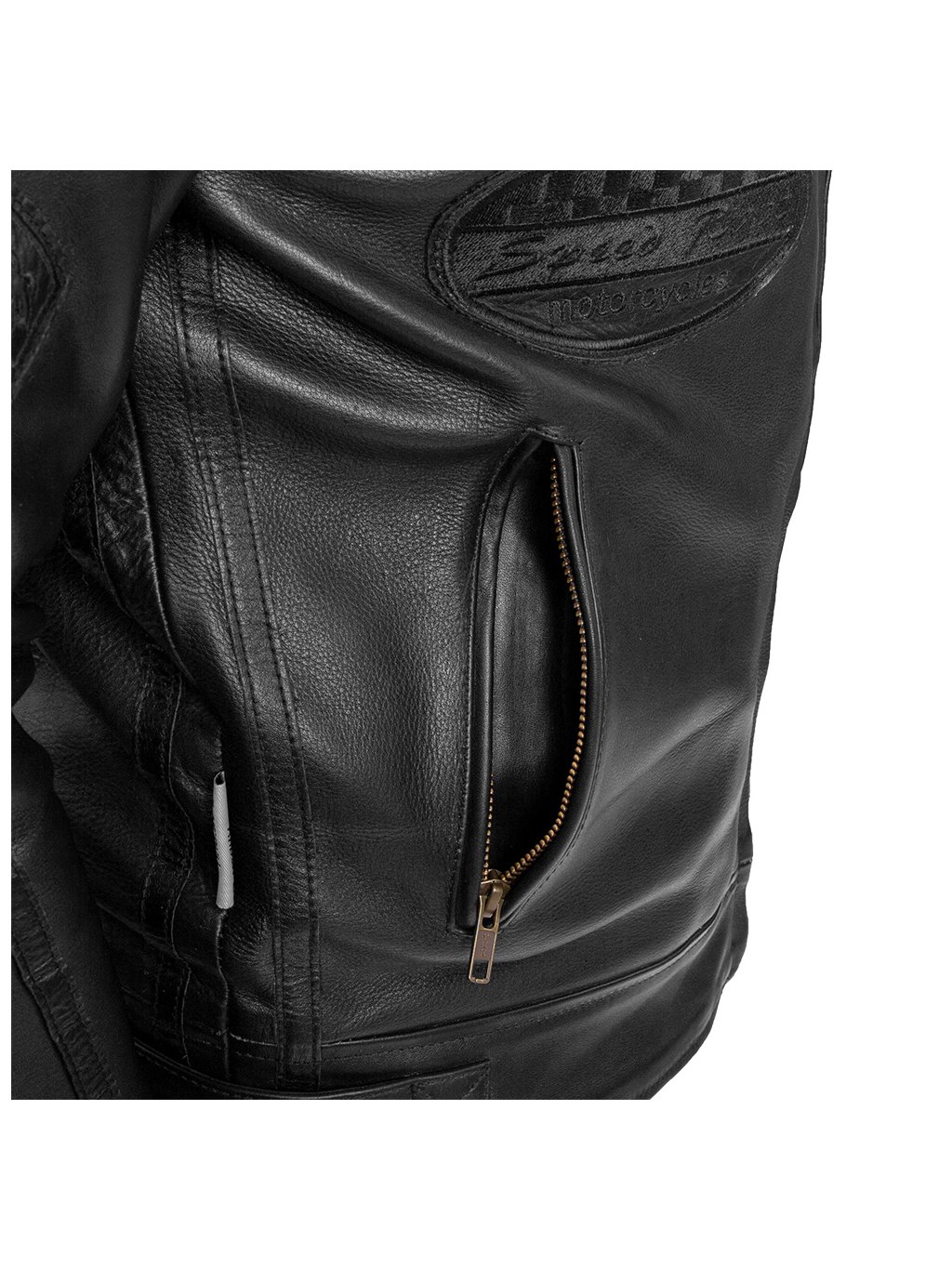 Ergonomický střih bundy zaručuje komfort v jakékoliv jízdní pozici. Navíc díky nastavitelným popruhům v pase a na koncích rukávů jí lze vhodně přizpůsobit a tak bunda dokonale sedne. Je vyrobena z krásně měkké, poddajné jehněčí kůže. Spolu s odnímatelnou vnitřní polyesterovou podšívkou nabízí příjemný pocit a vysokou míru pohodlí i zateplení. Praktičnost bundy doplňují 4 přední a 4 vnitřní kapsy (z toho 2 na odnímatelné vložce) na doklady, drobnosti a další náležitosti.