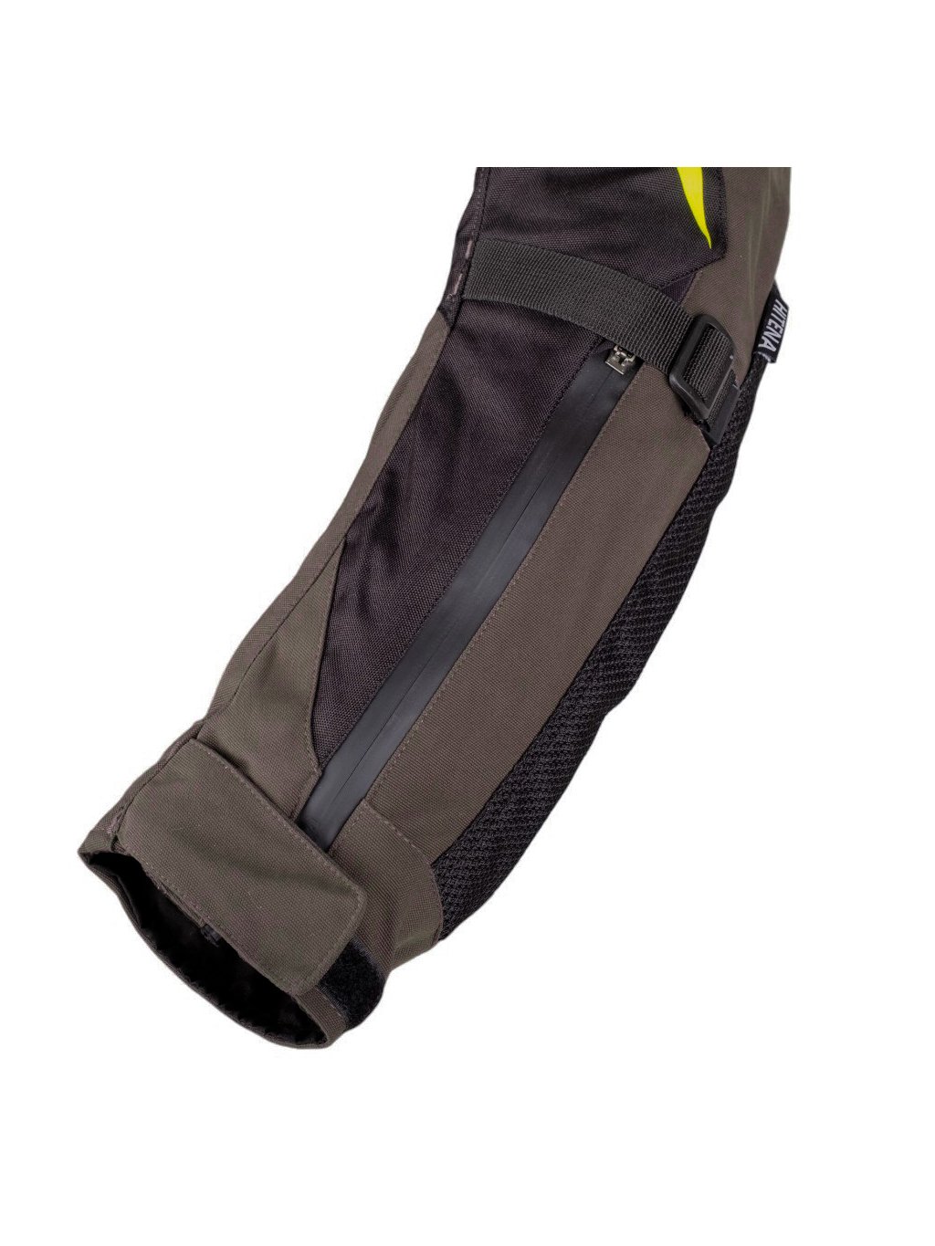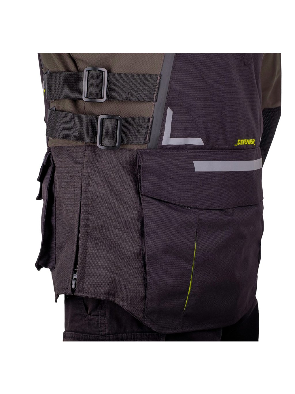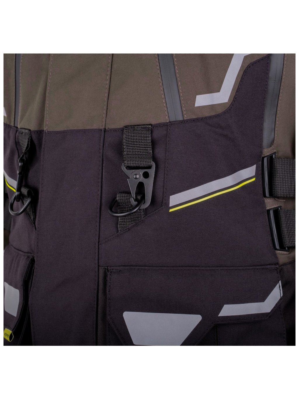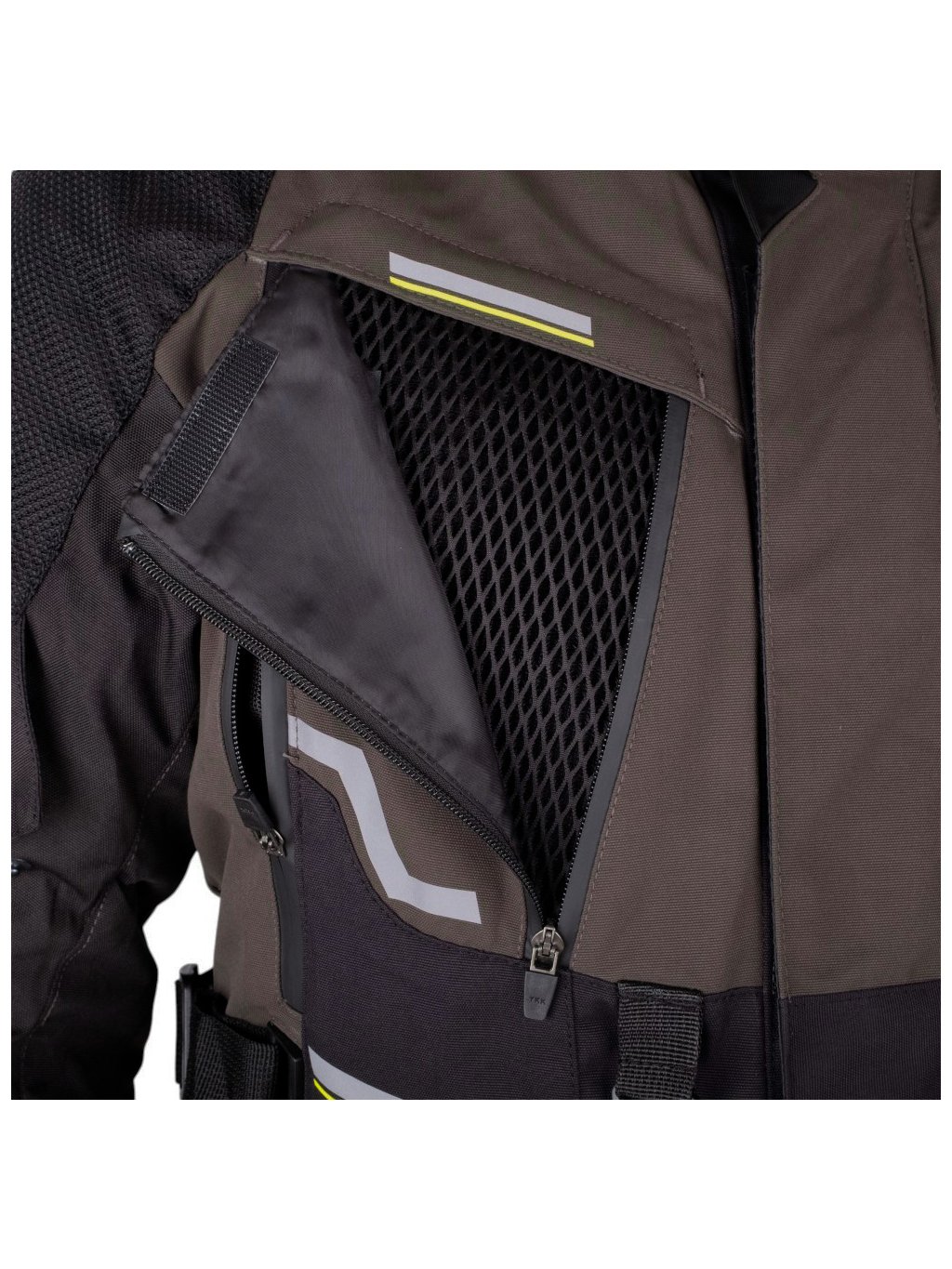 O vaši bezpečnost se starají vyjímatelné CE protektory s vyšší úrovní ochrany (level 2) na nejdůležitějších místech – lokty, ramena a záda. K tomu přispívá i odolný vnější materiál Tactel® 650D, doplněný o oděruvzdorný materiál Hitena® a polyester Oxford, který vyniká vysokou odolností, ale zároveň si zachovává příjemnou poddajnost. Pro zvýšení bezpečnosti i za snížené viditelnosti je bunda doplněna o reflexní prvky Visionight – na hrudi, kapsách, rukávech, vzadu na krku i v oblasti beder.