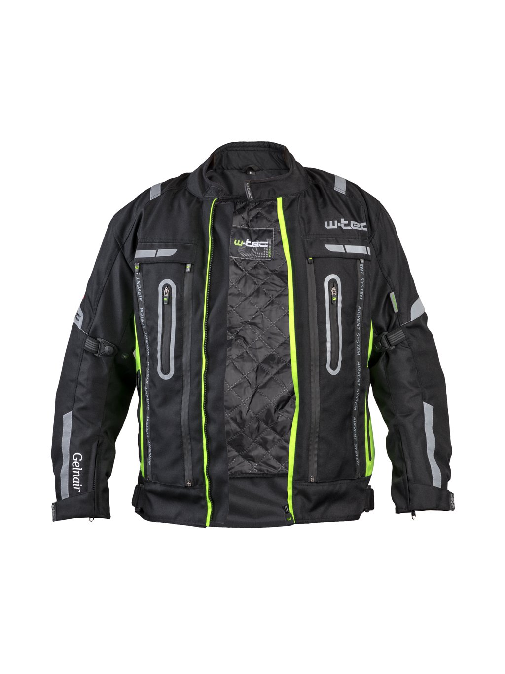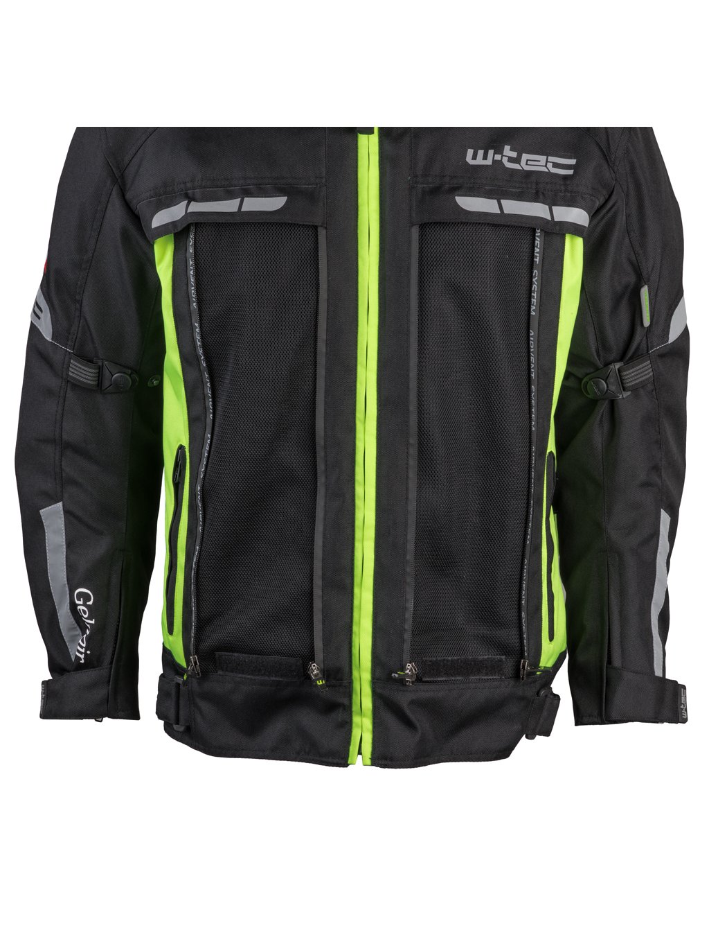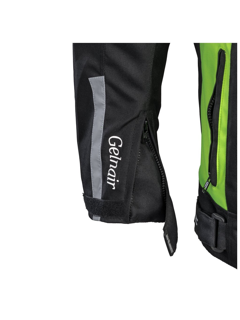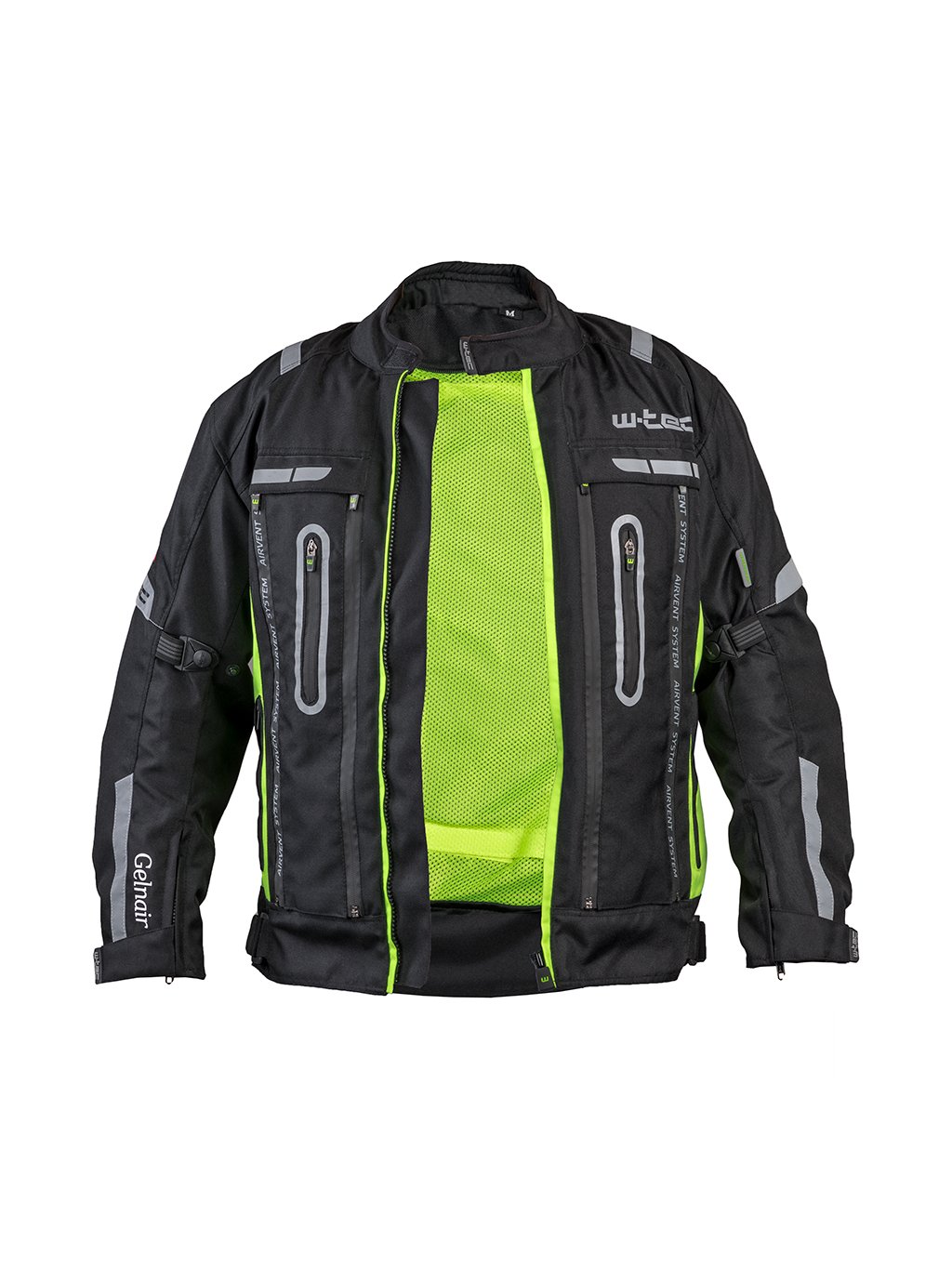 Moto bunda W-TEC Gelnair je bohatě ventilovaná bunda, která je vyrobena z prvotřídních materiálů. Její kritická dopadová místa (záda, lokty a ramena) jsou vybavena certifikovanými vyjímatelnými pryžovými chrániči s úrovní ochrany 2. Vnější část bundy je vyrobena z odolného polyesterového materiálu doplněného o reflexní prvky Visionight, které zvyšují viditelnost ve tmě či za zhoršených světelných podmínek a výrazně tak zlepšují pasivní bezpečnost jezdce. Bunda je déle tvořena i fluo zelenými částmi, takže jako taková je opravdu nepřehlédnutelná.