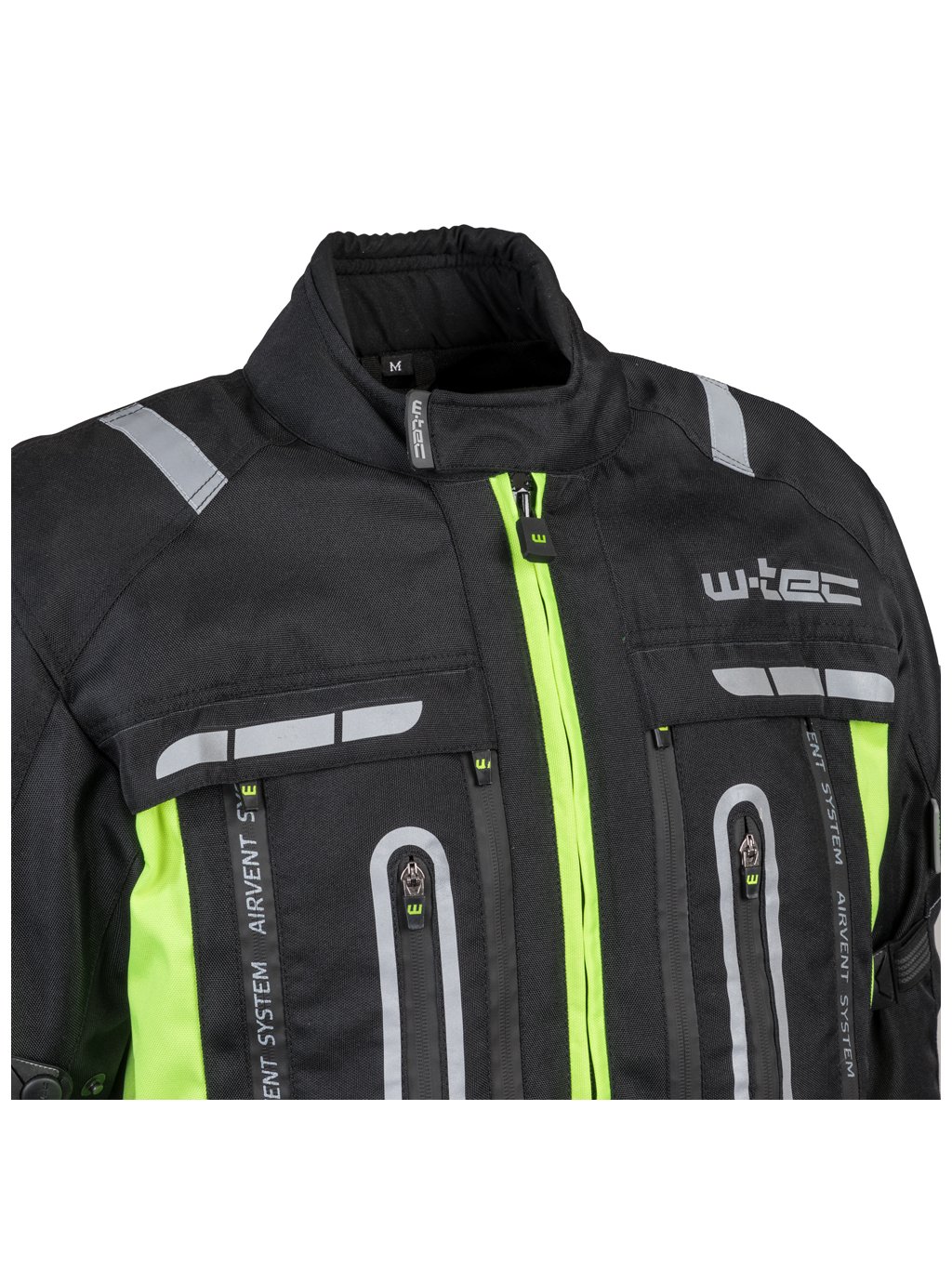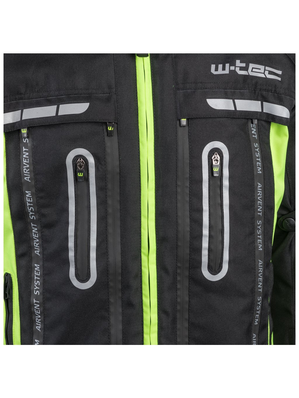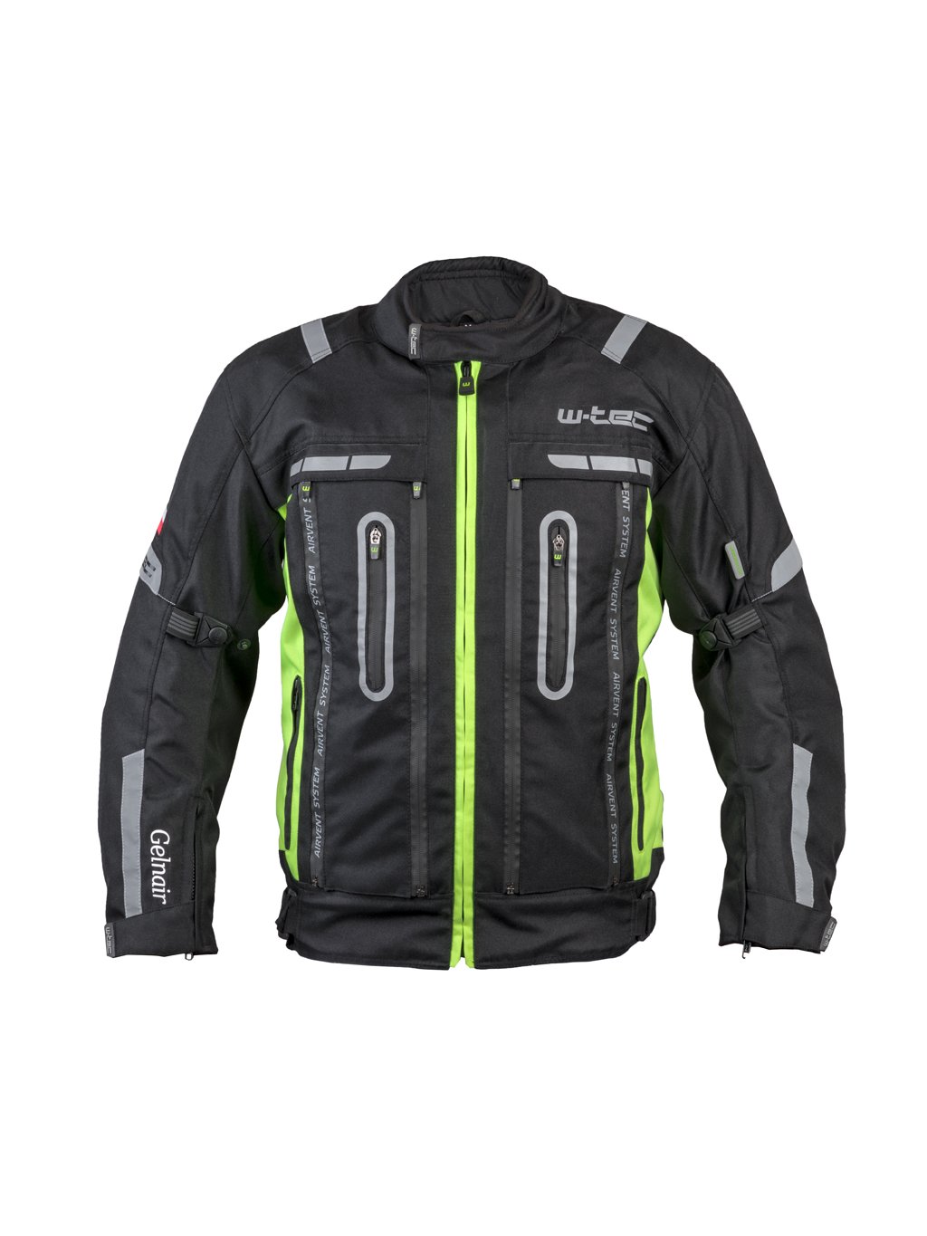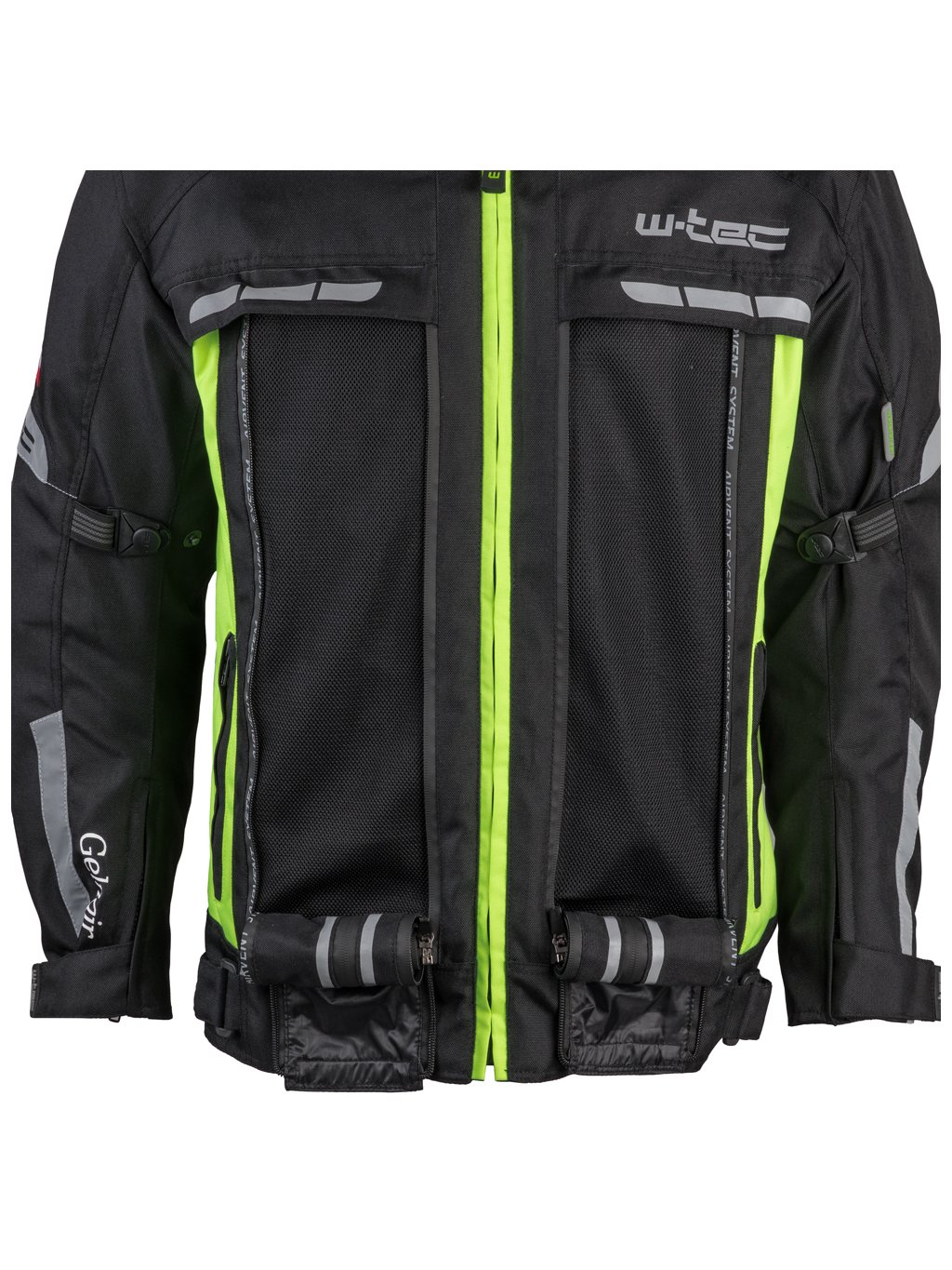 Moto bunda W-TEC Gelnair je bohatě ventilovaná bunda, která je vyrobena z prvotřídních materiálů. Její kritická dopadová místa (záda, lokty a ramena) jsou vybavena certifikovanými vyjímatelnými pryžovými chrániči s úrovní ochrany 2. Vnější část bundy je vyrobena z odolného polyesterového materiálu doplněného o reflexní prvky Visionight, které zvyšují viditelnost ve tmě či za zhoršených světelných podmínek a výrazně tak zlepšují pasivní bezpečnost jezdce. Bunda je déle tvořena i fluo zelenými částmi, takže jako taková je opravdu nepřehlédnutelná.