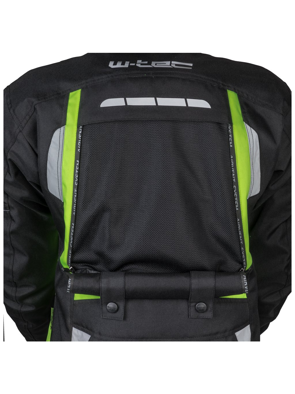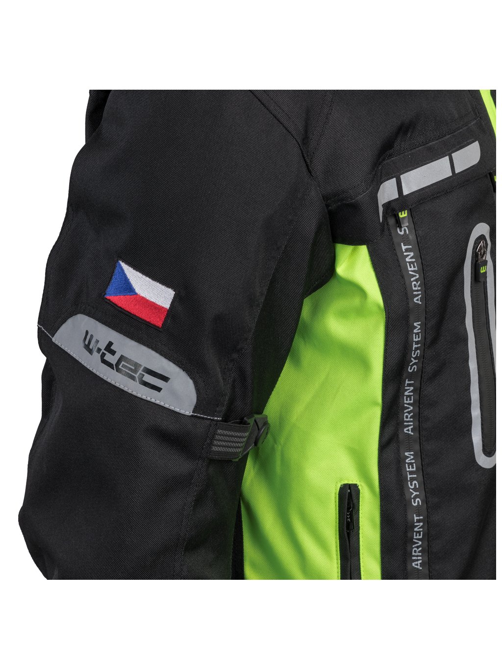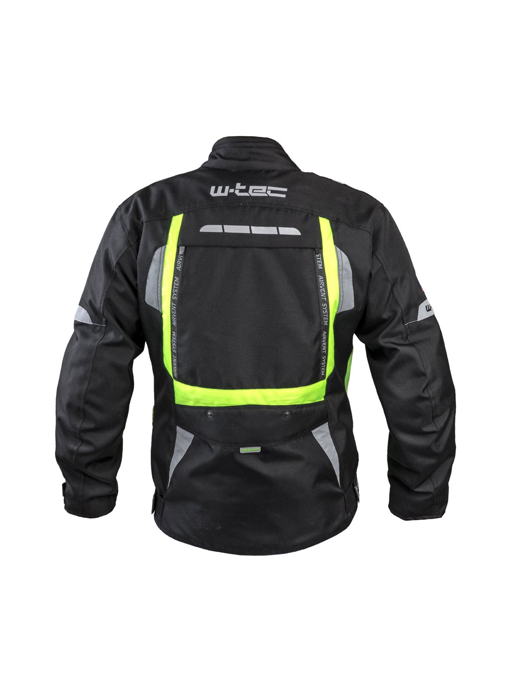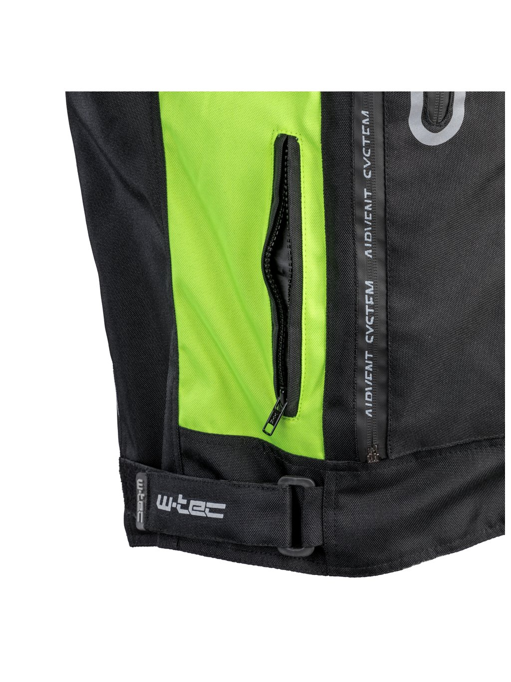 Moto bunda W-TEC Gelnair je bohatě ventilovaná bunda, která je vyrobena z prvotřídních materiálů. Její kritická dopadová místa (záda, lokty a ramena) jsou vybavena certifikovanými vyjímatelnými pryžovými chrániči s úrovní ochrany 2. Vnější část bundy je vyrobena z odolného polyesterového materiálu doplněného o reflexní prvky Visionight, které zvyšují viditelnost ve tmě či za zhoršených světelných podmínek a výrazně tak zlepšují pasivní bezpečnost jezdce. Bunda je déle tvořena i fluo zelenými částmi, takže jako taková je opravdu nepřehlédnutelná.