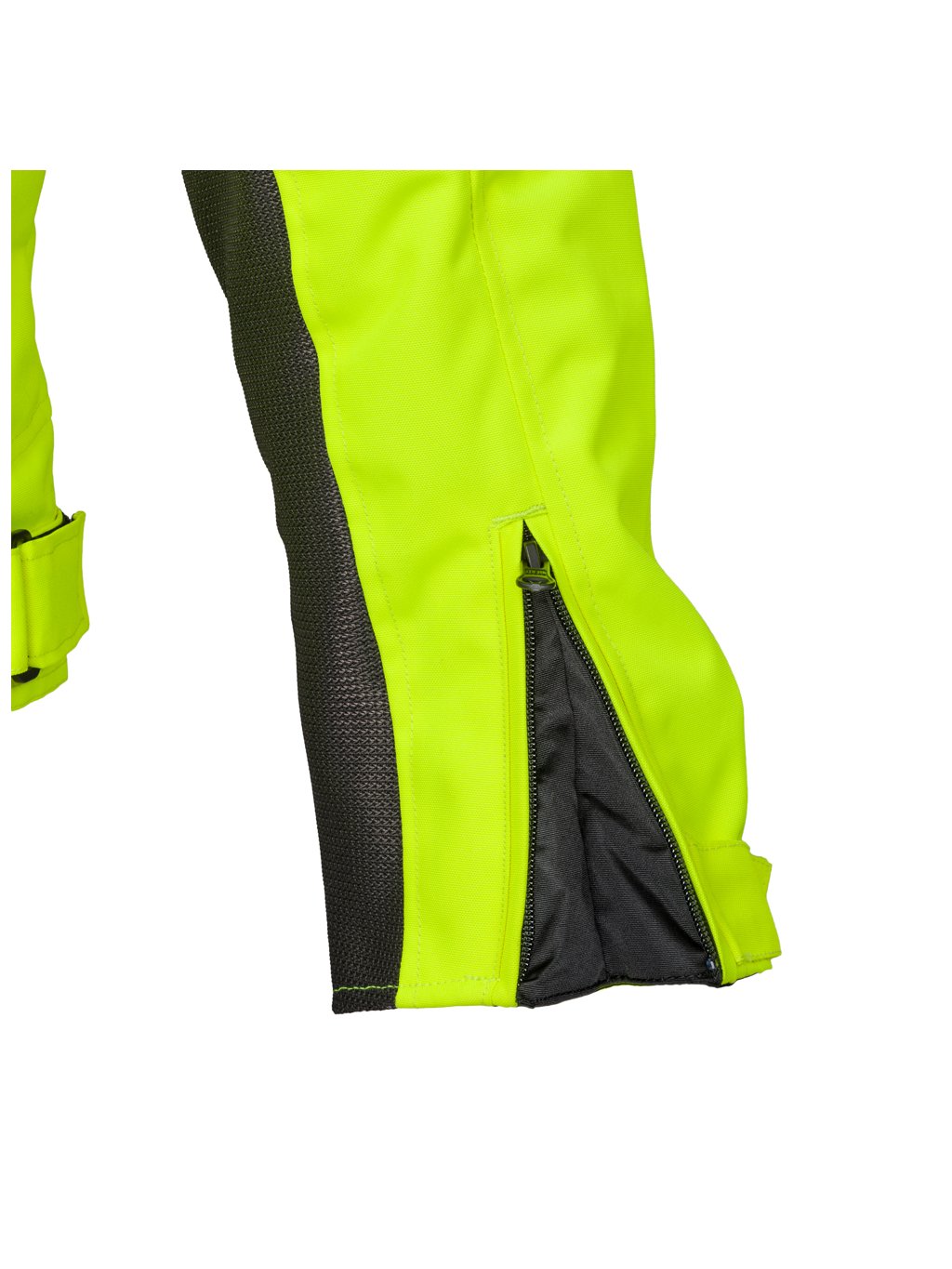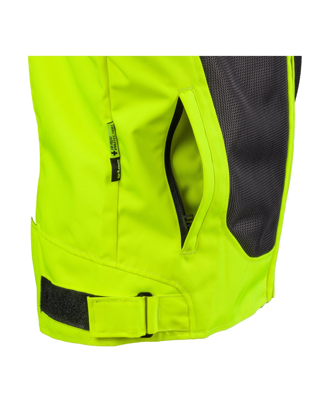 Jednou z jejich hlavních výhod totiž jsou rozsáhlé přední i zadní prodyšné panely. Dále pak i vnitřní podšívka, která je z jemné a komfortní síťoviny vyrobené speciálními procesy tak, aby působila co nejpříjemněji a nelepila na tělo. Díky tomu může skrz bundu snadno pronikat svěží vzduch, což přijde vhod především v horkých letních měsících. Tyto panely jsou provedeny v sedě barvě, zatímco zbytek bundy je zářivě žlutozelený, takže jako taková je bunda opravdu nepřehlédnutelná. K tomu lze bundu v deštivých dnech vybavit odnímatelnou nepromokavou membránou.