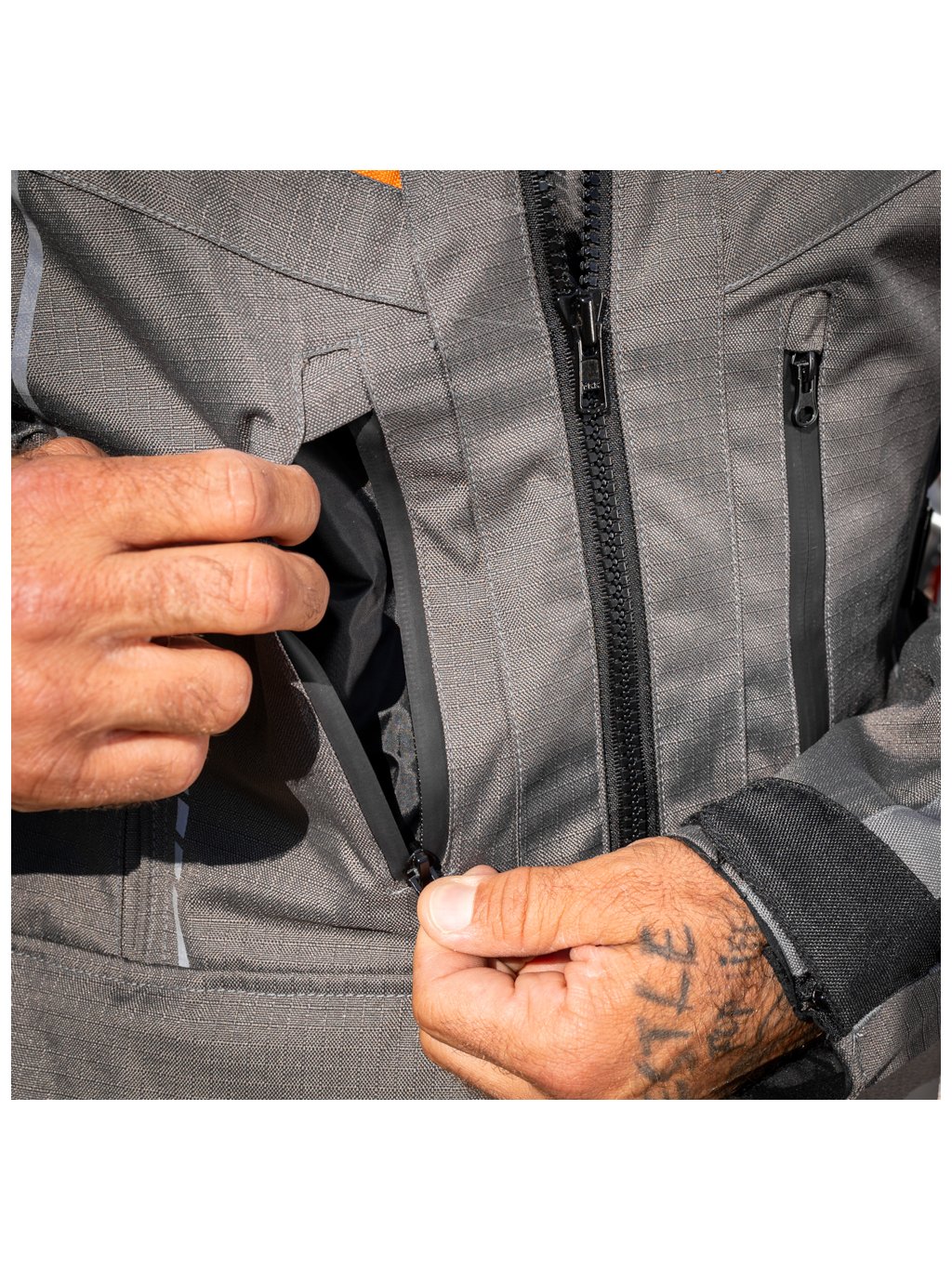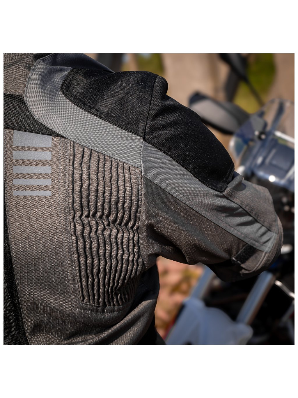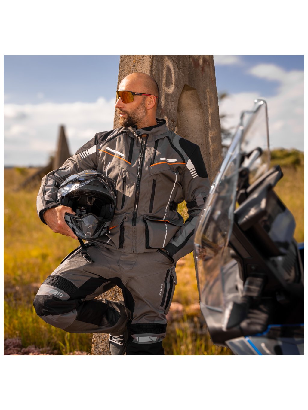 Bunda má hned několik vychytávek, které na cestách oceníte. Na ramenech a loktech se o Vaši bezpečnost postarají velmi lehké a flexibilní certifikované chrániče s vyšší úrovní ochrany (level 2), které na sobě téměř necítíte. Nechybí odolná vnější tkanina Ripstop Cordura kombinovaná s polyesterem o hustotě 600D. Ripstop úprava zajišťuje maximální ochranu proti roztržení či opotřebení a zároveň je pohodlná pro nošení. Na kritických místech Vás pak před odřením chrání zesílený materiál. Samozřejmostí je zabudovaná voděodolná a prodyšná membrána, náhlé přívaly deště či průtrže mračen tak nebudou problém.