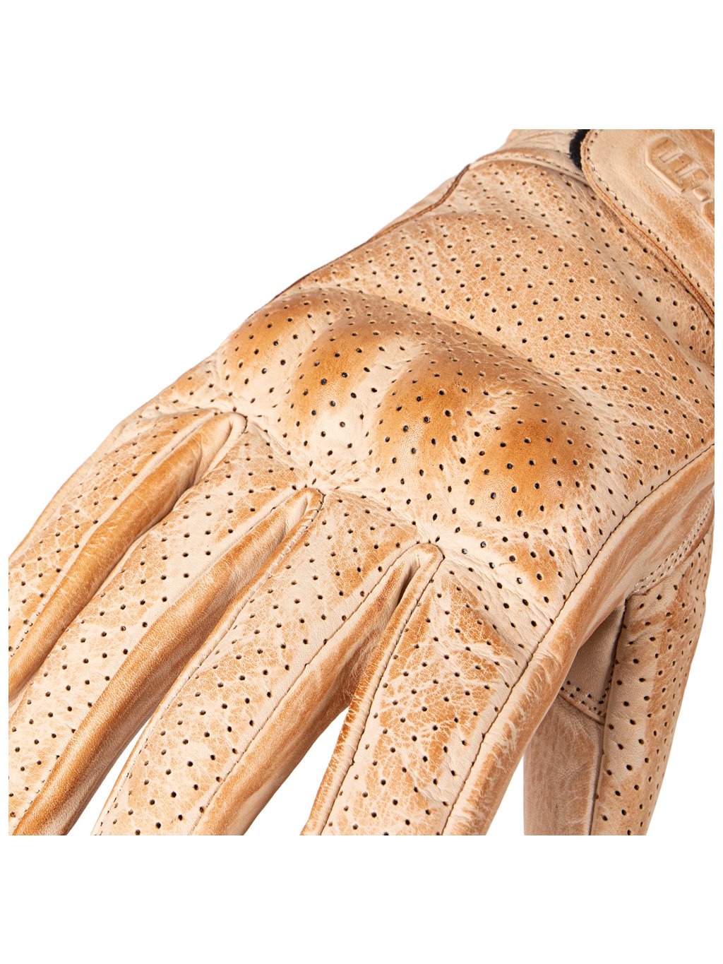 Kožené moto rukavice W-TEC Modko jsou parádní retro "stylovky", ideální na choppery, cruisery a další typy motocyklů, se kterými se rádi vracíte do starých dobrých časů. Záprstní klouby chrání robustní, ale skrytý protektor, který tak ručí za maximální bezpečí při jízdě. Krom vzhledově zajímavé textury a úpravy kůže, která společně se střihem rukavic navozuje zmíněný vintage požitek, je tak i dalším vcelku výrazným designovým prvkem.