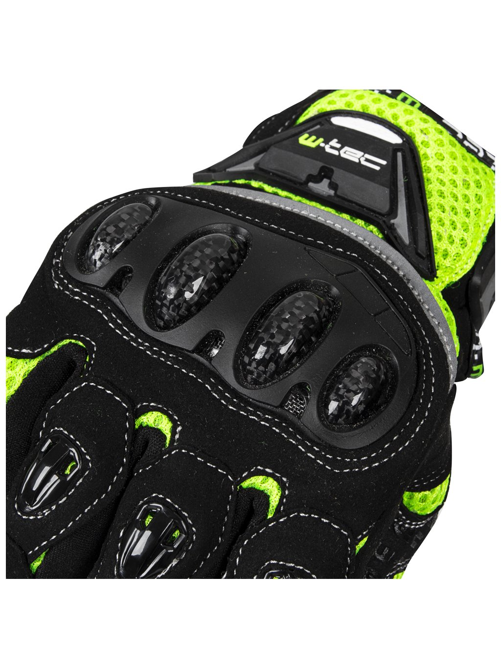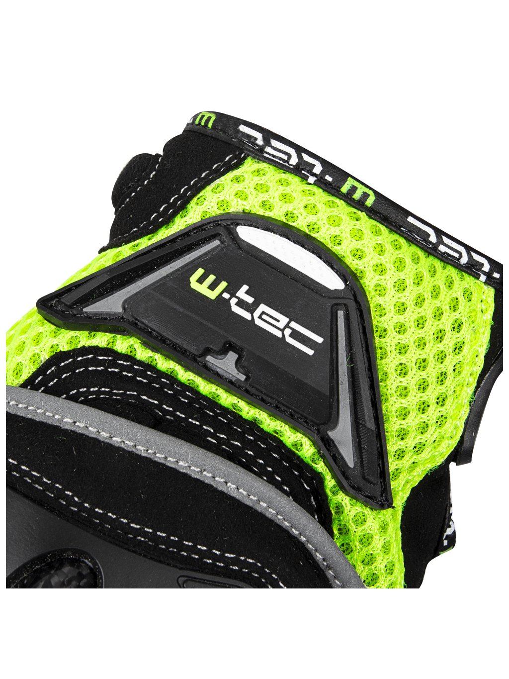 Moto rukavice W-TEC Upgear jsou díky panelům ze síťoviny a ventilačním průduchům skvěle prodyšné rukavice na motokros, čtyřkolky nebo enduro. Bezpečnost při jízdě zajišťují karbonovo-aramidovými protektory na záprstních kloubech spolu s dalšími panely na hřbetu rukou. Značná část rukavic je vyrobena z protiskluzového materiálu Amara, který je silný, pružný a svými vlastnostmi připomíná syntetickou kůži či semiš. Pro navýšení protiskluzného efektu jsou navíc rukavice přímo na dlani opatřeny silikonovou aplikací. Celkovou bezpečnost pak doplňují reflexní prvky.