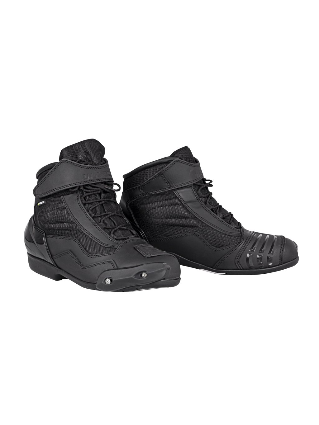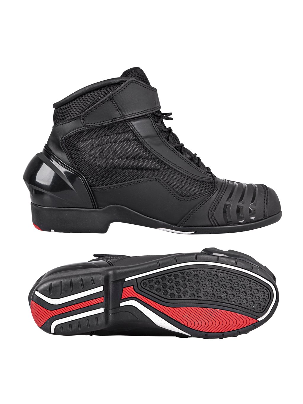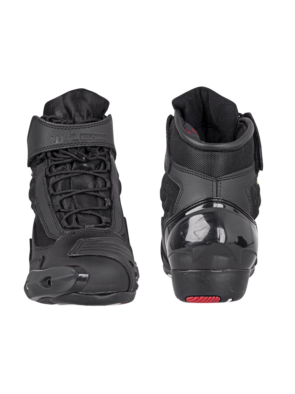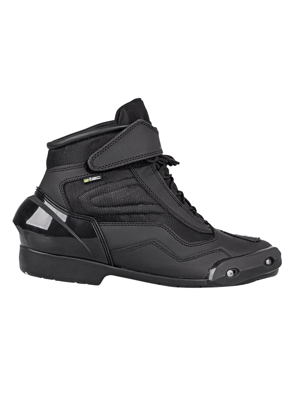 Moto boty W-TEC Bolter jsou nižší kotníkovou obuví vyrobenou z kombinace kůže a nylonové textilie určenou na cestovní motorku či skútr. Na první pohled zaujme elegantním sportovním tvarem a výraznou, robustní ochranou paty. Dokonce nechybí ani vyměnitelné slidery, takže můžete dát i zatáčkám a serpentinám co proto. Samozřejmostí jsou také další vyztužené prvky na ostatních strategických částech boty.