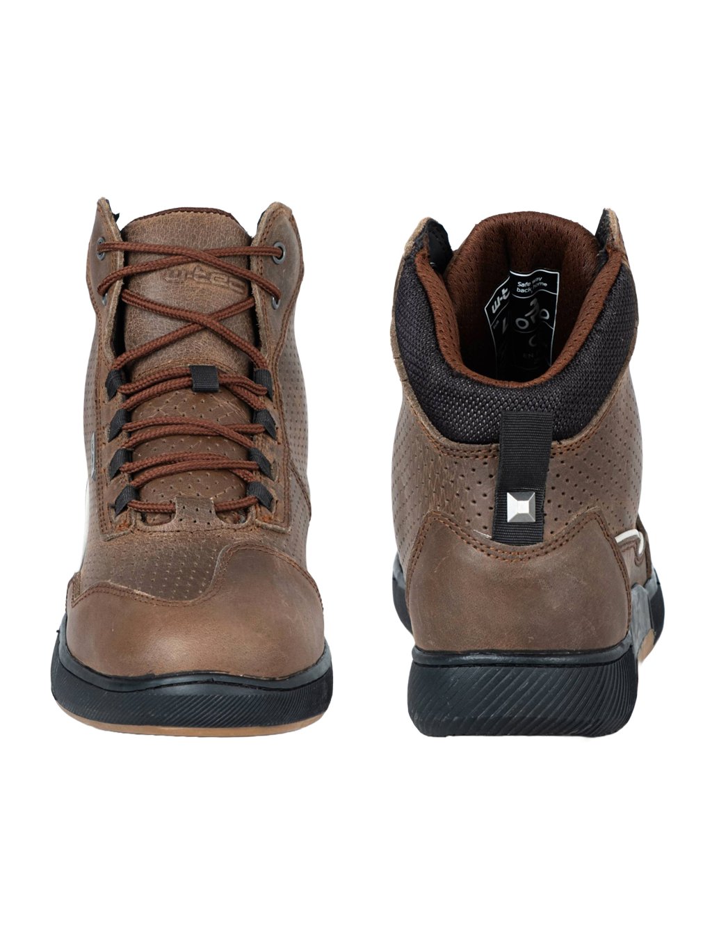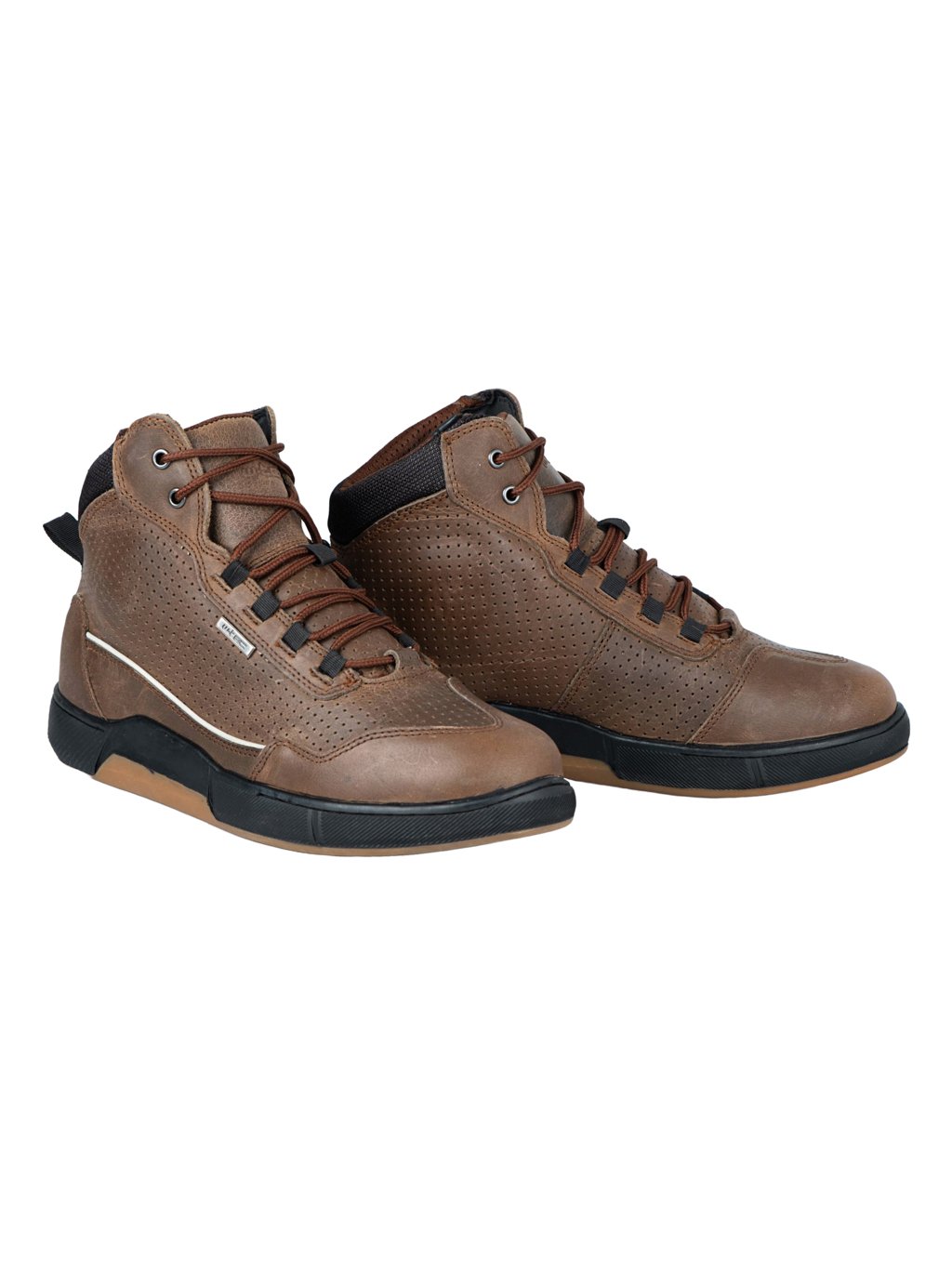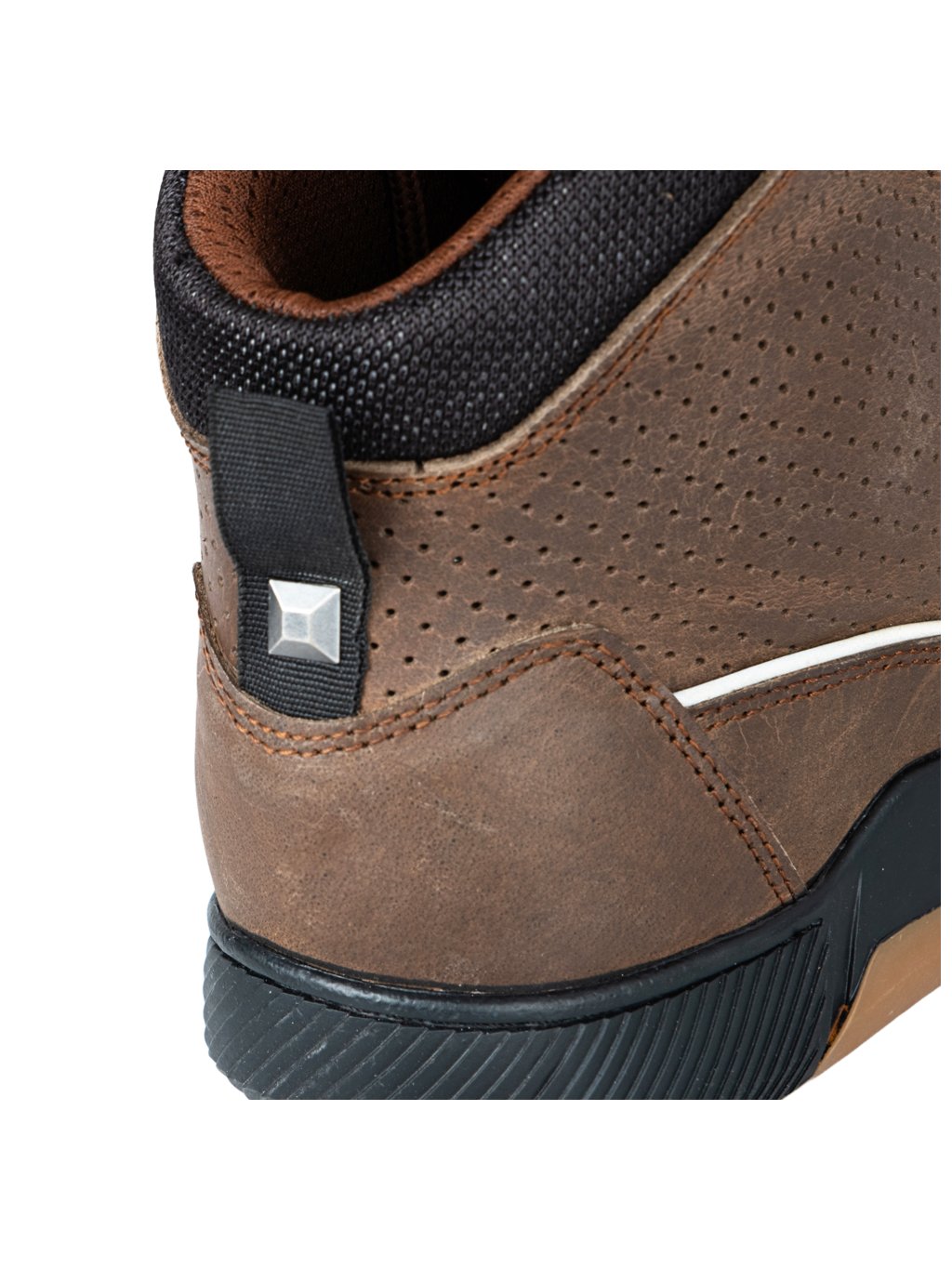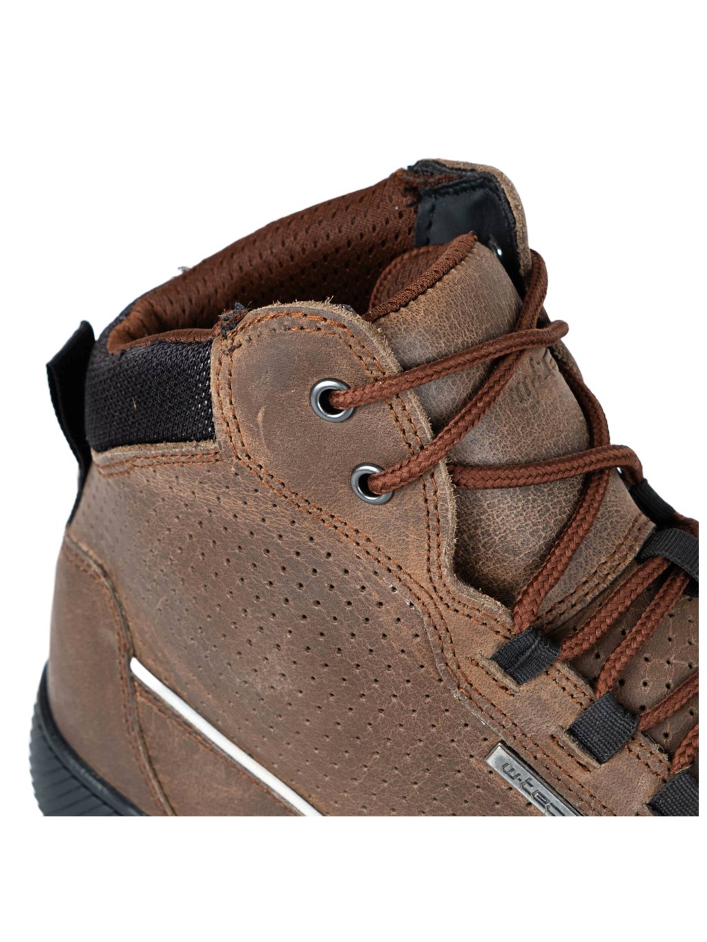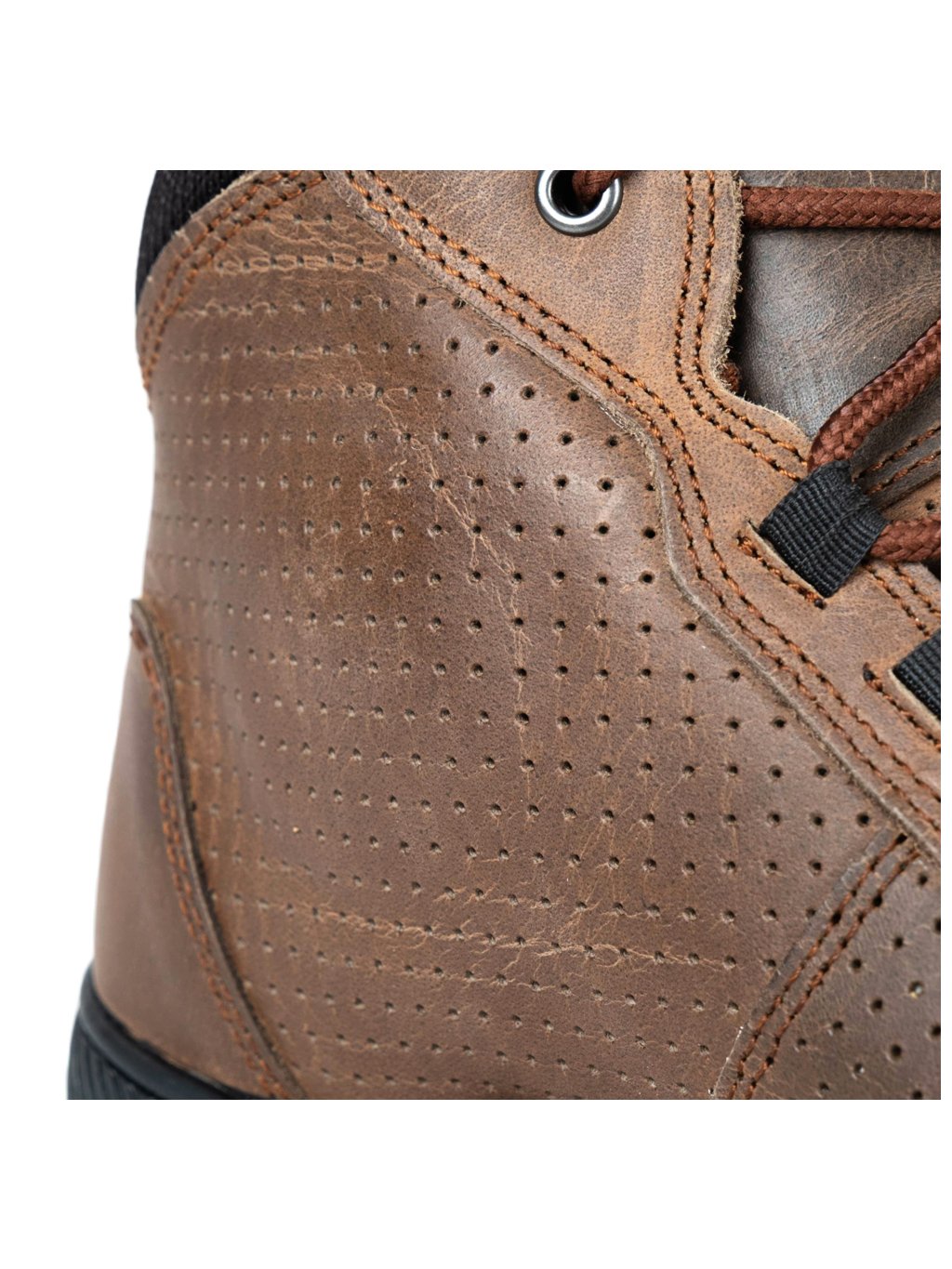 Moto boty W-TEC Colton vypadají jako klasické kotníkové tenisky, ale skrývají v sobě všechny důležité prvky pro bezpečnou jízdu. Díky kůži o tloušťce 1,8–2 mm a dvojitému prošívání jsou pevné a odolné, zatímco perforovaný jazyk a boční ventilační otvory udrží nohu v pohodě i během delších vyjížděk. Design doplňuje decentní detail v podobě pyramidky na poutku pro snadné nazouvání.