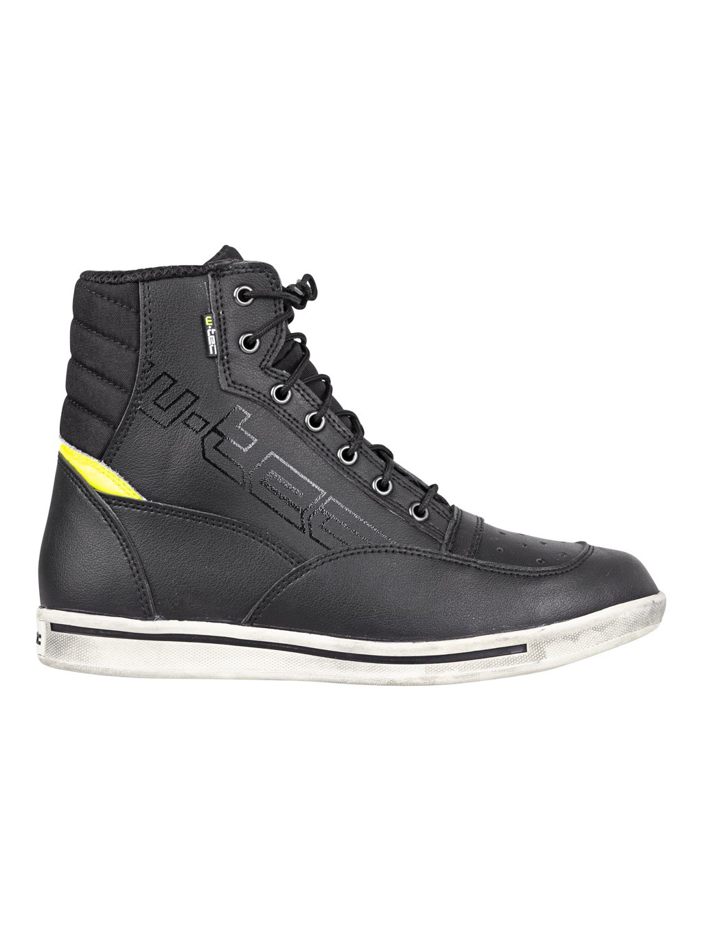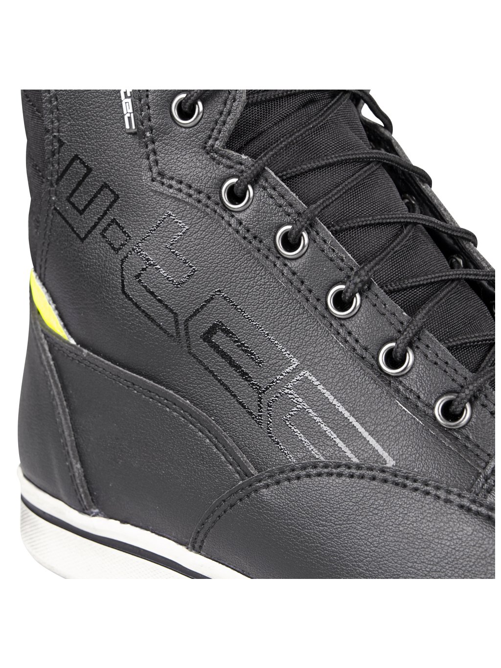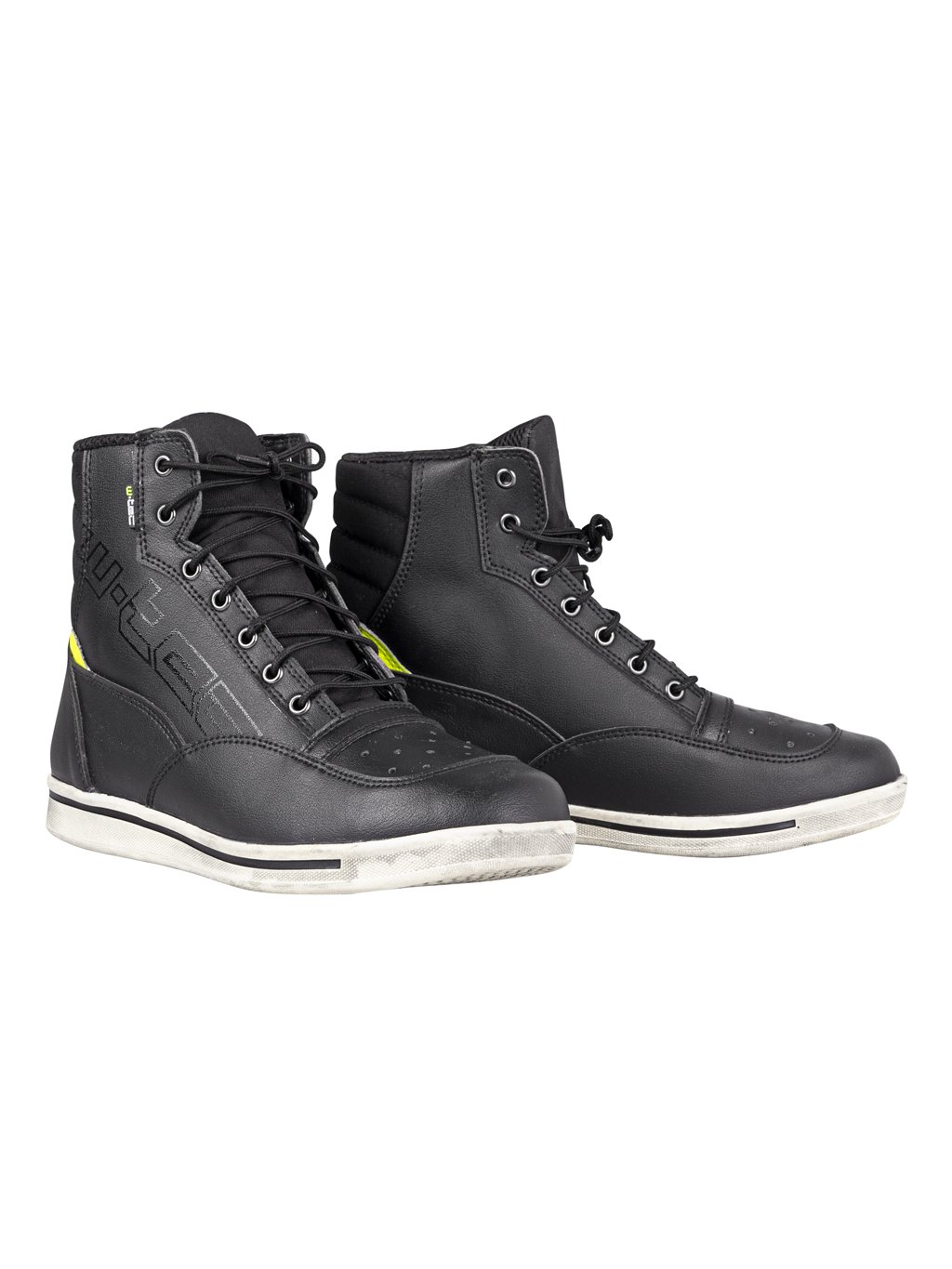 Jednoduché zapínání je provedeno na - pro tuto obuv typické - šněrování pomocí tkaniček. Použité dvojité švy podporují pevnost této obuvi a zvyšují odolnost. Podrážky jsou protiskluzové a olejivzdorné, díky měkkému došlapu pohodlné například i na procházku po městě. Moto obuv W-TEC Culabus je tak skvělým parťákem pro vaše výlety na motorce i mimo ní.