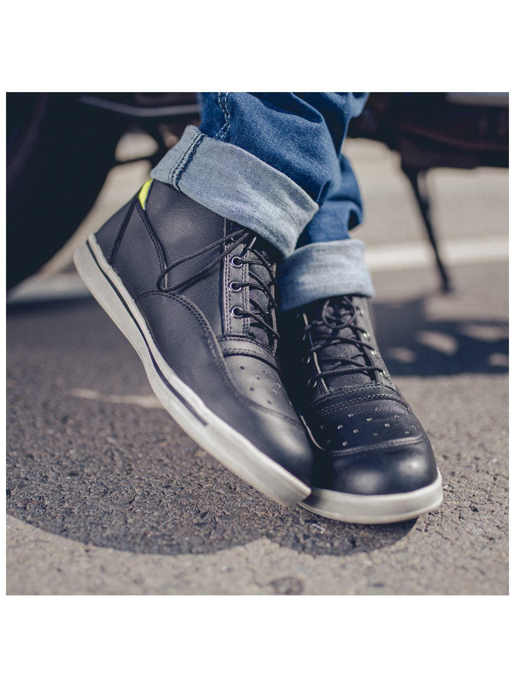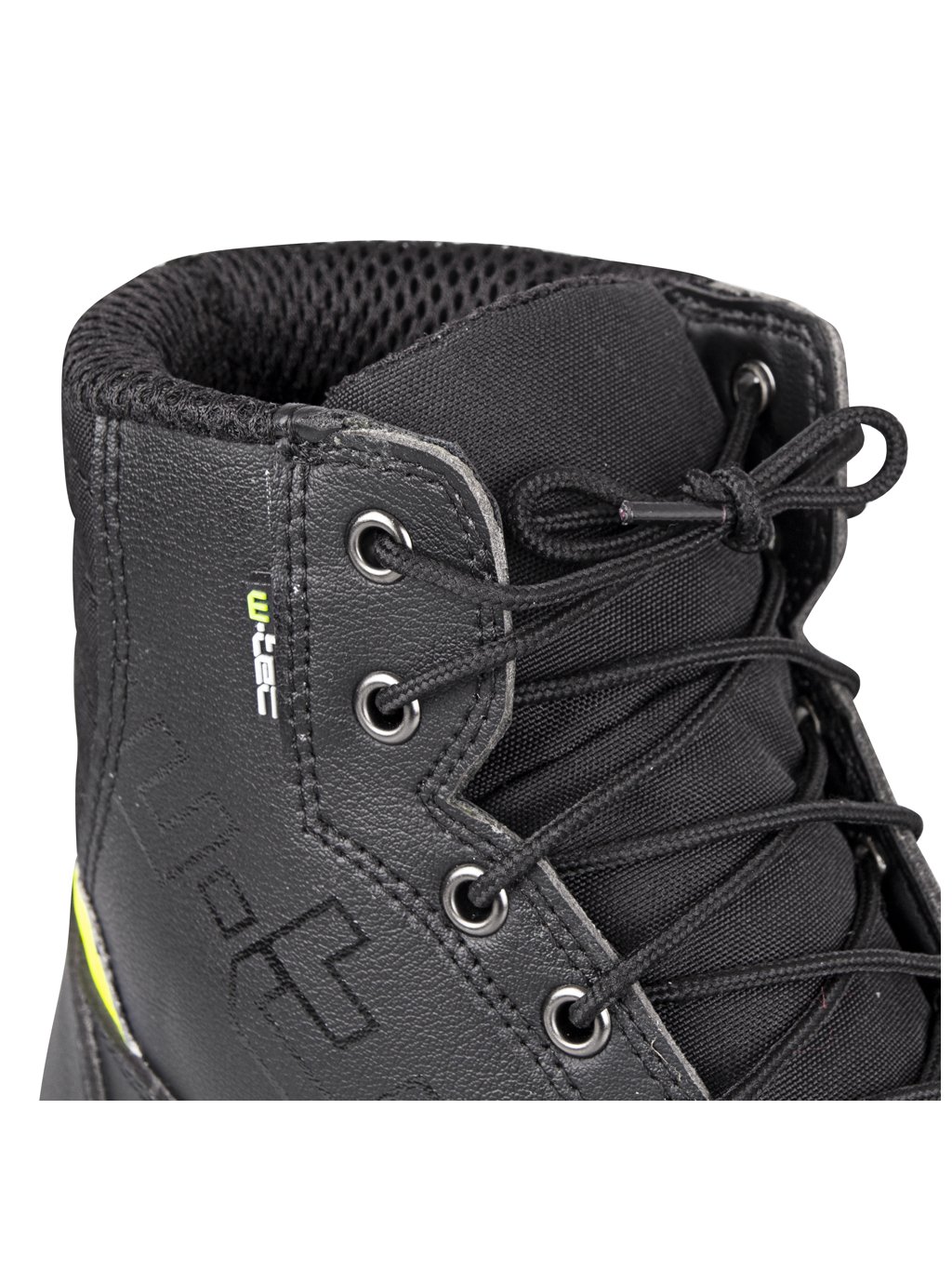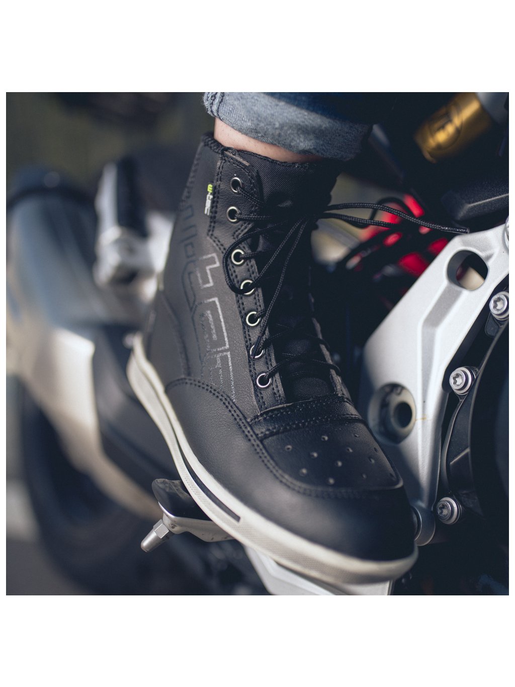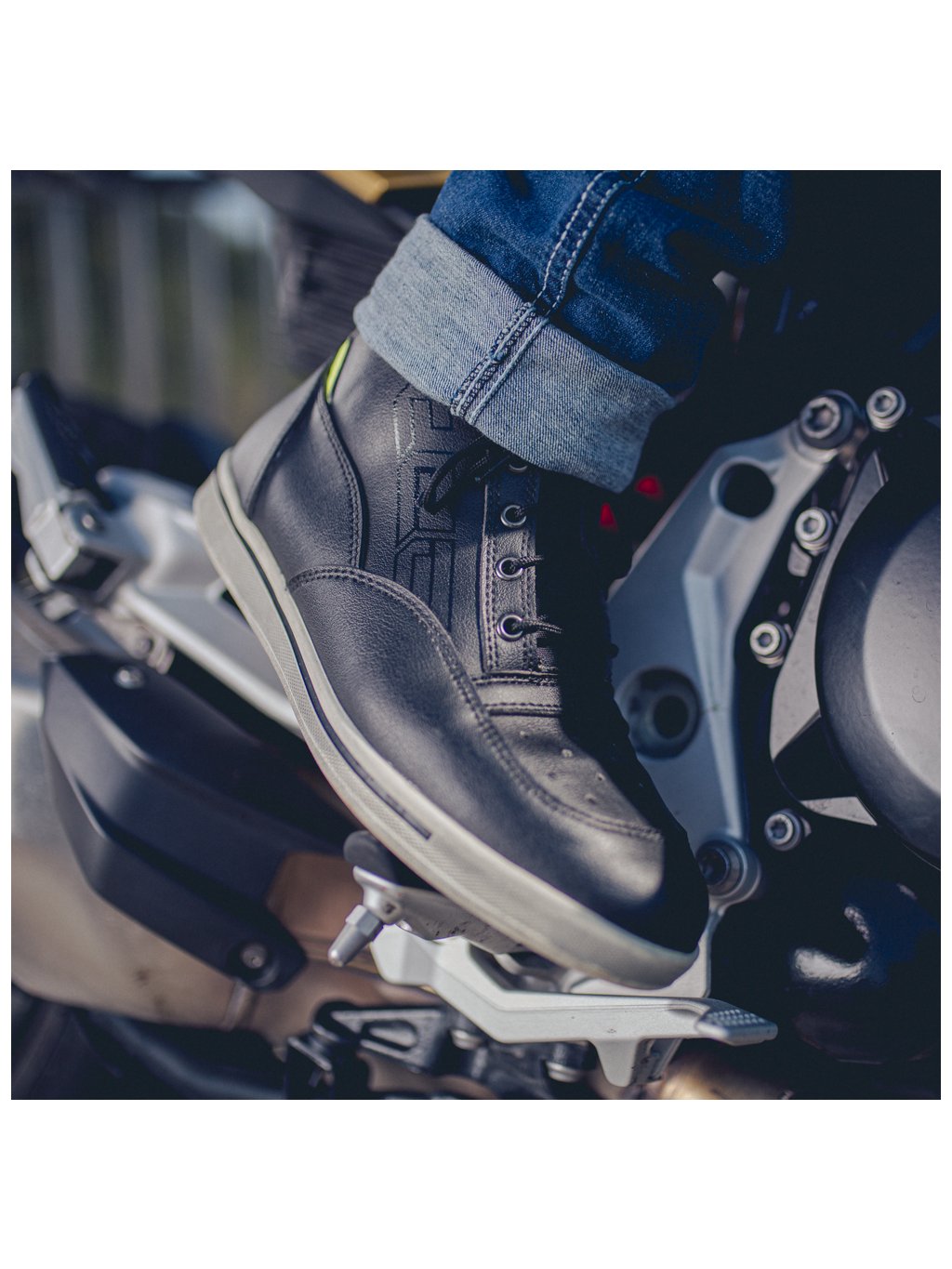 Jednoduché zapínání je provedeno na - pro tuto obuv typické - šněrování pomocí tkaniček. Použité dvojité švy podporují pevnost této obuvi a zvyšují odolnost. Podrážky jsou protiskluzové a olejivzdorné, díky měkkému došlapu pohodlné například i na procházku po městě. Moto obuv W-TEC Culabus je tak skvělým parťákem pro vaše výlety na motorce i mimo ní.