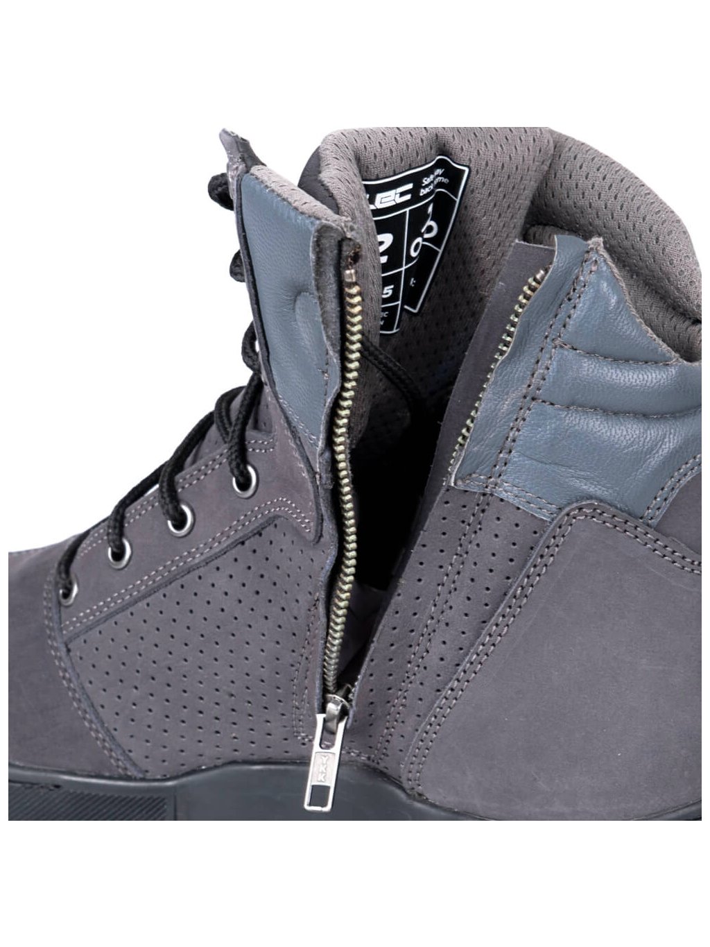 Na motorce oceníte zesílení v oblasti řadičky, ochranu kotníků, vyztuženou špičku a patu i reflexní prvek na poutku, který zvýší vaši viditelnost. Protiskluzová gumová podrážka se pak postará o jistý krok za každého počasí. A protože obuv odpovídá standardům EN 13634, můžete se spolehnout, že styl tady jde ruku v ruce s bezpečností.