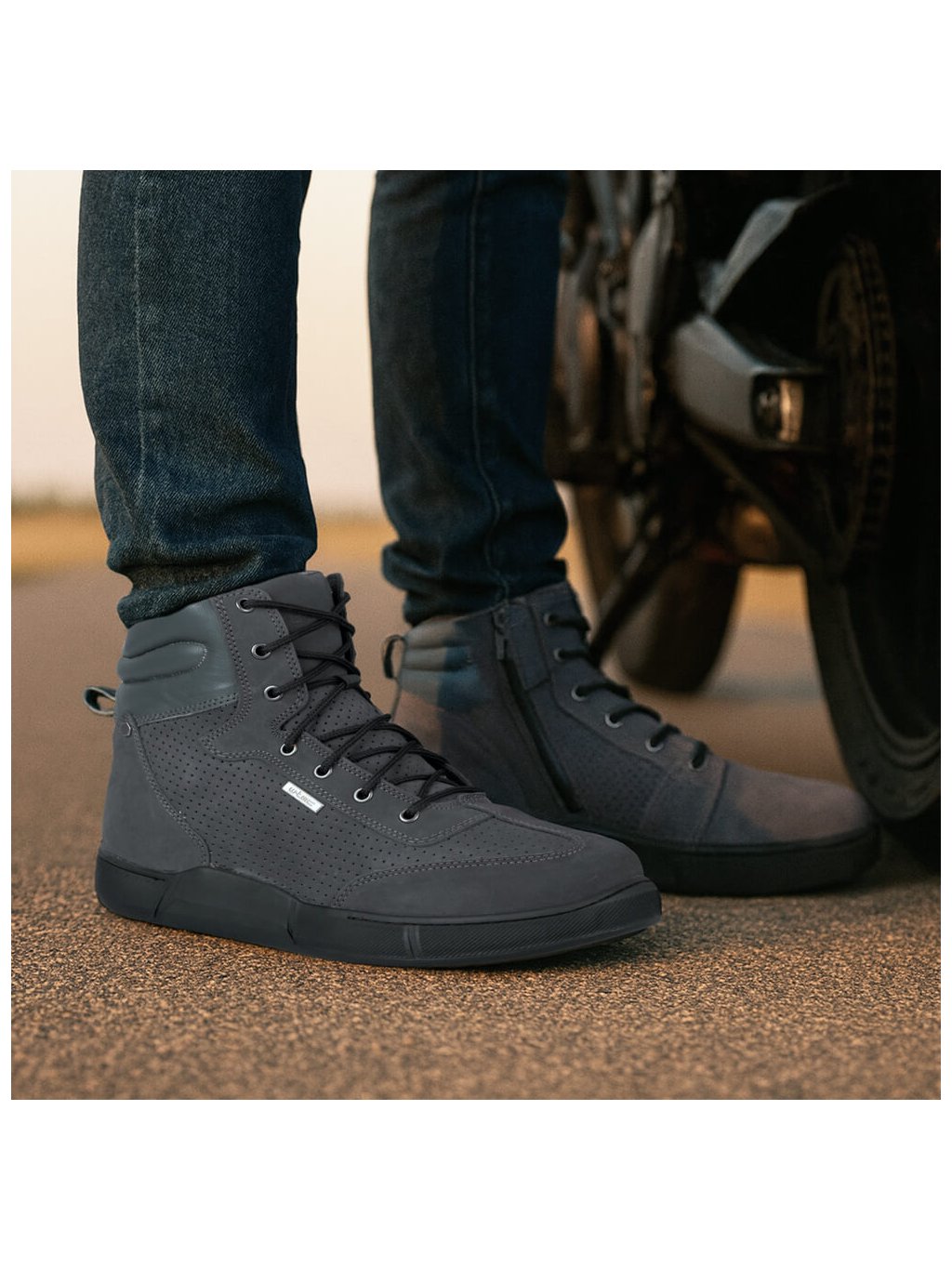Moto boty W-TEC Elton si berou to nejlepší z městského street stylu a spojují to s ochranou, kterou potřebujete v sedle. Na první pohled působí jako volnočasové kotníkové tenisky, ale uvnitř skrývají poctivou motorkářskou výbavu. Nubuková kůže o tloušťce 1,8–2 mm spolu s dvojitým prošíváním zaručuje odolnost, zatímco měkké polstrování se postará o pohodlí při každém kroku.