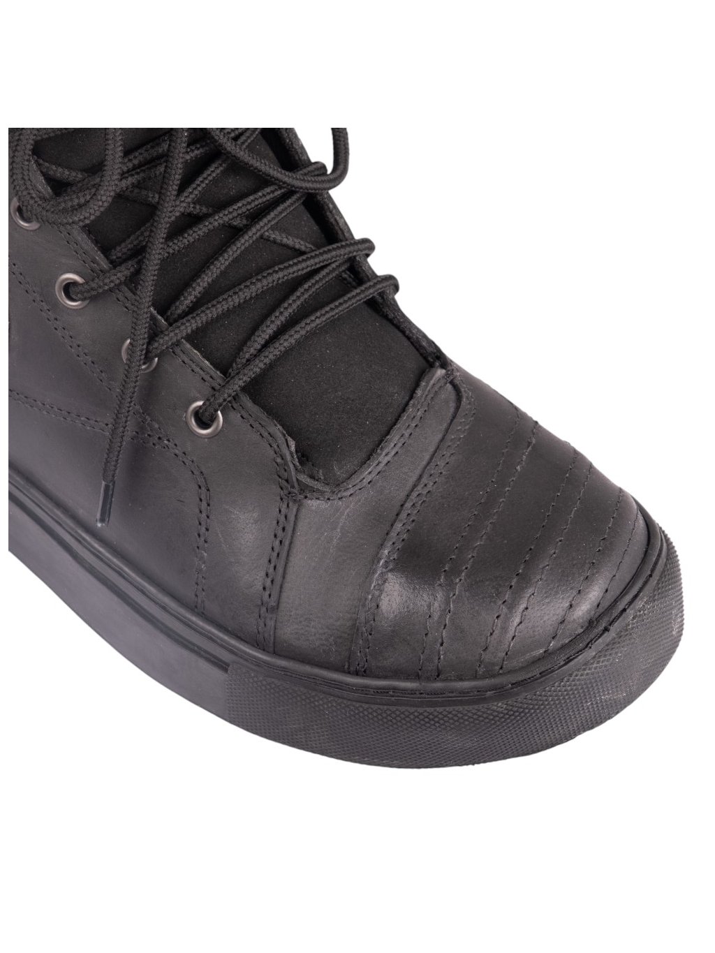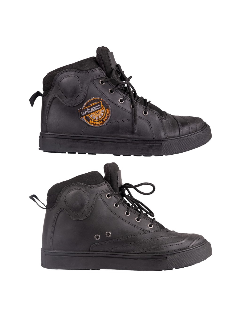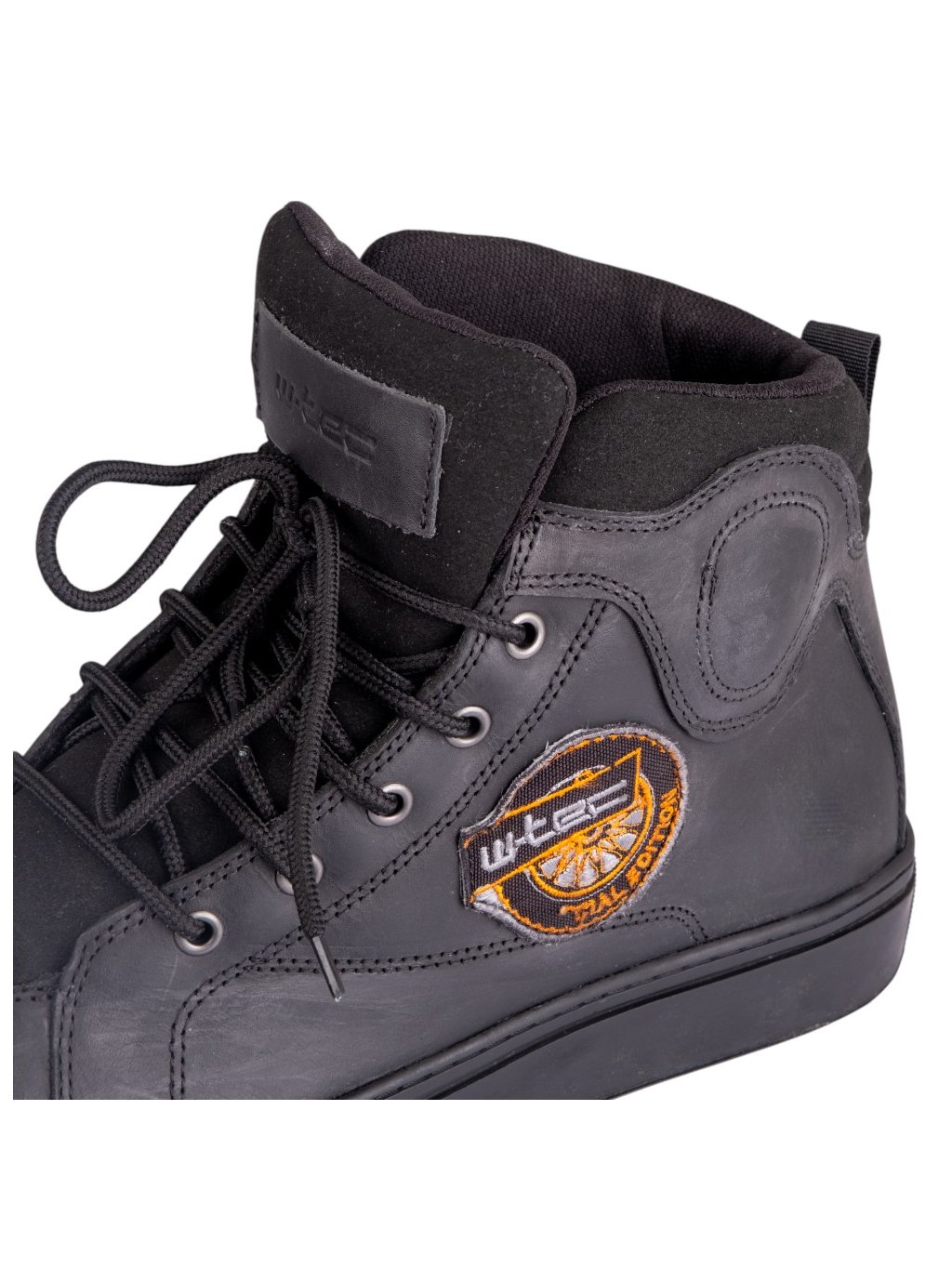 Jednoduché zapínání je provedeno na - pro tuto obuv typické - šněrování pomocí tkaniček. Použité dvojité švy podporují pevnost této obuvi a zvyšují odolnost. Podrážky jsou protiskluzové a olejivzdorné, díky měkkému došlapu pohodlné například i na procházku po městě. Decentní barevné zpracování a přítomnost nášivky pak těmto botám přináší jemný retro feeling. Moto obuv W-TEC Perpetuals je tak skvělým parťákem pro vaše výlety na motorce i mimo ní.