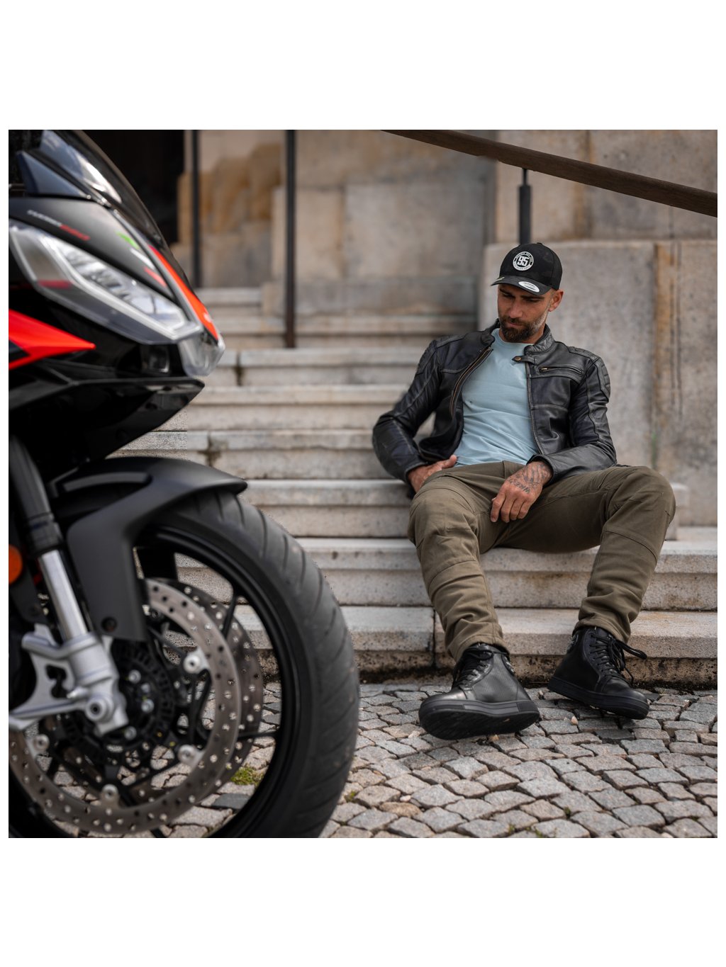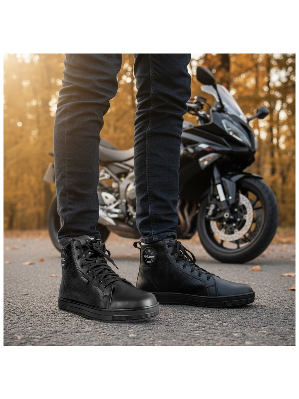 Nenechte se zmást vzhledem - tyhle boty možná připomínají pohodové tenisky, ale ve skutečnosti skrývají duši skutečného ochránce. Vyrobené z kvalitní hovězí kůže o tloušťce 1,6 mm s bohatým perforováním, nabízí ideální kombinaci stylu, prodyšnosti a odolnosti. Ať už jedete na kafíčko za roh, nebo se proplétáte ucpanými ulicemi, tvoje nohy budou v suchu, pohodlí a bezpečí.