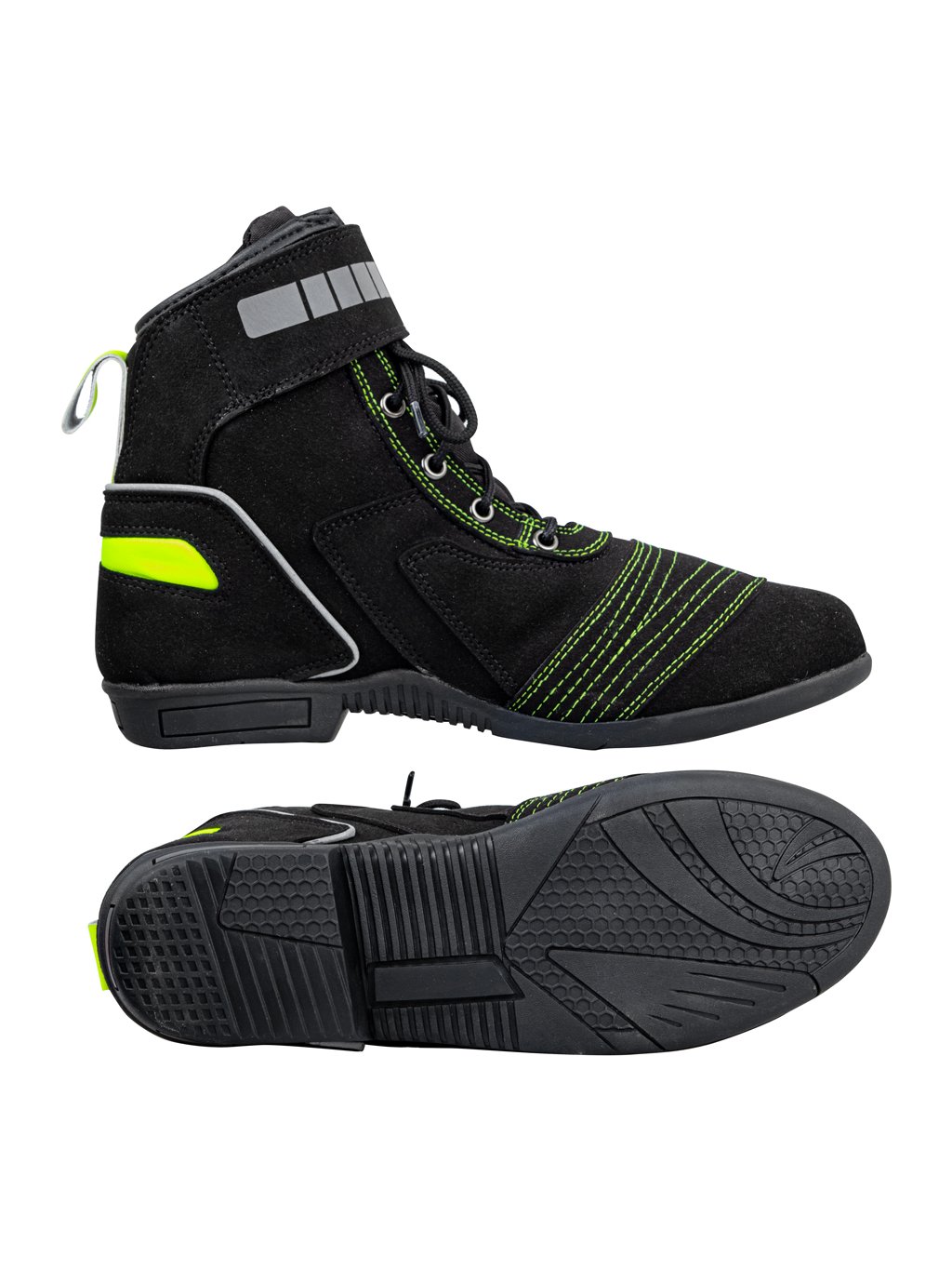 Jednoduché zapínání je provedeno na tkaničky, a je dále podpořeno popruhem na suchý zip v horní části boty. Boty se skvěle nazouvají díky přítomnosti textilního poutka na zadní straně. Použité dvojité švy podporují pevnost této obuvi a zvyšují odolnost. Podrážky jsou protiskluzové a olejivzdorné. Potěší i reflexní elementy, které tak zvýší Vaši pasivní bezpečnost především za zhoršených světelných podmínek.