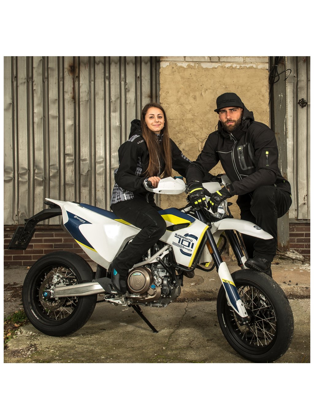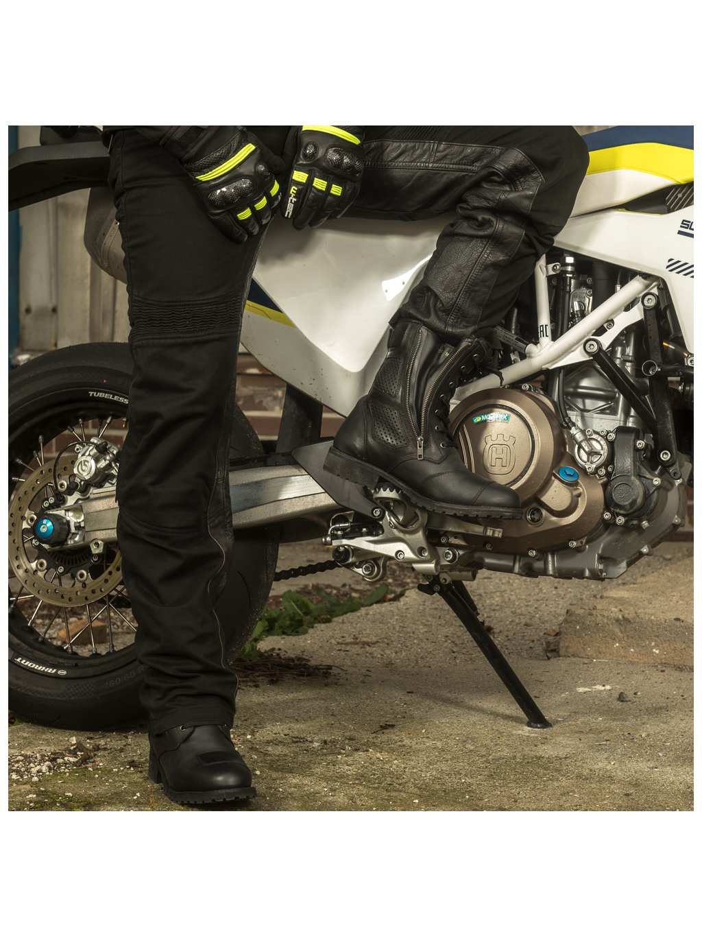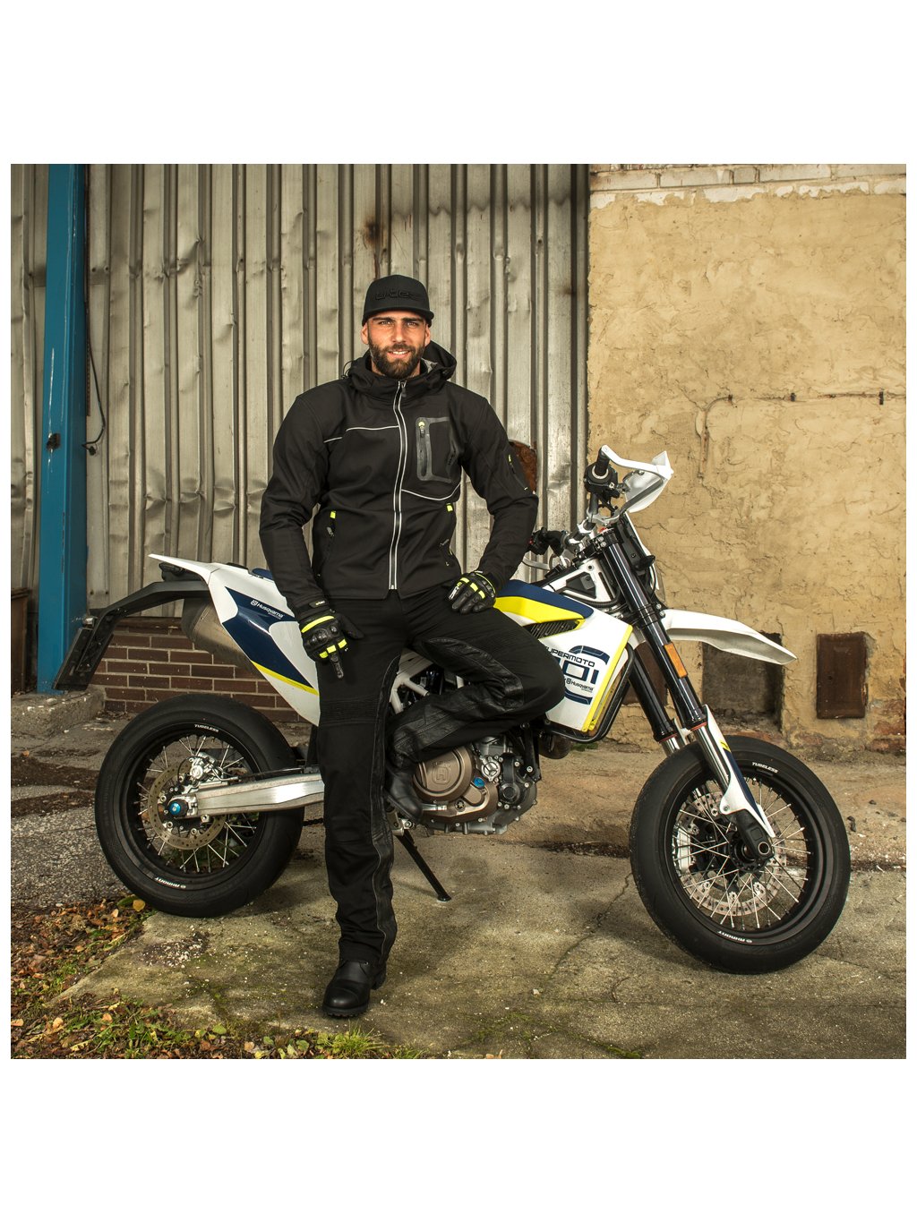 Vysokou míru pohodlí si pak můžete užít díky mnoha strečovým a elastickým panelům. Pro vyšší bezpečnost a ochranu jezdce disponují vyztužením z aramidového vlákna na strategických místech. Tento materiál je velmi tuhý a chrání látku proti nárazům a oděrům.