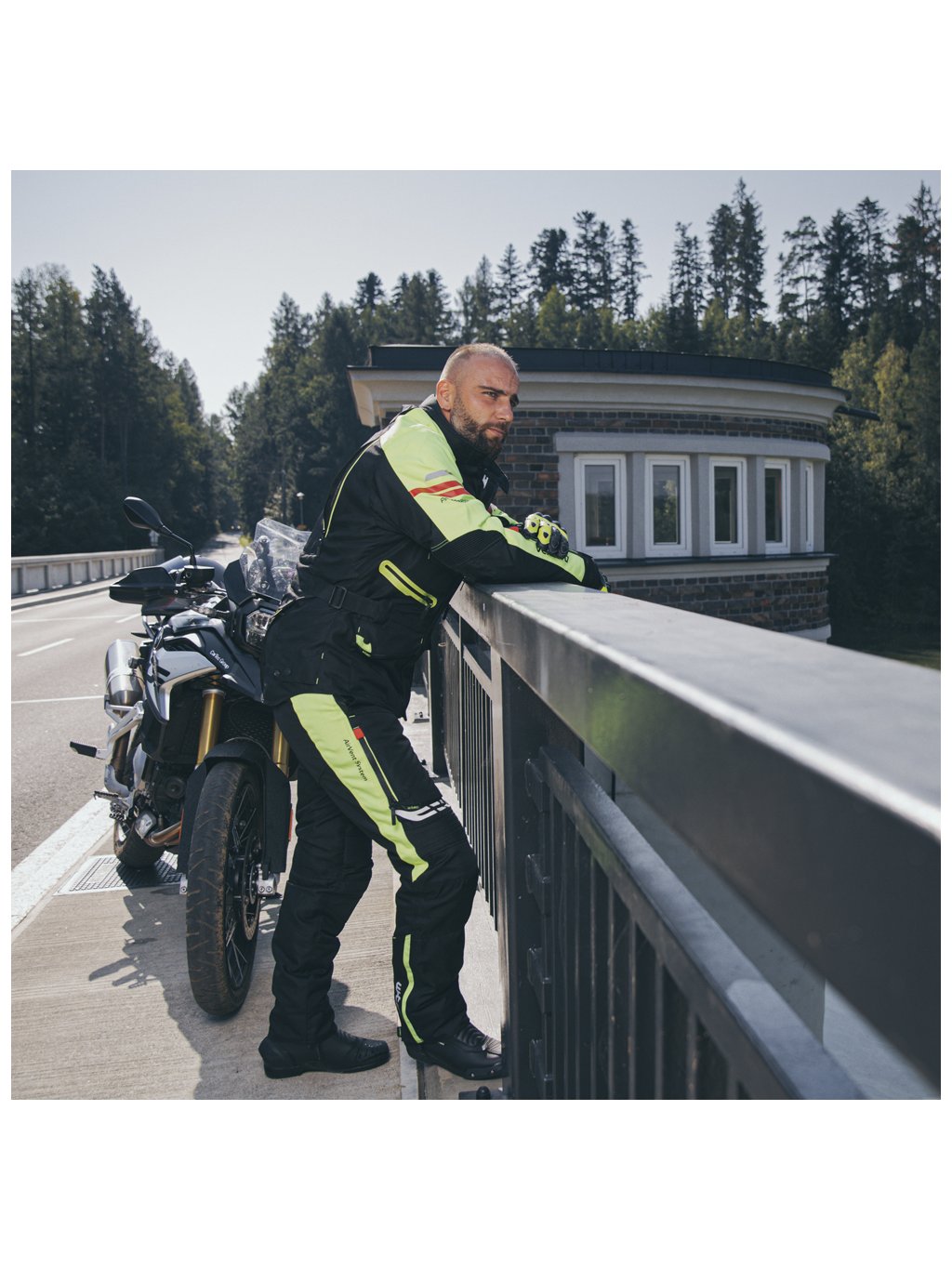 Pánské moto kalhoty W-TEC Spirital představují velmi dobře vybavené a především také bezpečné kalhoty vybavené certifikovanými chrániči v kritických oblastech boků a kolen. Navíc jsou vyrobeny z vysoce odolné a zároveň lehké tkaniny PolyMaxTex. Bezpečnost v neposlední řadě zvyšují i strategicky rozmístěné reflexní prvky.