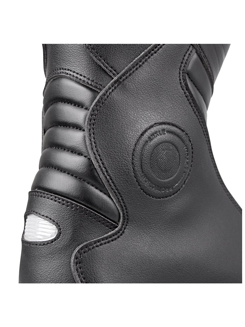 Navíc chrániče a zpevnění v oblasti paty, špiček, kotníků, holení a vyztužení v oblasti řadičky zaručují vysoký stupeň bezpečnosti. Ta je ještě zvýšena přítomností reflexního pruhu na patě, a tak bude jezdec lépe vidět i za zhoršených světelných podmínek. Boty se navíc pyšní bezpečnostní certifikací dle normy EN 13634:2015, čímž splňují legislativní požadavky EU.