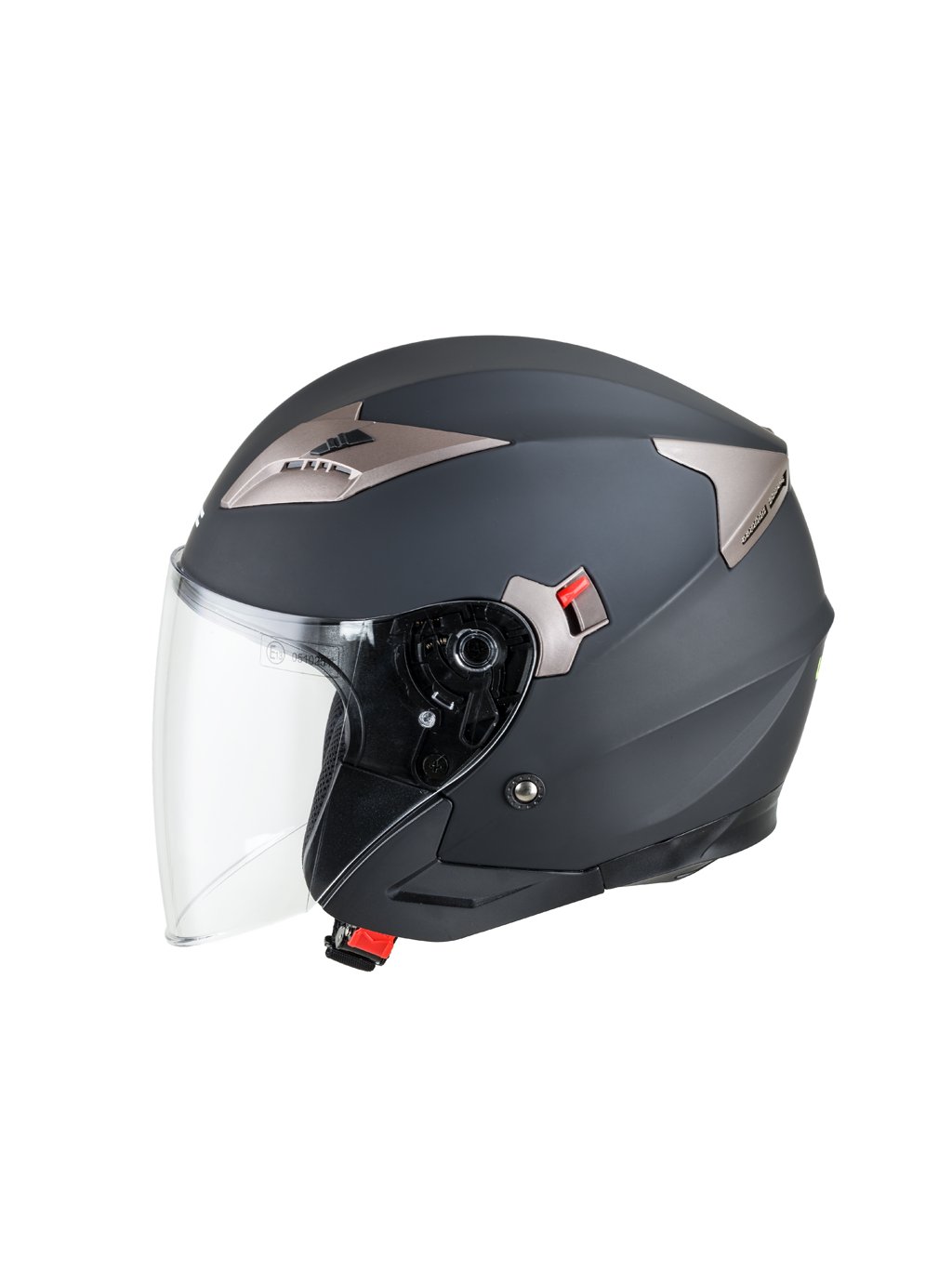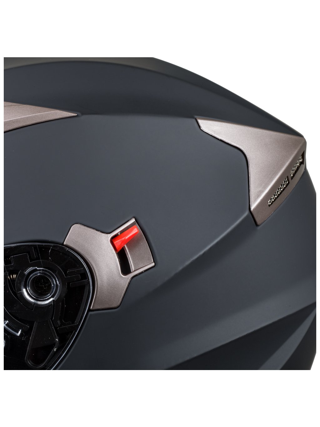 - samostatně výsuvná sluneční clona s vnějším ovládáním na boku helmy